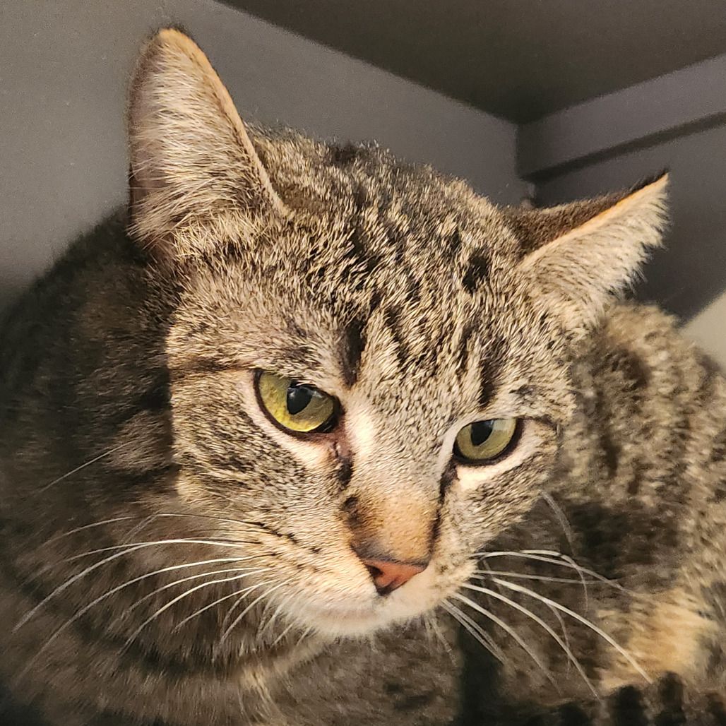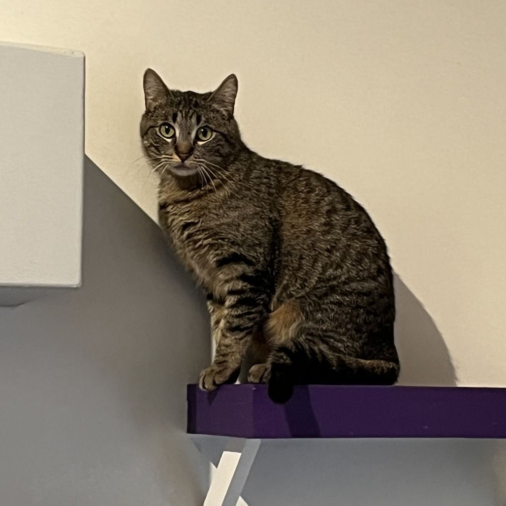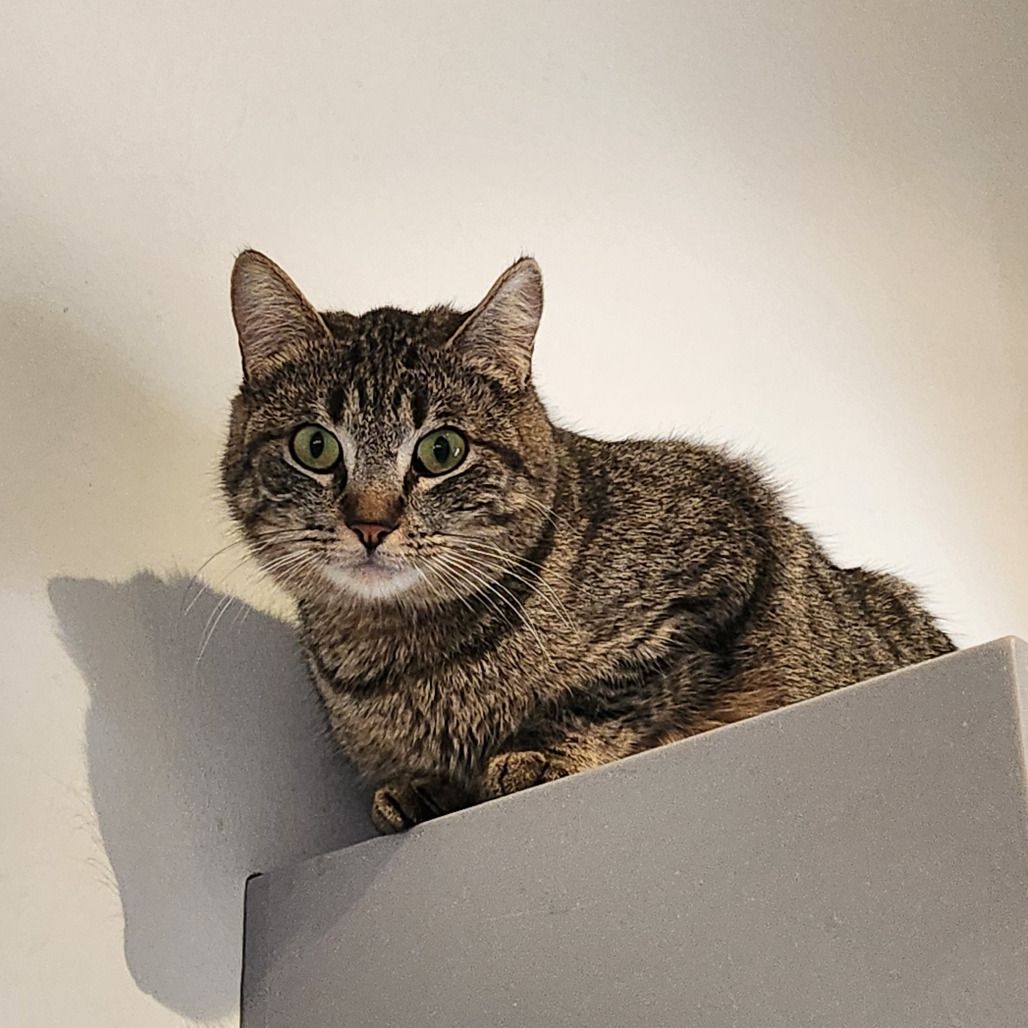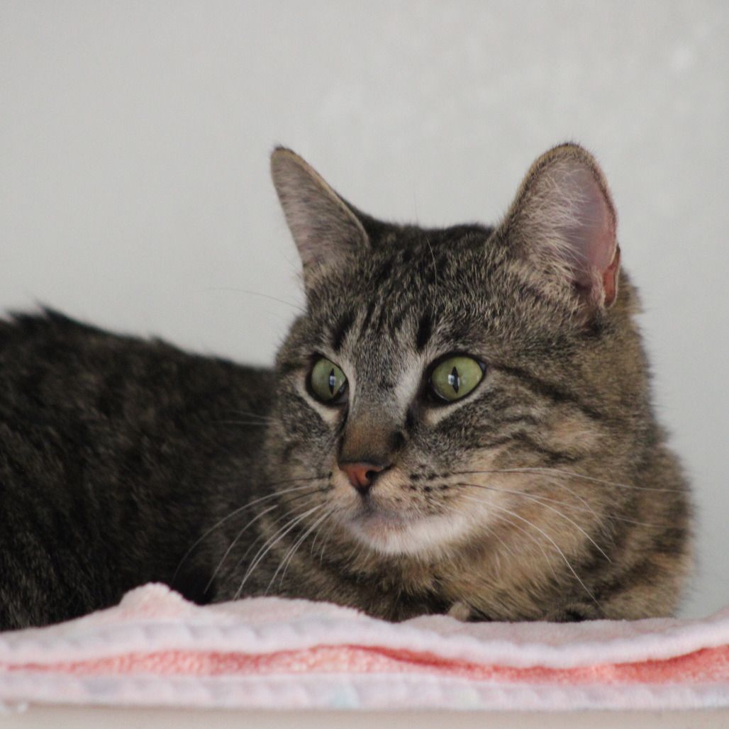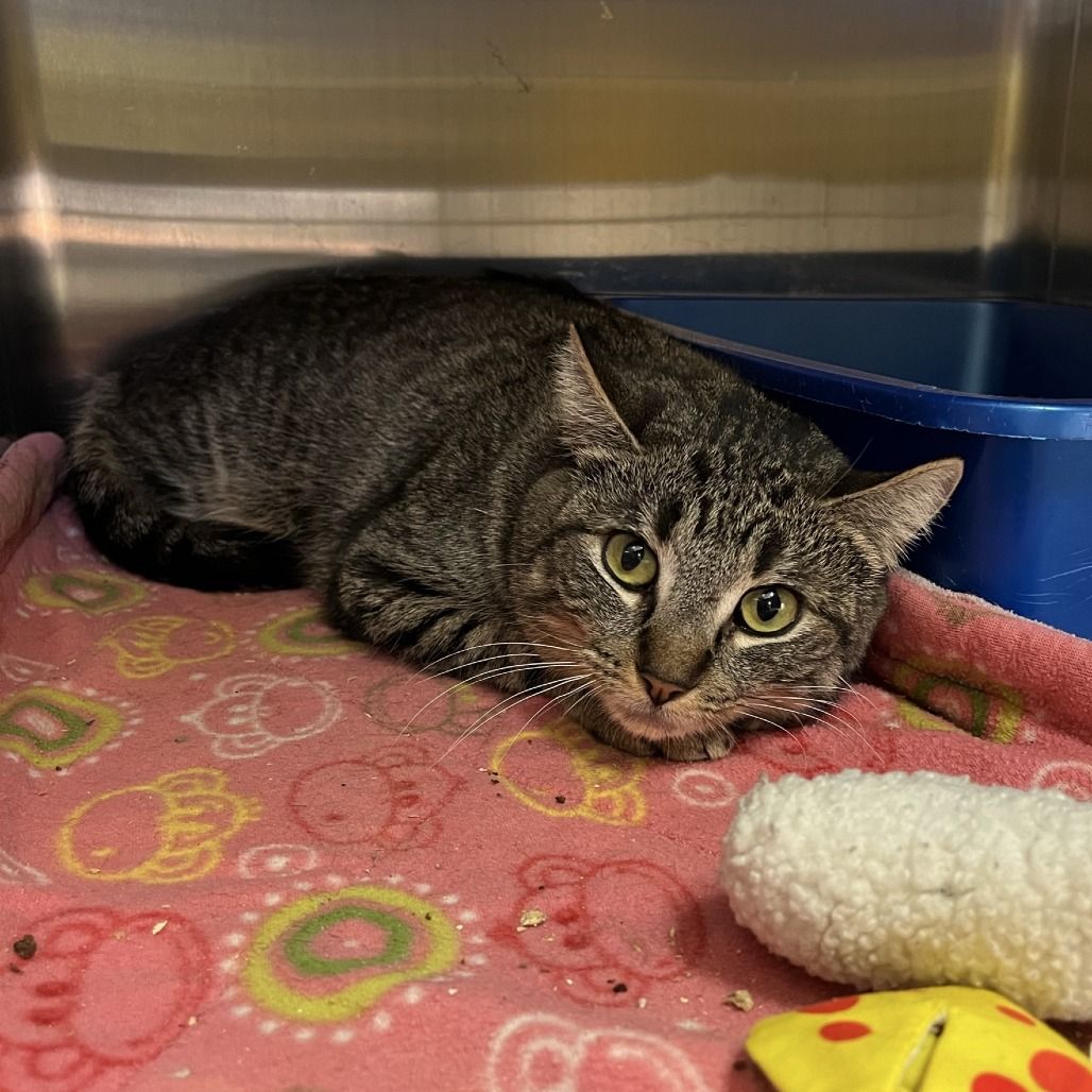 Meet Fruit Bat, a 4 year old female blue-black and white tabby with a quiet, thoughtful outlook on the world. Bashful and reserved by nature, she prefers to take things at her own pace -- but once she feels safe, she will gladly accept gentle pets and rubs. A true connoisseur of comfort, Fruit Bat loves her big bed and extra soft blankets, which double as both a snuggle spot and the perfect hiding place. From there, she enjoys peeking out at the world around her -- curious, observant and content to watch rather than lead with action. Fruit Bat would thrive in a calm home that appreciates a cat show who shows affection quietly and finds joy in peaceful moments. If you are looking for a sweet companion who believes life is best enjoyed from a cozy blanket with a good view, Fruit Bat is your gal!