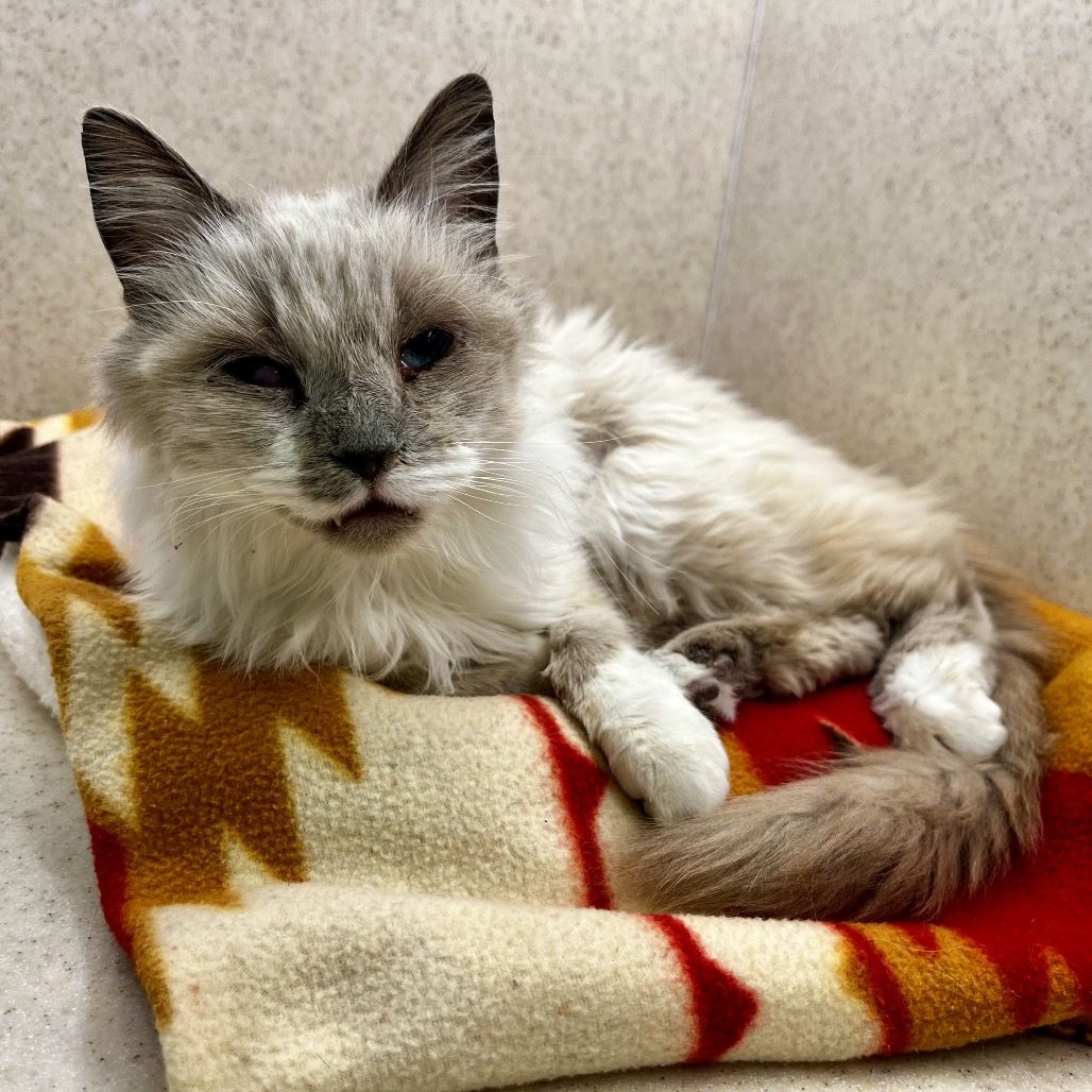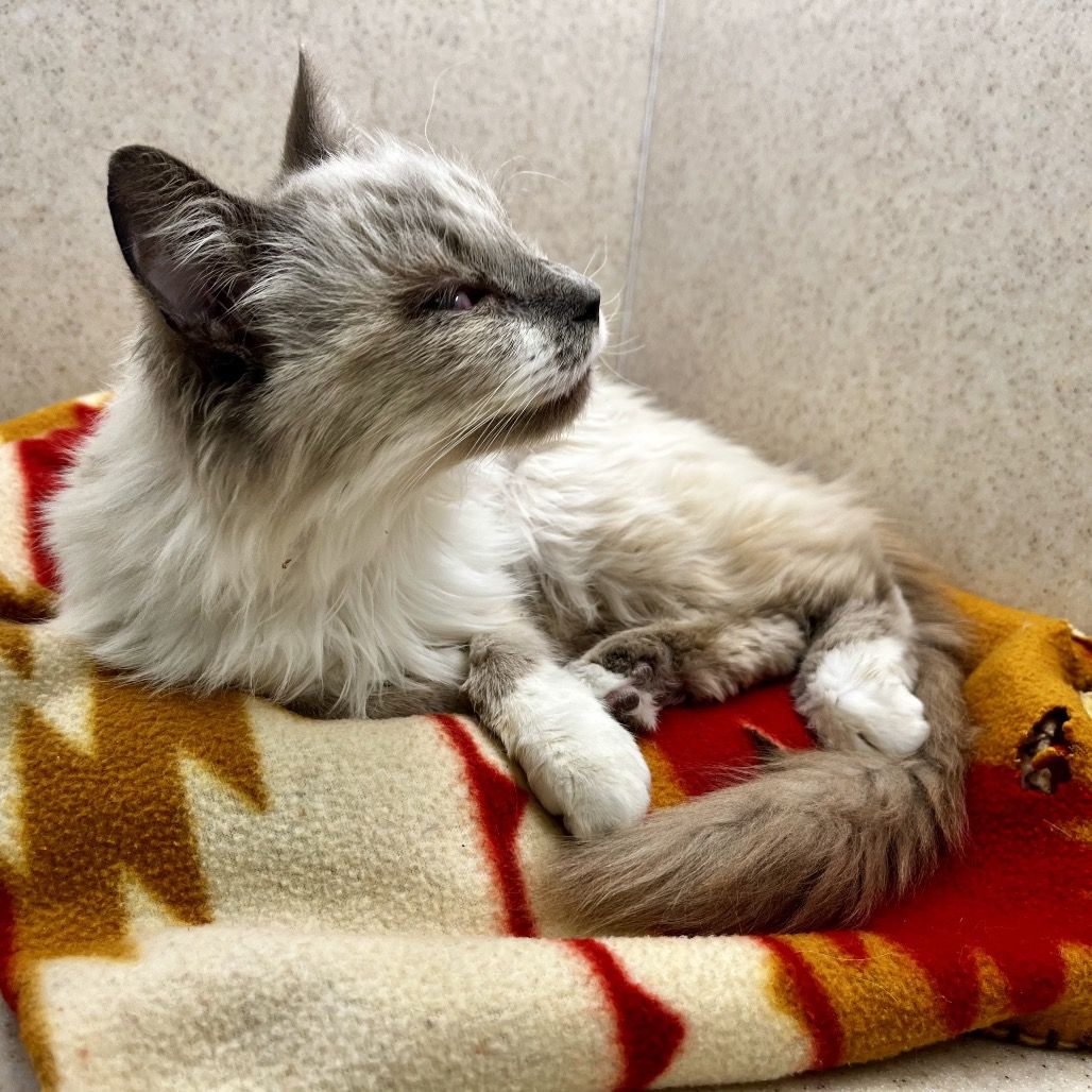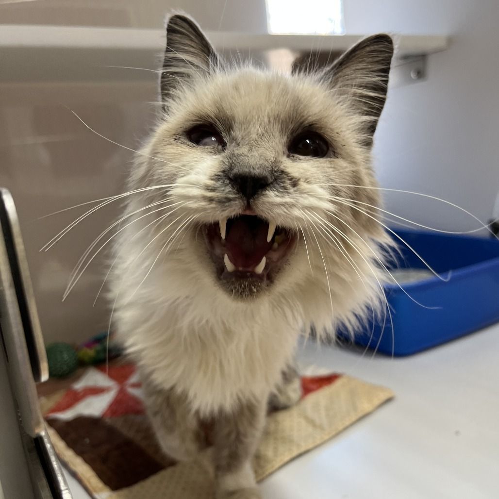 Lima Bean is an elegant senior lady and stunning looks thanks to being a Snowshoe/Siamese mix. She knows exactly who she is -- and is happy to tell you about it! This sweet girl loves attention and will gladly claim your lap as her favorite spot. A true social butterfly, Lima Bean thrives on companionship and wants to be involved in whatever you are doing. With a delightfully chatty way about her, she is read to share her thoughts, opinions and requests for more affection. Lima Bean would love to be your lap cat who enjoys conversations as much as cuddles.
