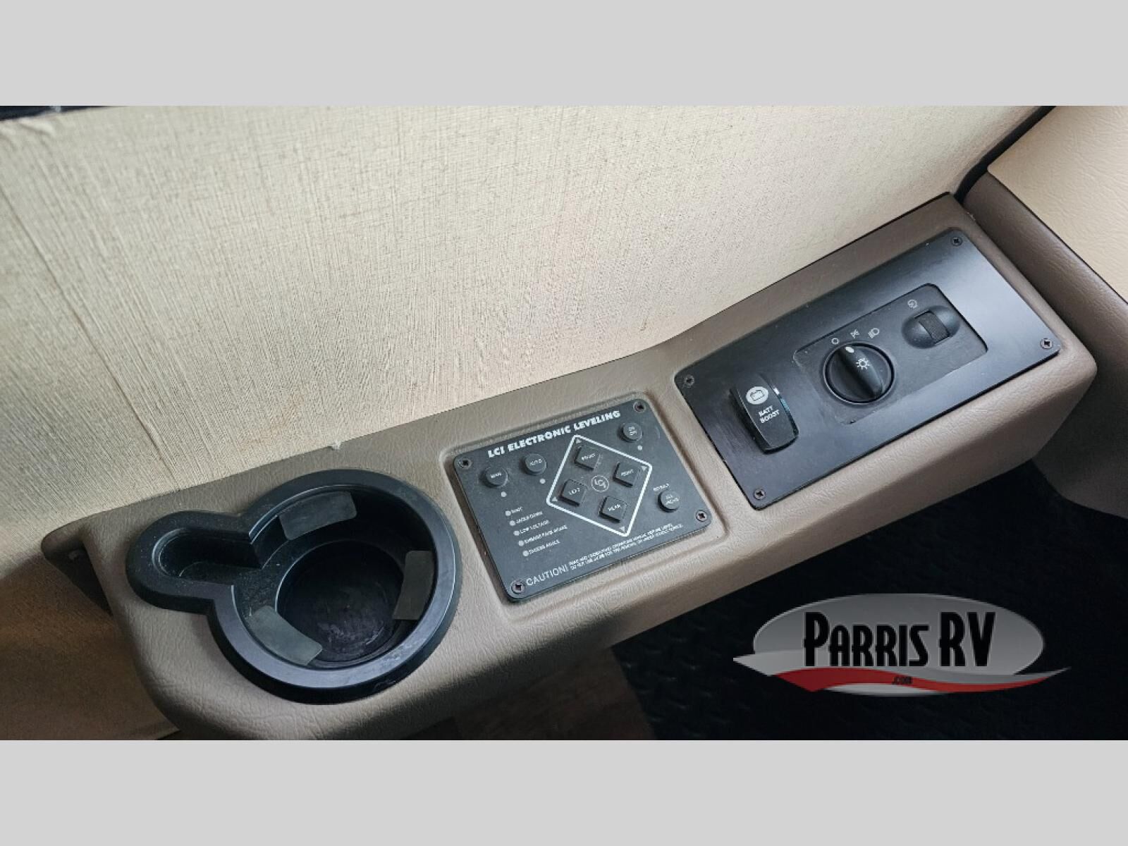 As you enter the motor home, on the left you will find a sofa with footrests, refrigerator, and large pantry for your dry food items. On the opposite side of the motor home there is a slide with a wrap-around booth dinette, residential microwave, and three burner range. Adjacent to the slide you will find a double kitchen sink, and overhead 32" LED TV