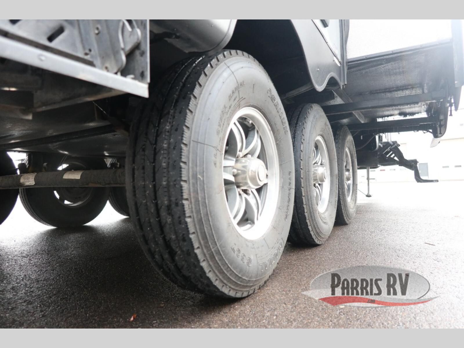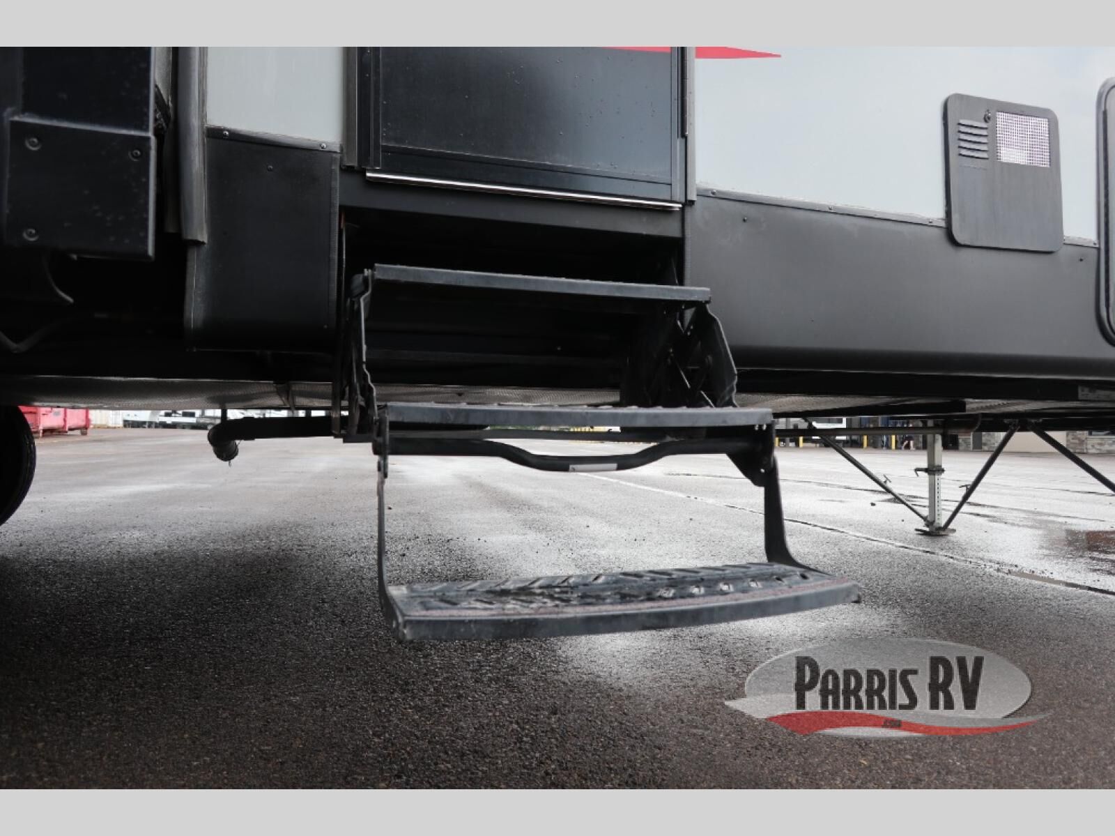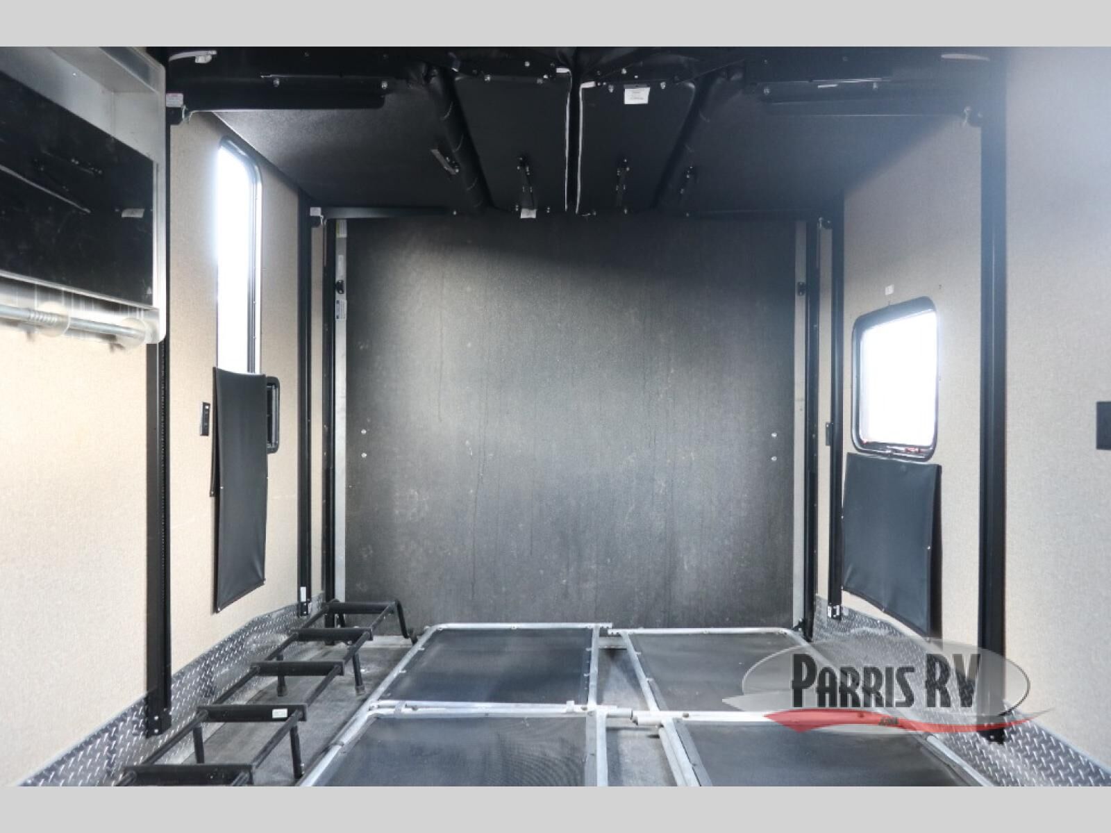 The Vengeance 398V toy hauler fifth wheel by Forest River offers triple slides.