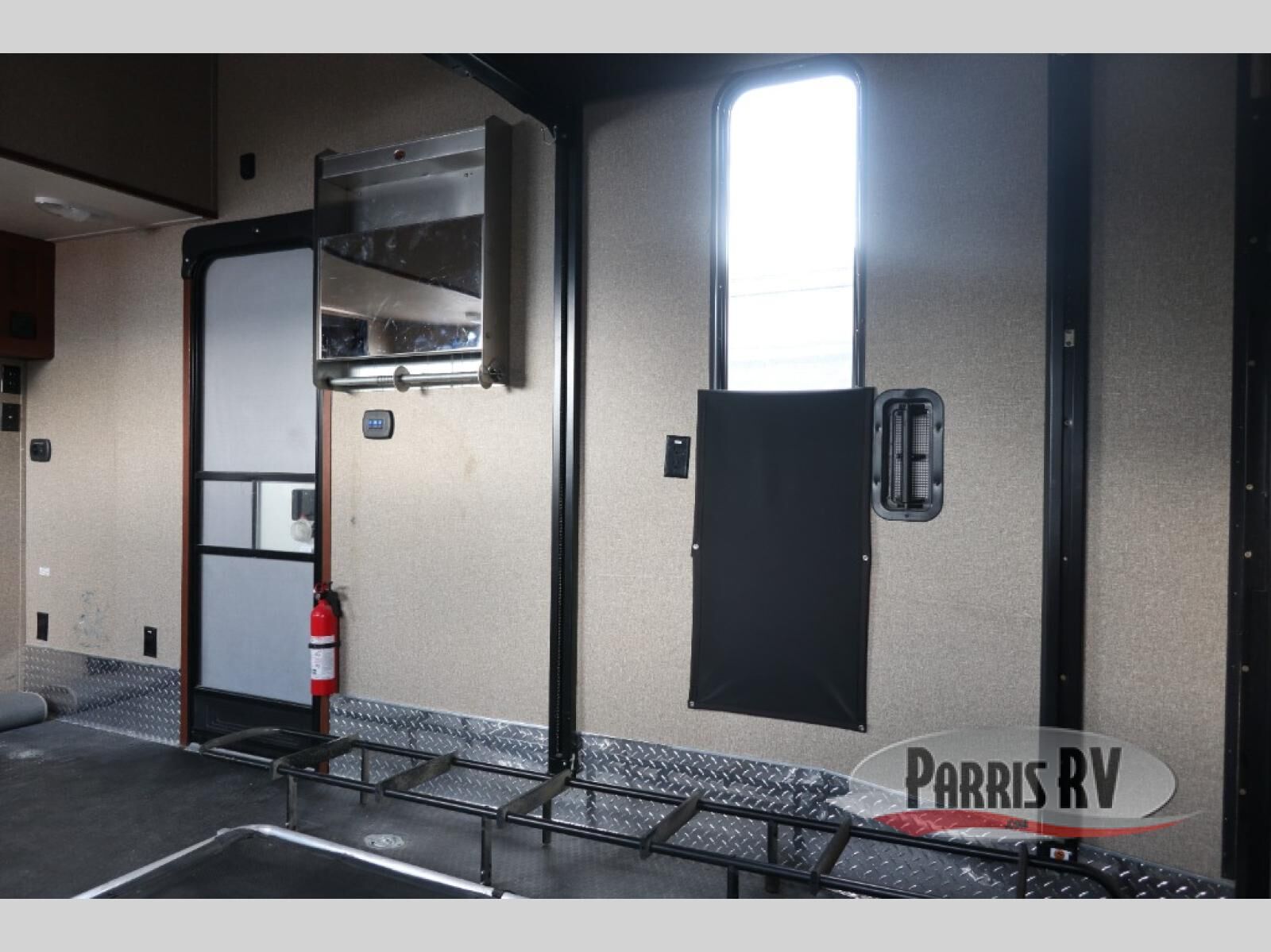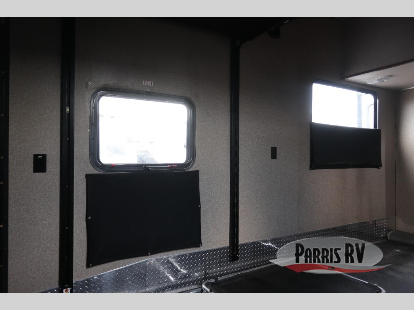 There is plenty of room for your off road toys in the rear cargo area. There is also a flip-up sofa and a free standing table in the cargo area. The loft bed offers more sleeping space for friends and family. You will also enjoy that the cargo is washer and dryer prepped and offers a TV mount.