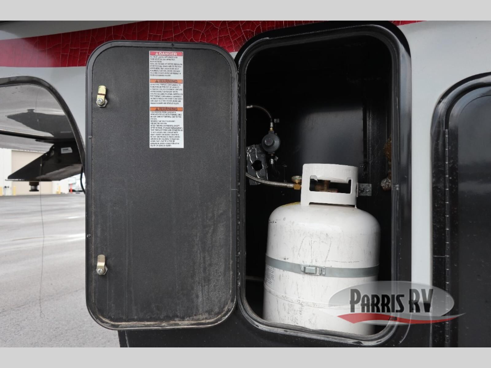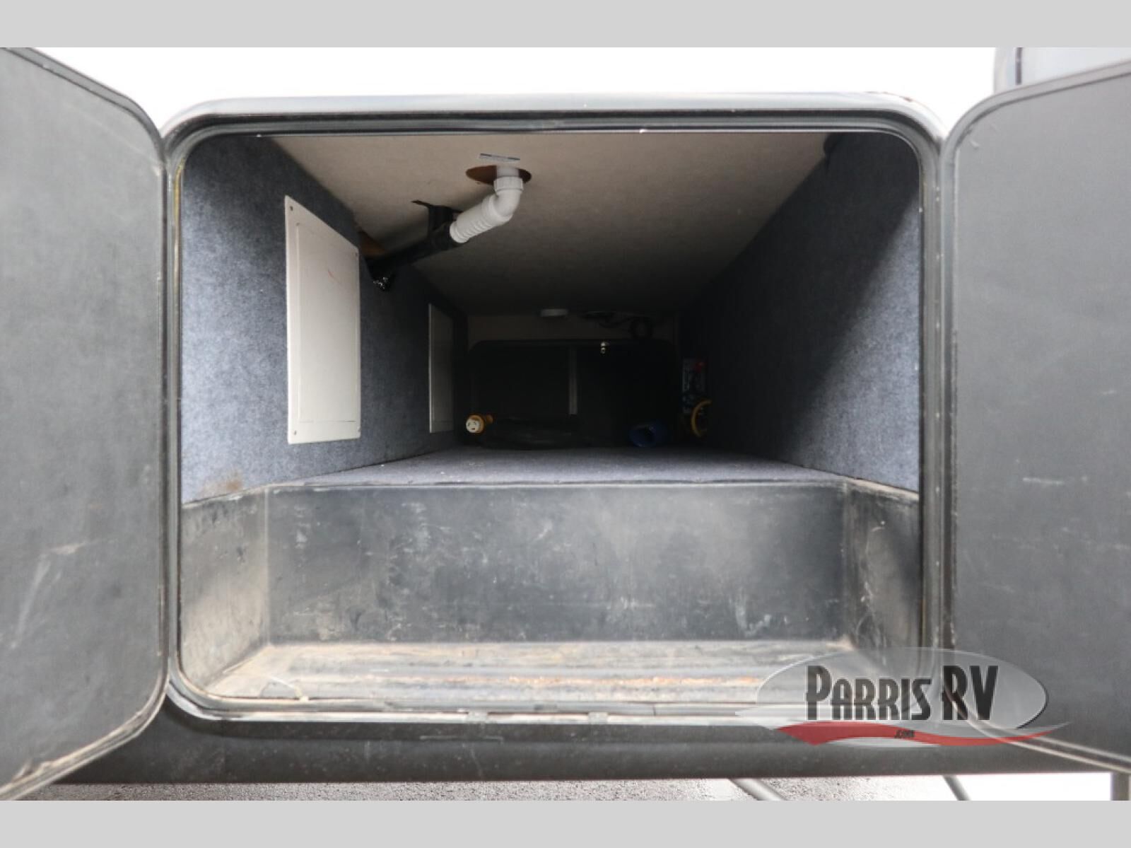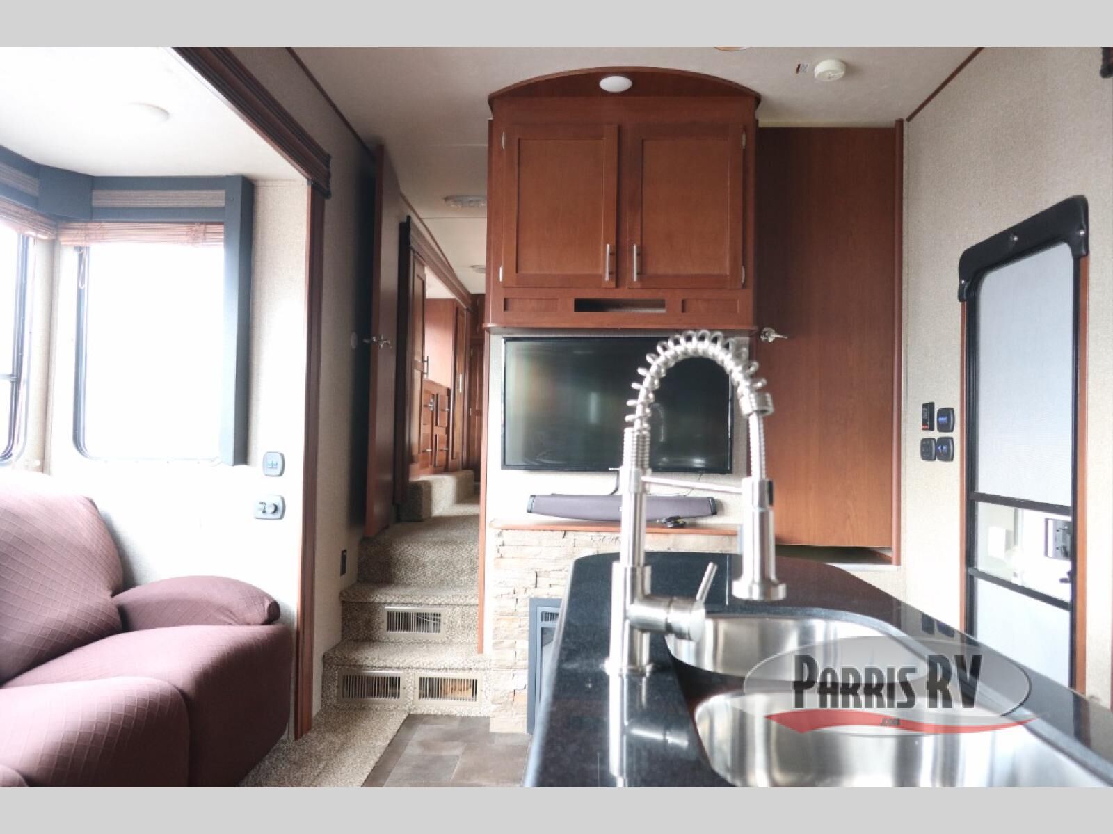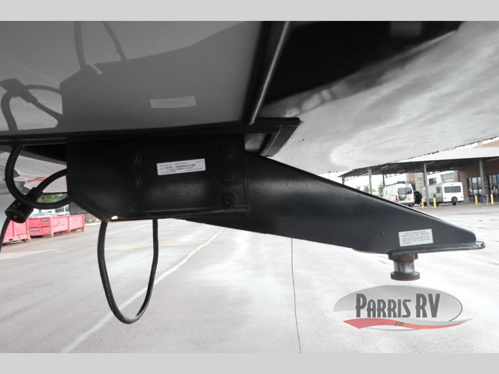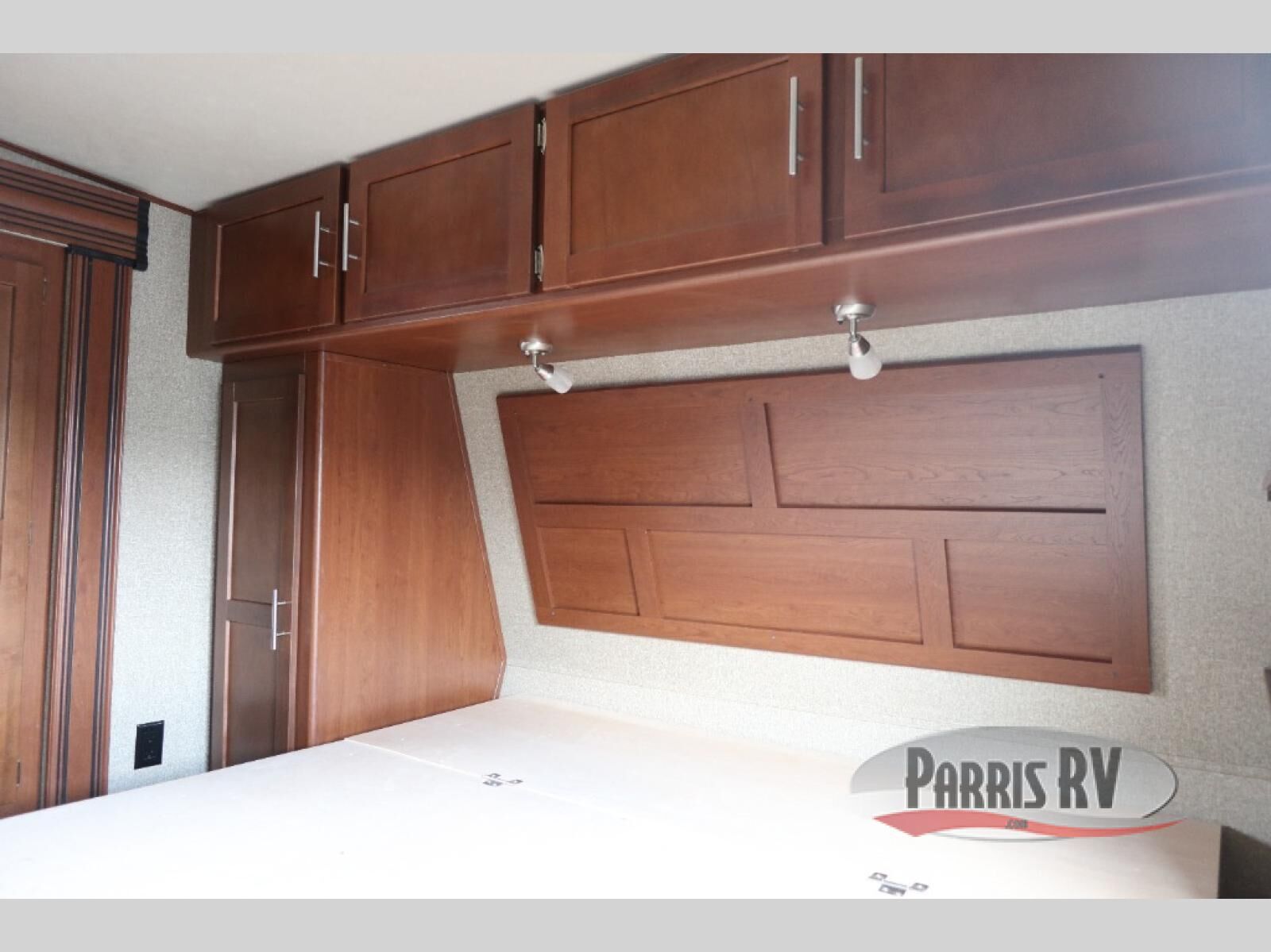 There are plenty of overhead cabinets throughout the fifth wheel, as well as a large pass thru storage. You can also enjoy the outside TV mount.