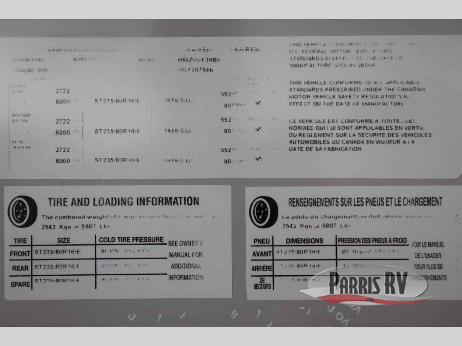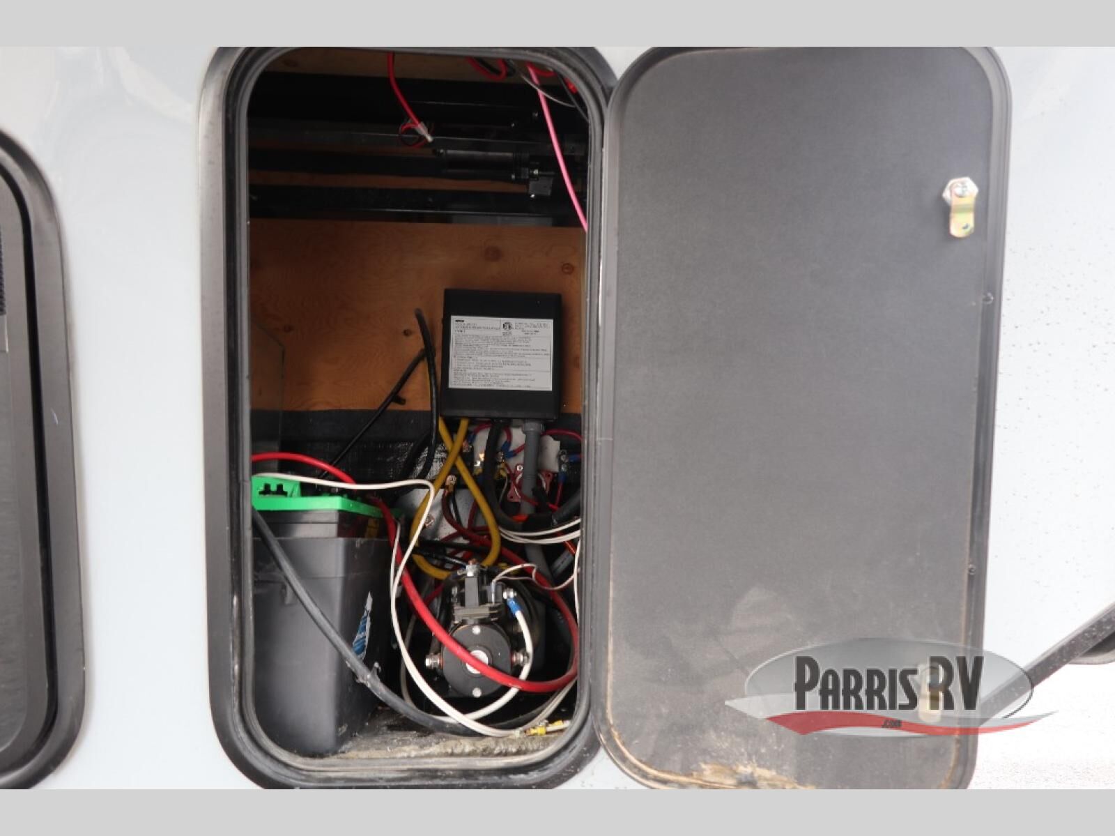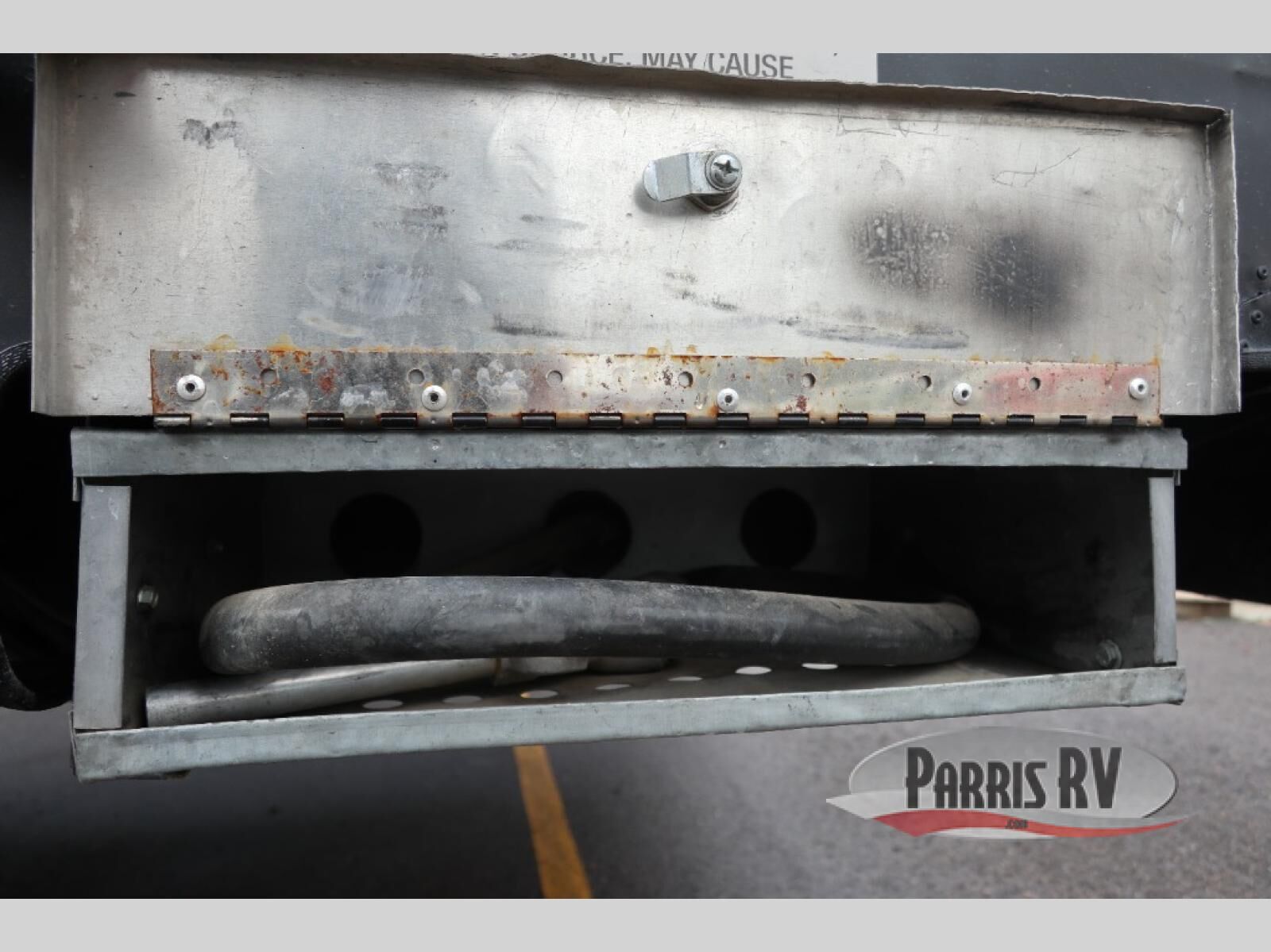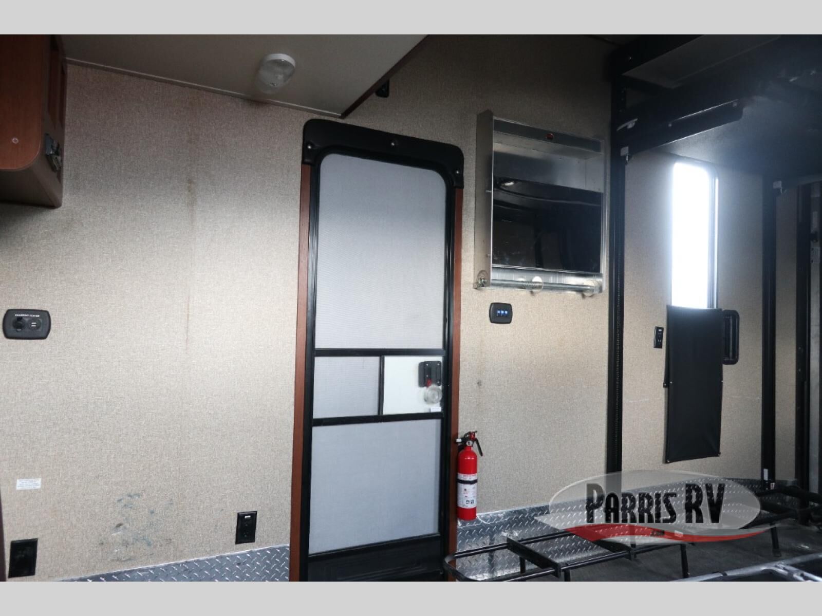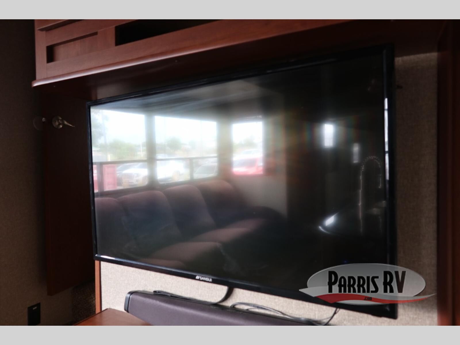 There are plenty of overhead cabinets throughout the fifth wheel, as well as a large pass thru storage. You can also enjoy the outside TV mount.