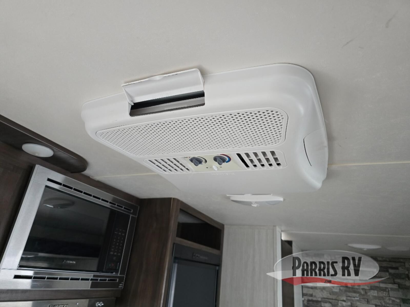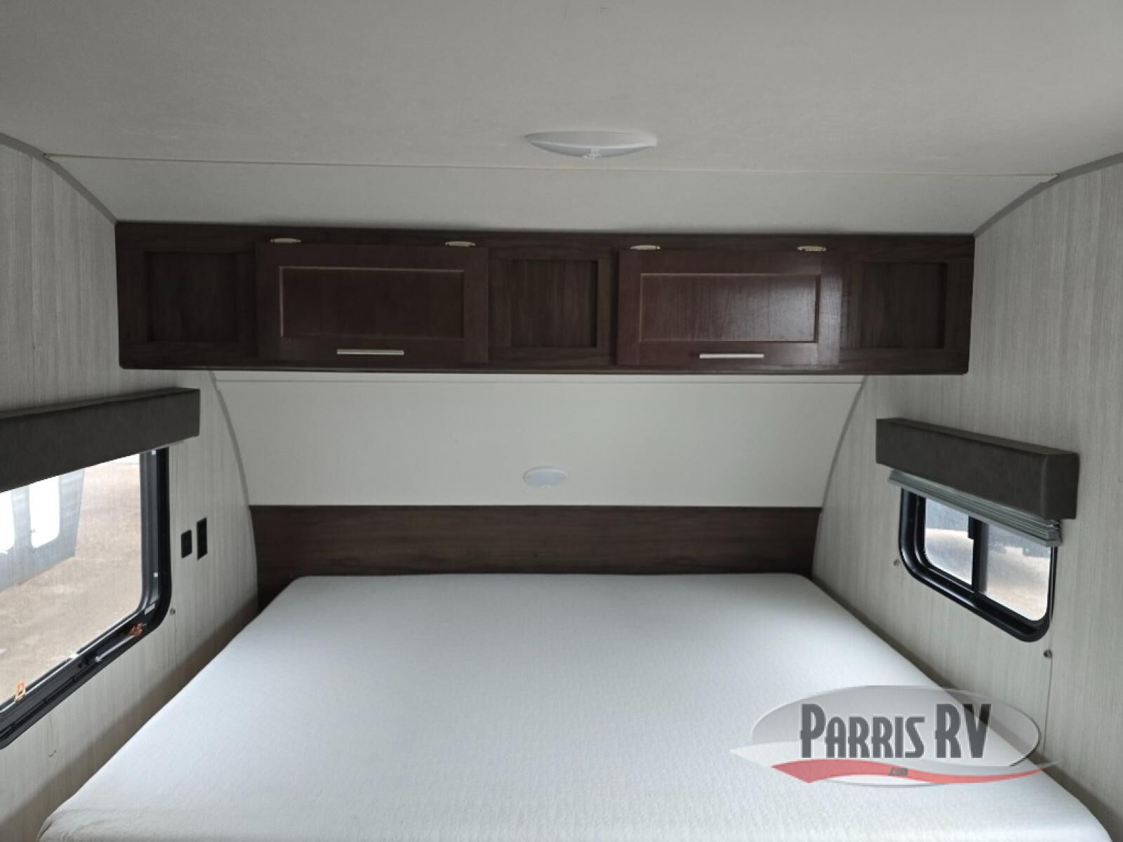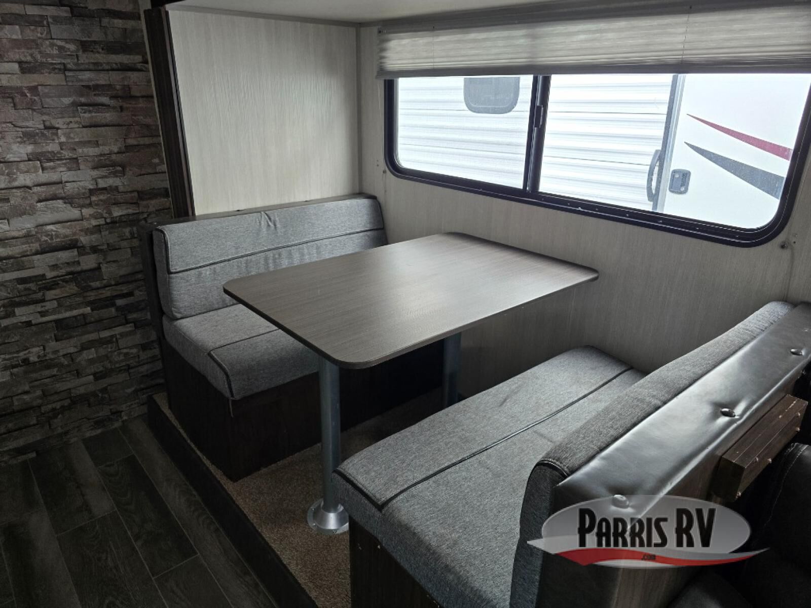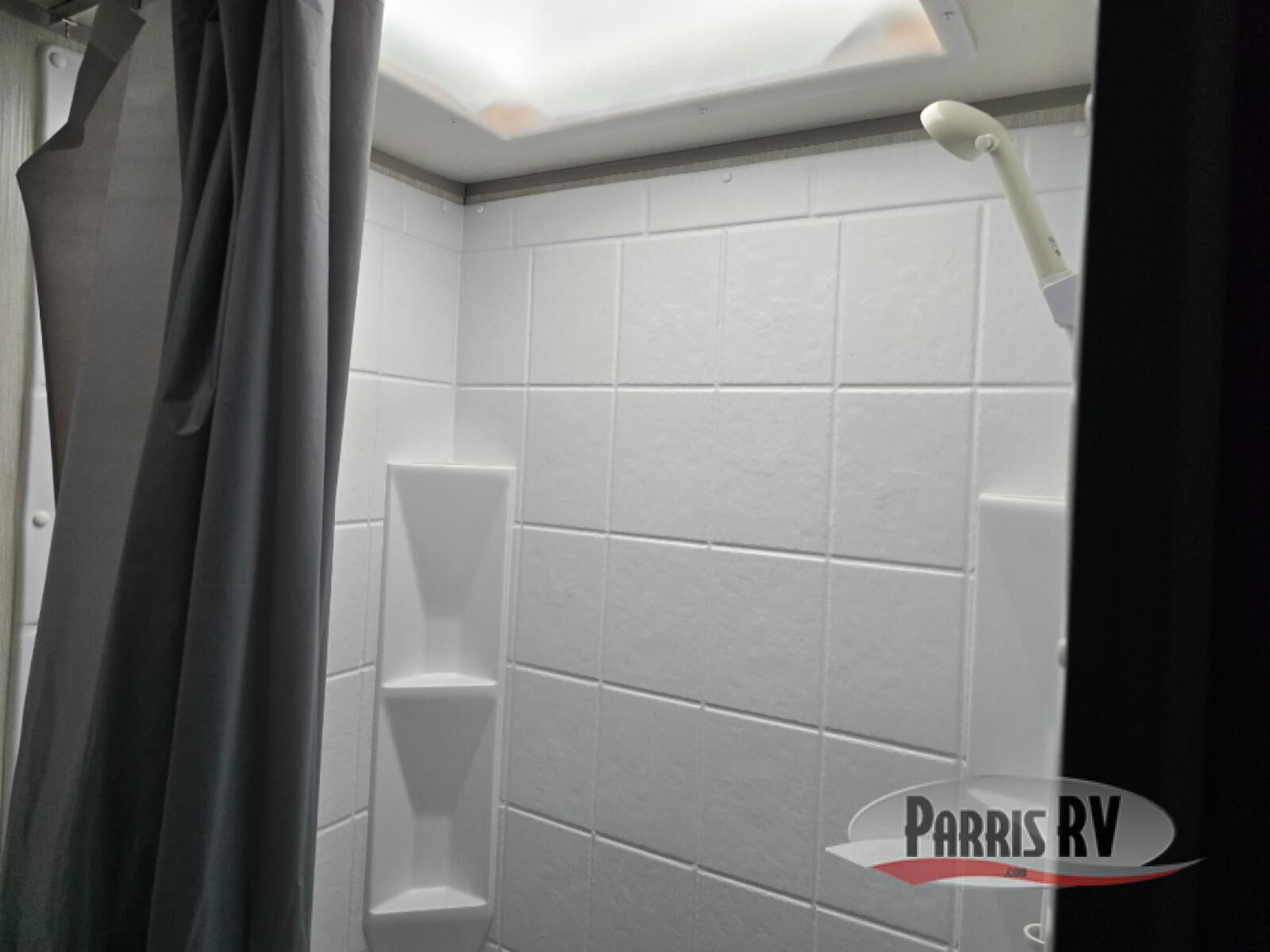 Imagine a large slide with a booth dinette and sofa with a hidden bunk above for nighttime. Now imagine you are sound asleep in your own queen bed while the kids sleep on the bunk and furniture. Everyone can wake up to the smell of pancakes being made on the cooktop and bacon in the microwave. Then you can take turns getting ready in privacy in the toilet and tub/shower room before making your outdoor plans. You will find plenty of storage for your clothing and such on the shelves and inside the cabinets, plus along the exterior in the outdoor storage areas.