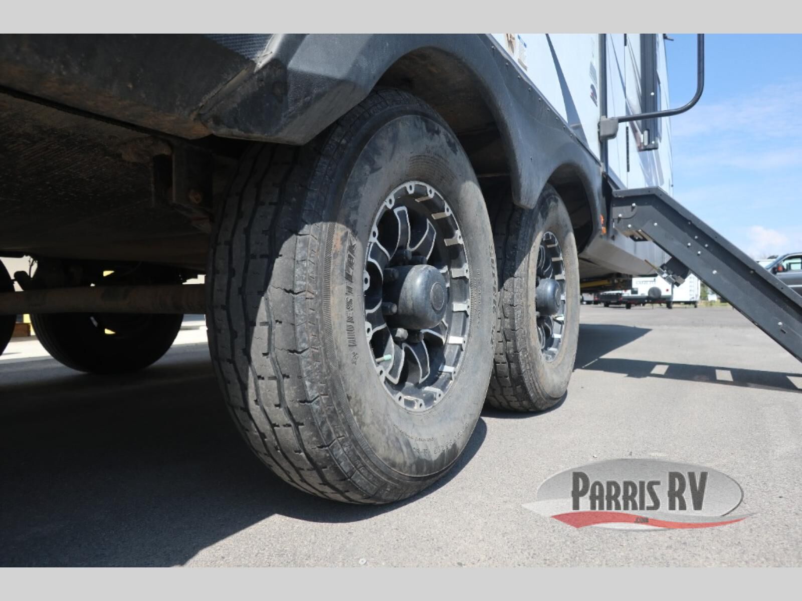 There are plenty of interior, exterior, and construction features that set apart these XLR Nitro toy hauler fifth wheel and travel trailers by Forest River RV from the rest. All of the toy haulers are built with additional height and width giving you extra room for hauling your toys. You have 5,000 lb cargo tie-downs to keep your toys from moving around while you are on the road. The exterior construction has got you covered as well. There are EZ Lube Dexter axles and fiberglass front caps. Some models even have the V-nose front caps giving you more of an aerodynamic unit, which allows you to get better gas mileage because it doesn't cause as much drag while you are on the road. All models on the interior have stainless steel appliances, three decor colors to choose from, and plenty of space for your family and then some.
