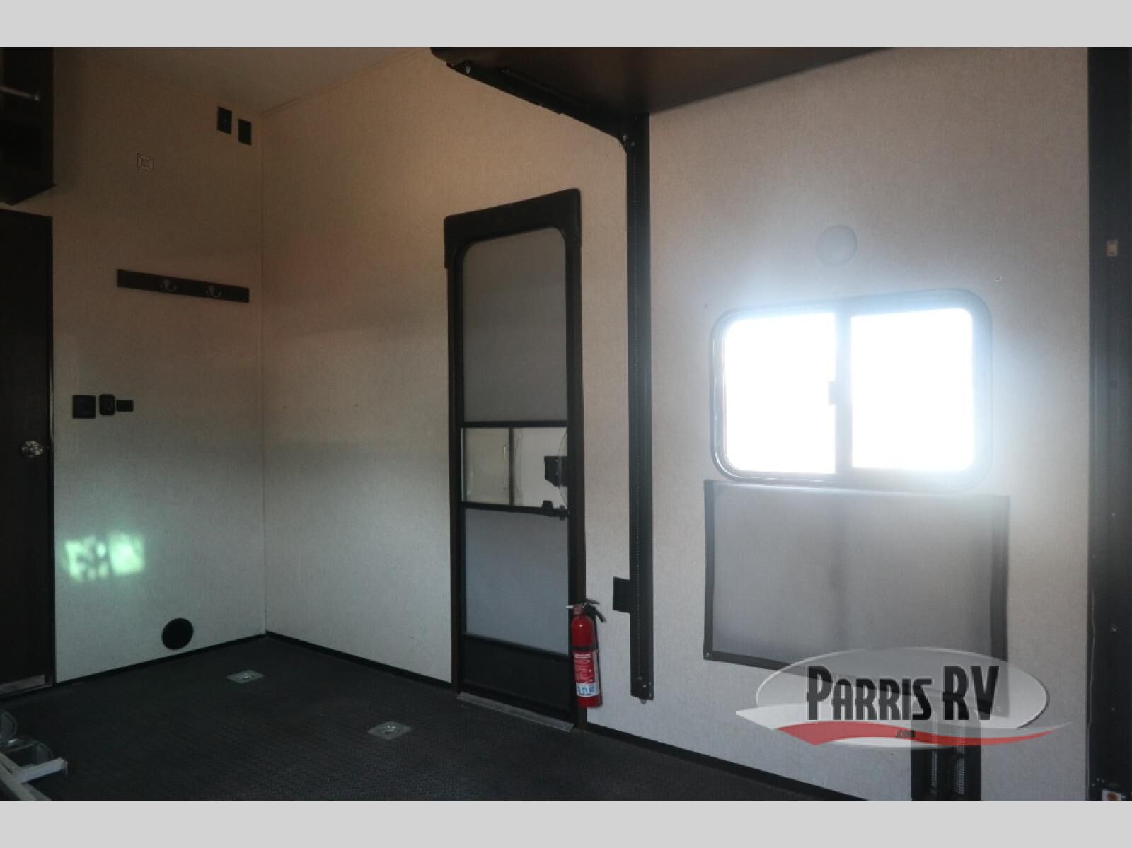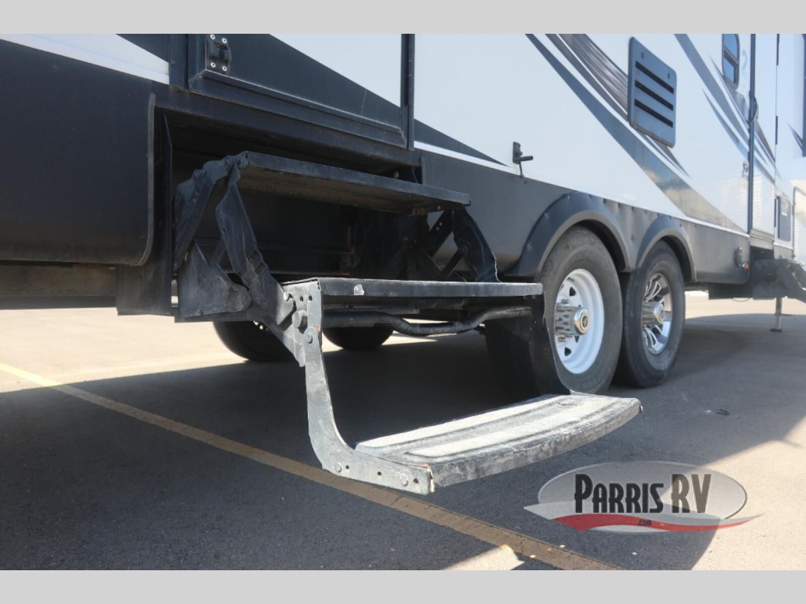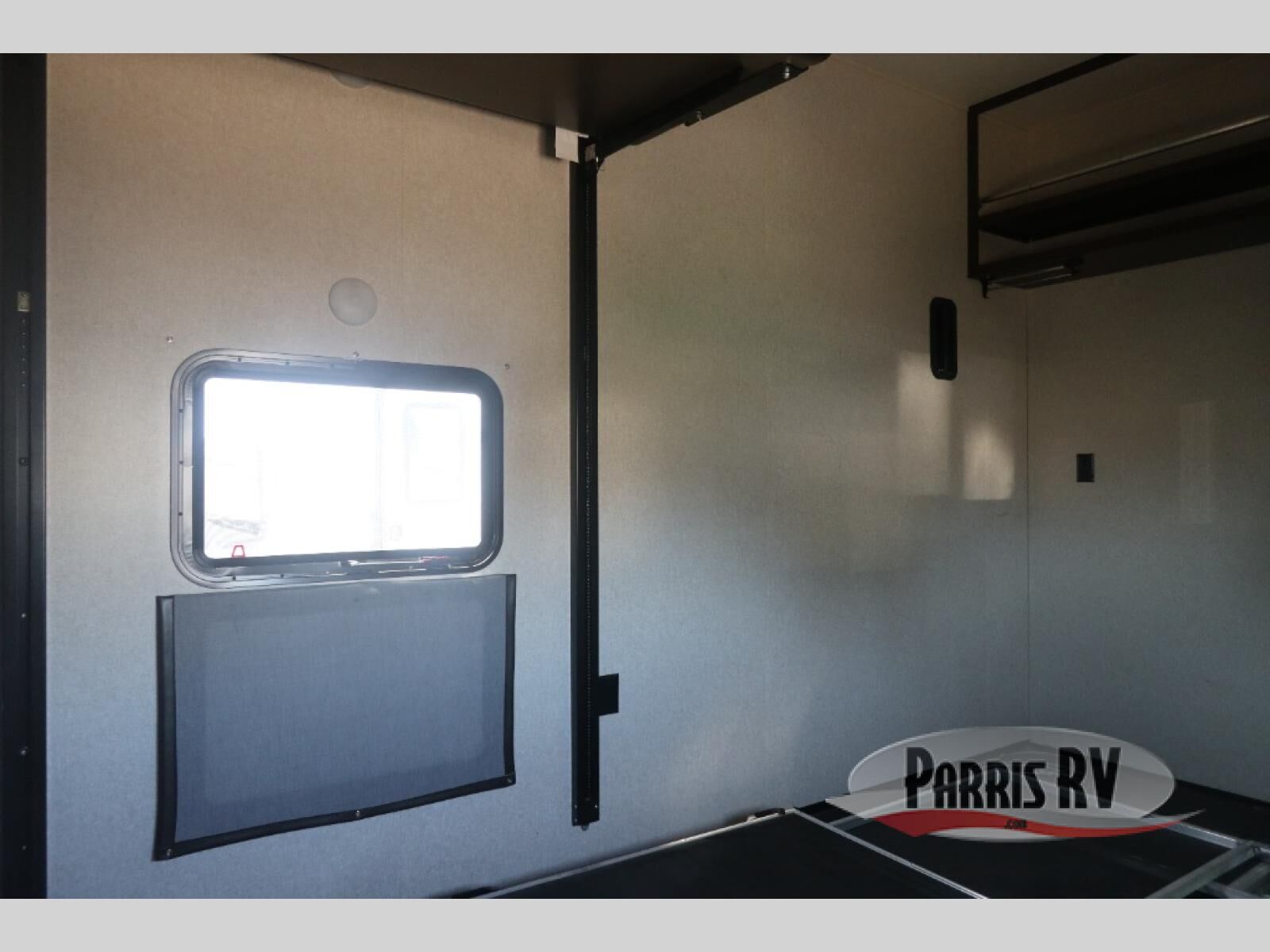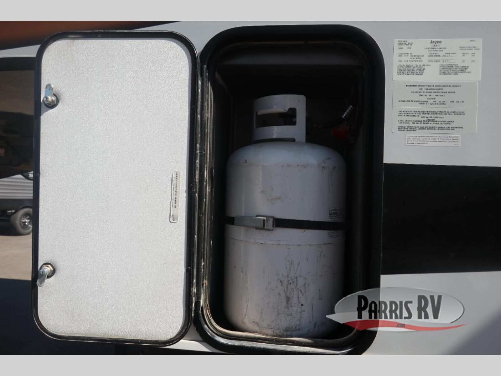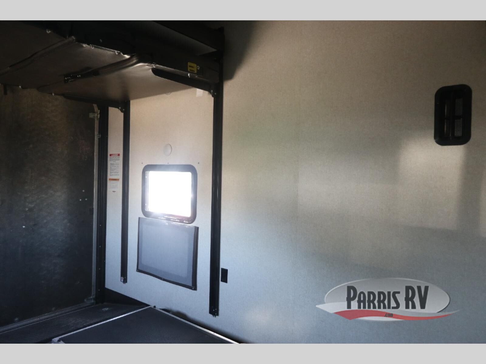 The best feature of this Jayco toy hauler is definitely the versatile garage area. The 2,500 LB capacity ramp allows you to tow along even the heaviest of outdoor accessories during the day, and the convertible sofa beds and pull-down ramp door screen allow you to have a lounge and relaxation area each night. During those cool summer evenings when the night sky shines its brightest, you can sit with friends on the enclosed ramp or take the party outdoors underneath the electric awning lined with LED lighting. The included lockable and insulated storage doors are a part of the Keyed Alike single key system which means that you only need to worry about one key for the entire unit, and the 16" tires that this toy hauler is built upon are a part of the American-made Goodyear brand.