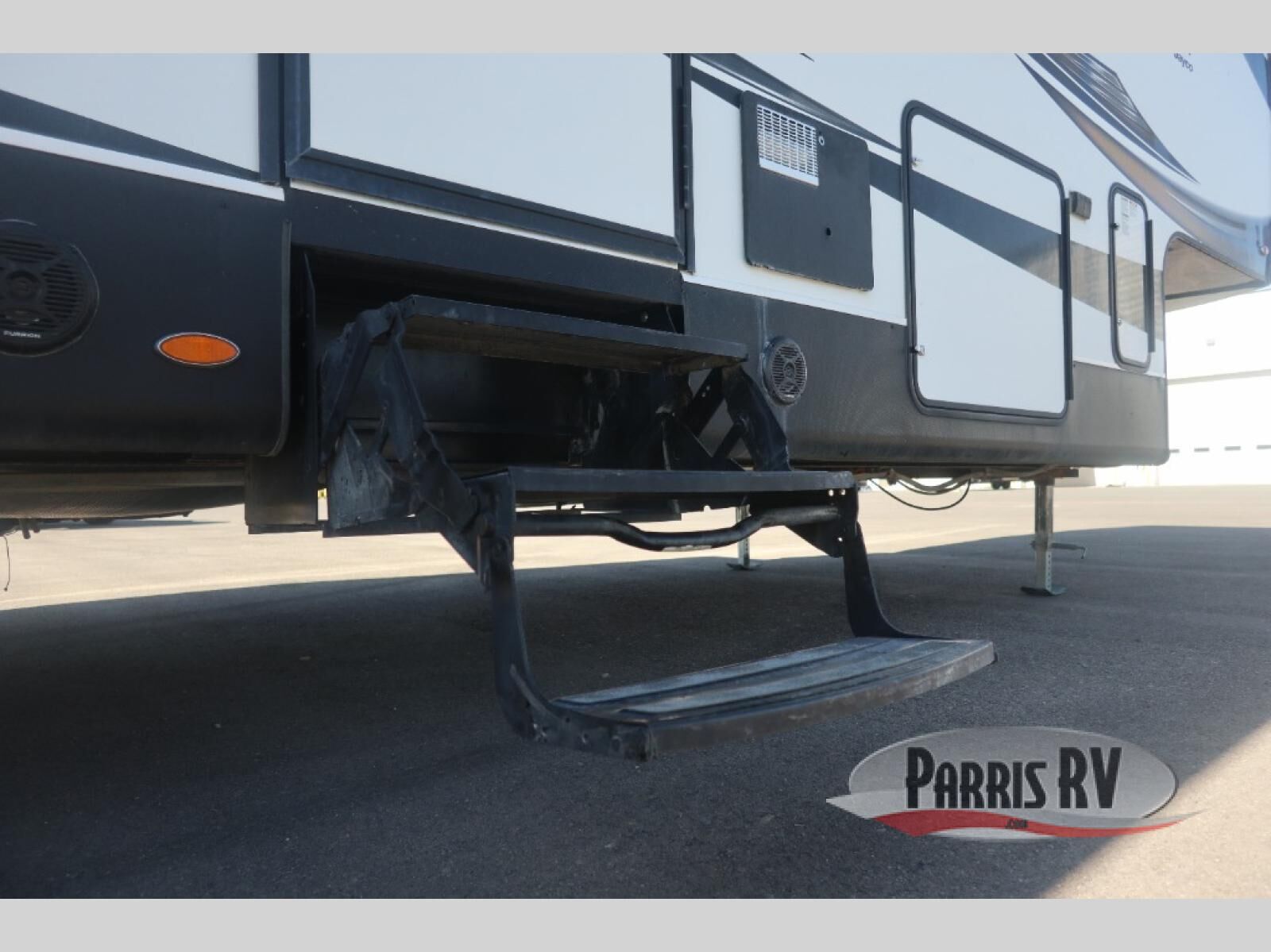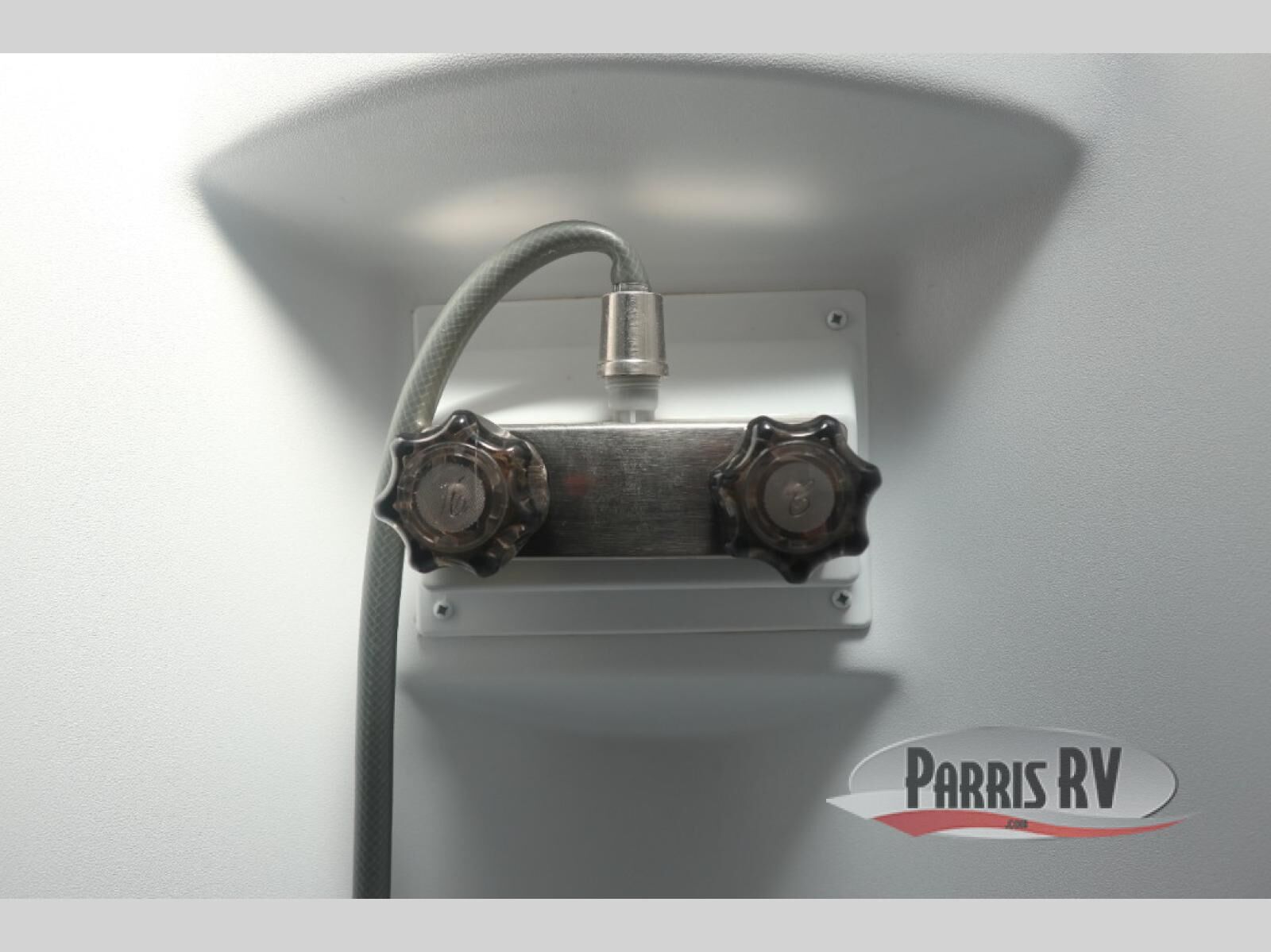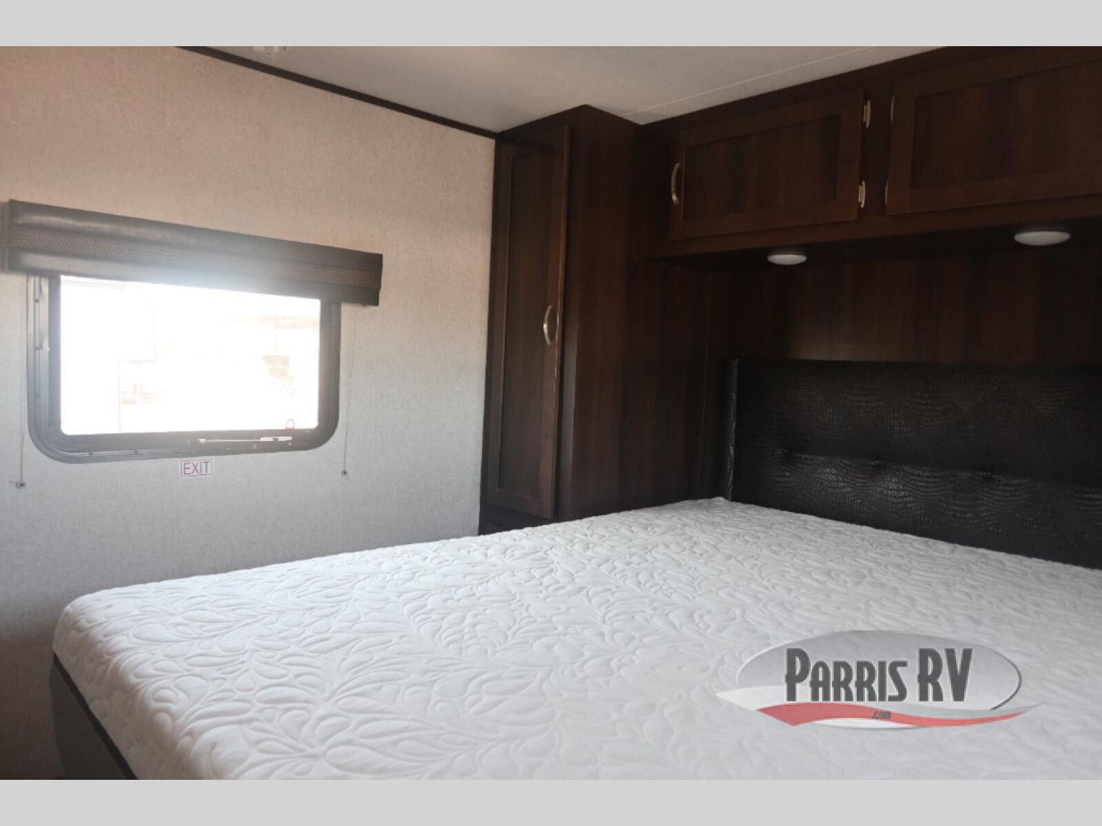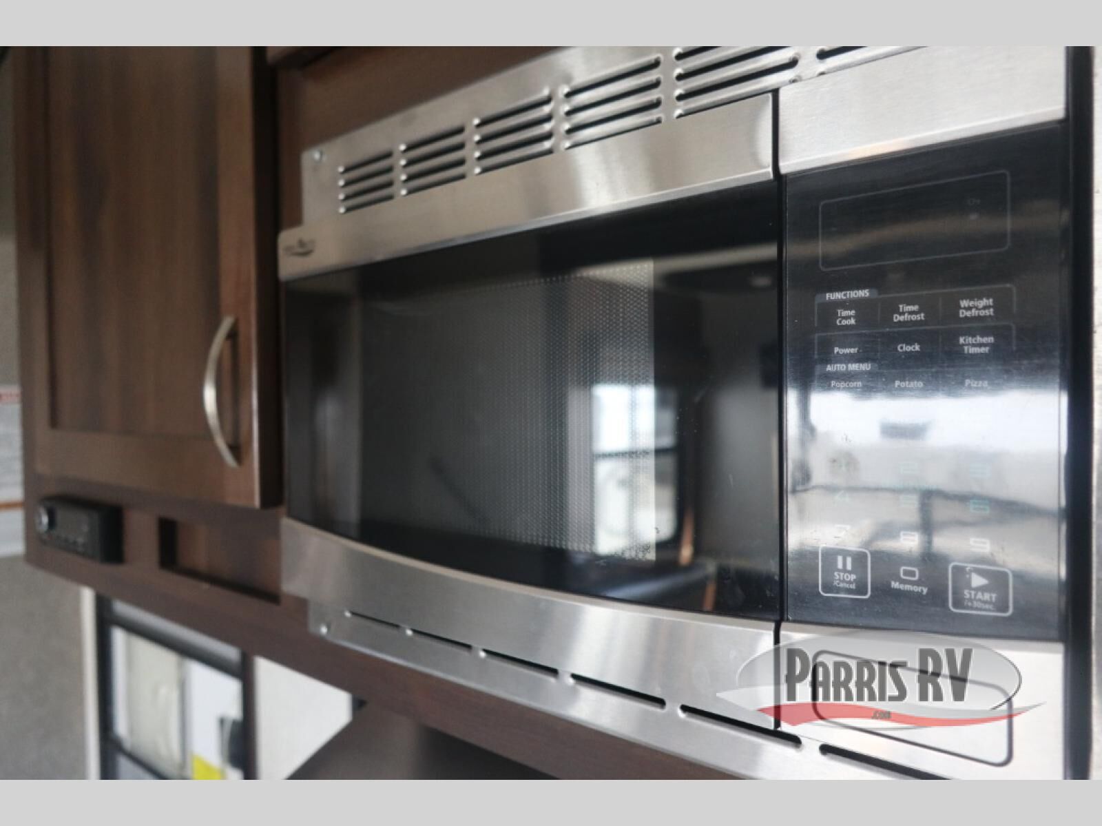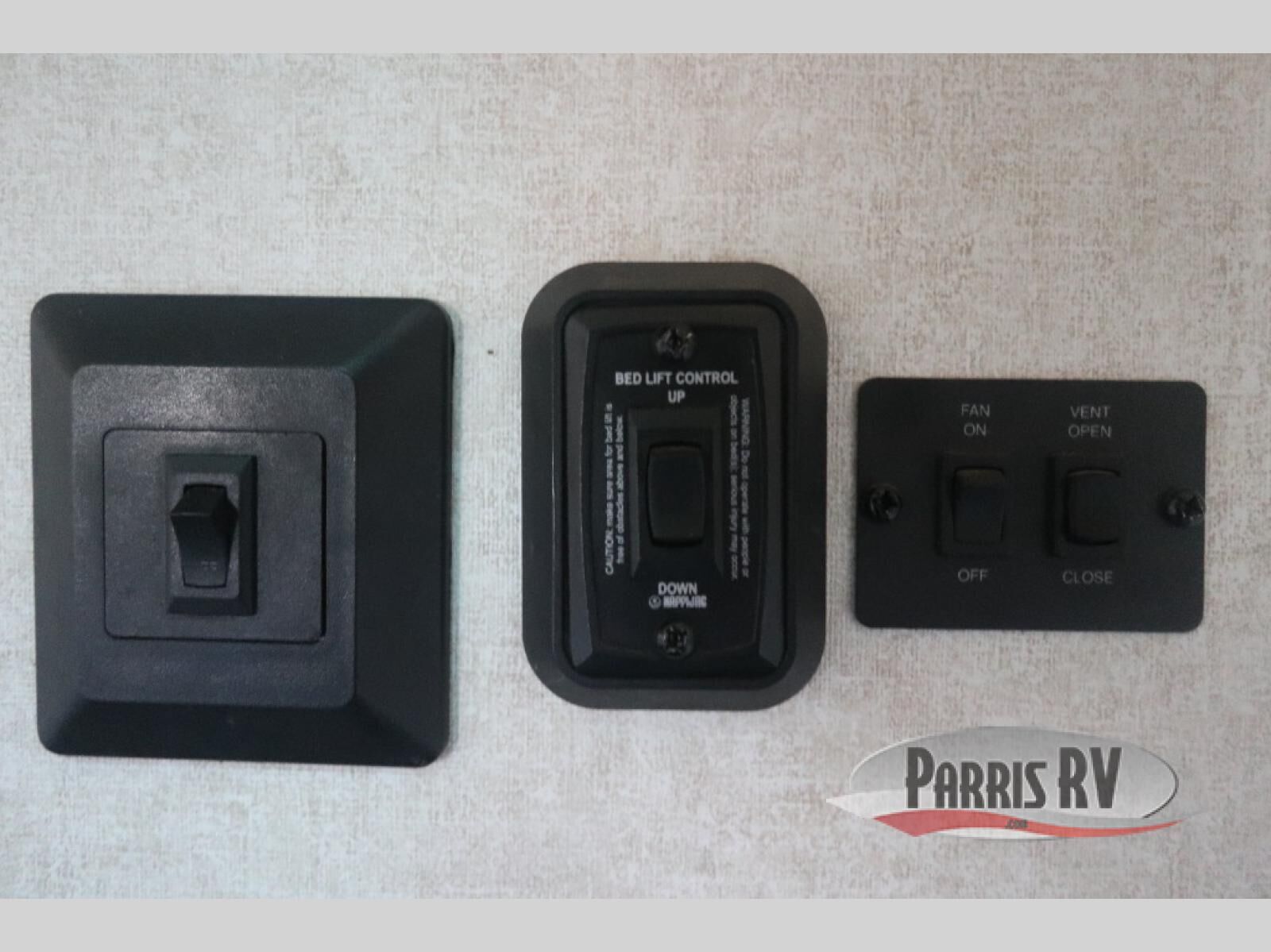 The best feature of this Jayco toy hauler is definitely the versatile garage area. The 2,500 LB capacity ramp allows you to tow along even the heaviest of outdoor accessories during the day, and the convertible sofa beds and pull-down ramp door screen allow you to have a lounge and relaxation area each night. During those cool summer evenings when the night sky shines its brightest, you can sit with friends on the enclosed ramp or take the party outdoors underneath the electric awning lined with LED lighting. The included lockable and insulated storage doors are a part of the Keyed Alike single key system which means that you only need to worry about one key for the entire unit, and the 16" tires that this toy hauler is built upon are a part of the American-made Goodyear brand.