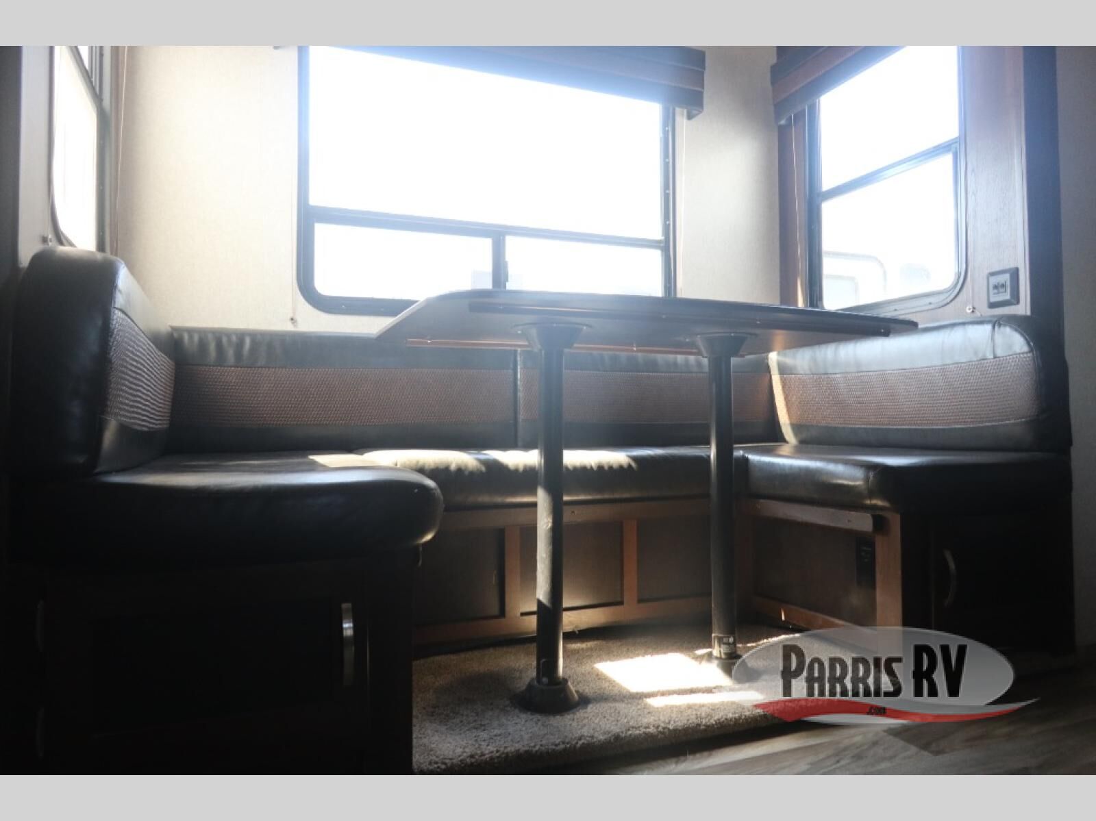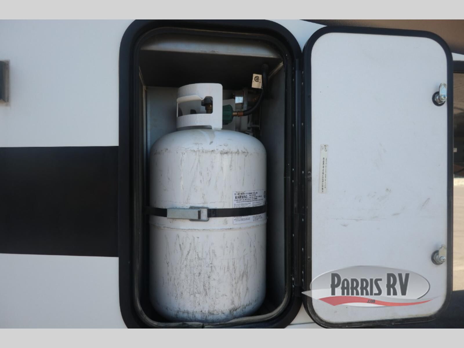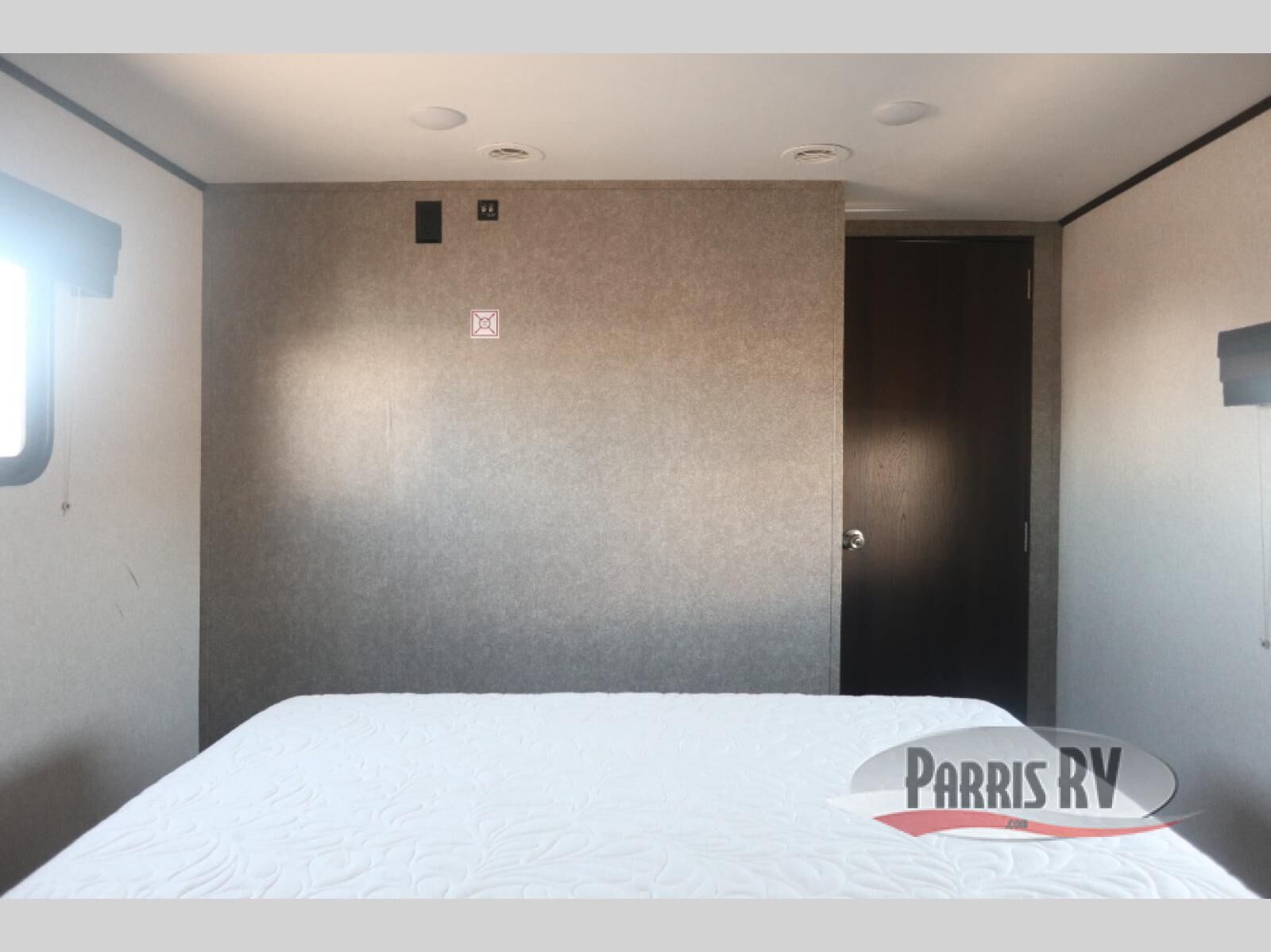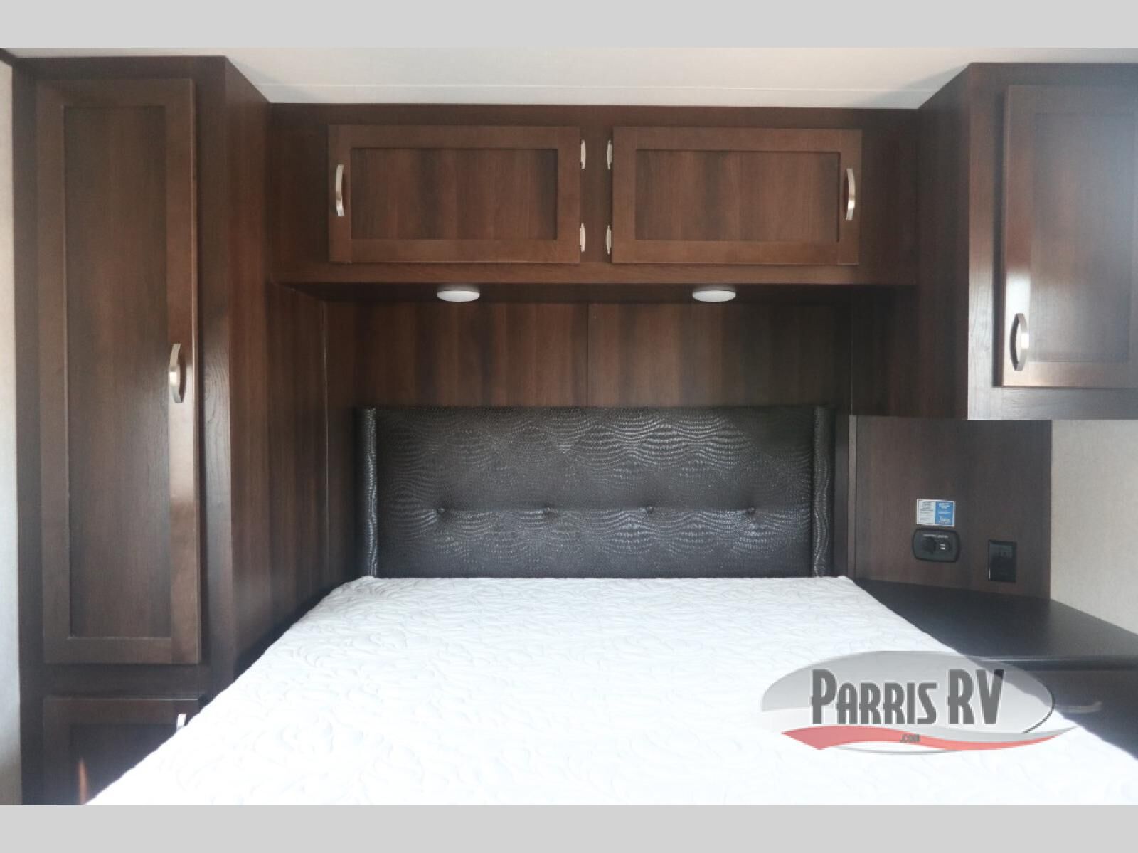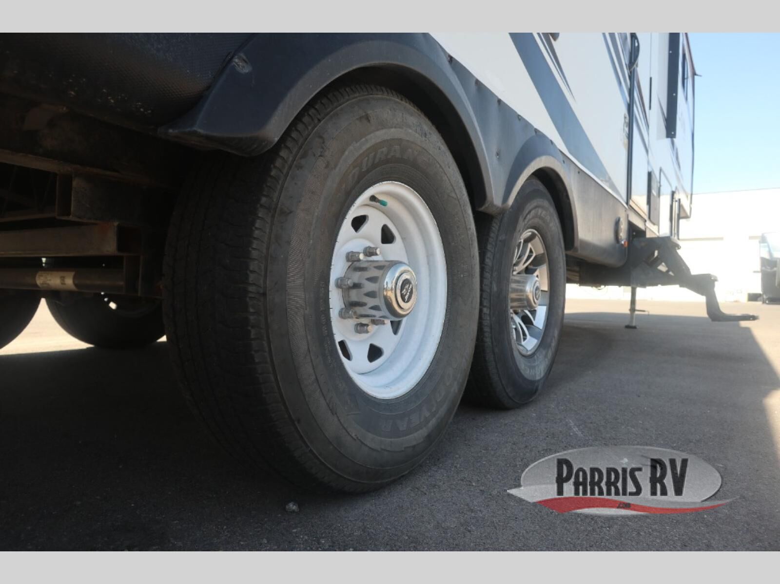 The best feature of this Jayco toy hauler is definitely the versatile garage area. The 2,500 LB capacity ramp allows you to tow along even the heaviest of outdoor accessories during the day, and the convertible sofa beds and pull-down ramp door screen allow you to have a lounge and relaxation area each night. During those cool summer evenings when the night sky shines its brightest, you can sit with friends on the enclosed ramp or take the party outdoors underneath the electric awning lined with LED lighting. The included lockable and insulated storage doors are a part of the Keyed Alike single key system which means that you only need to worry about one key for the entire unit, and the 16" tires that this toy hauler is built upon are a part of the American-made Goodyear brand.