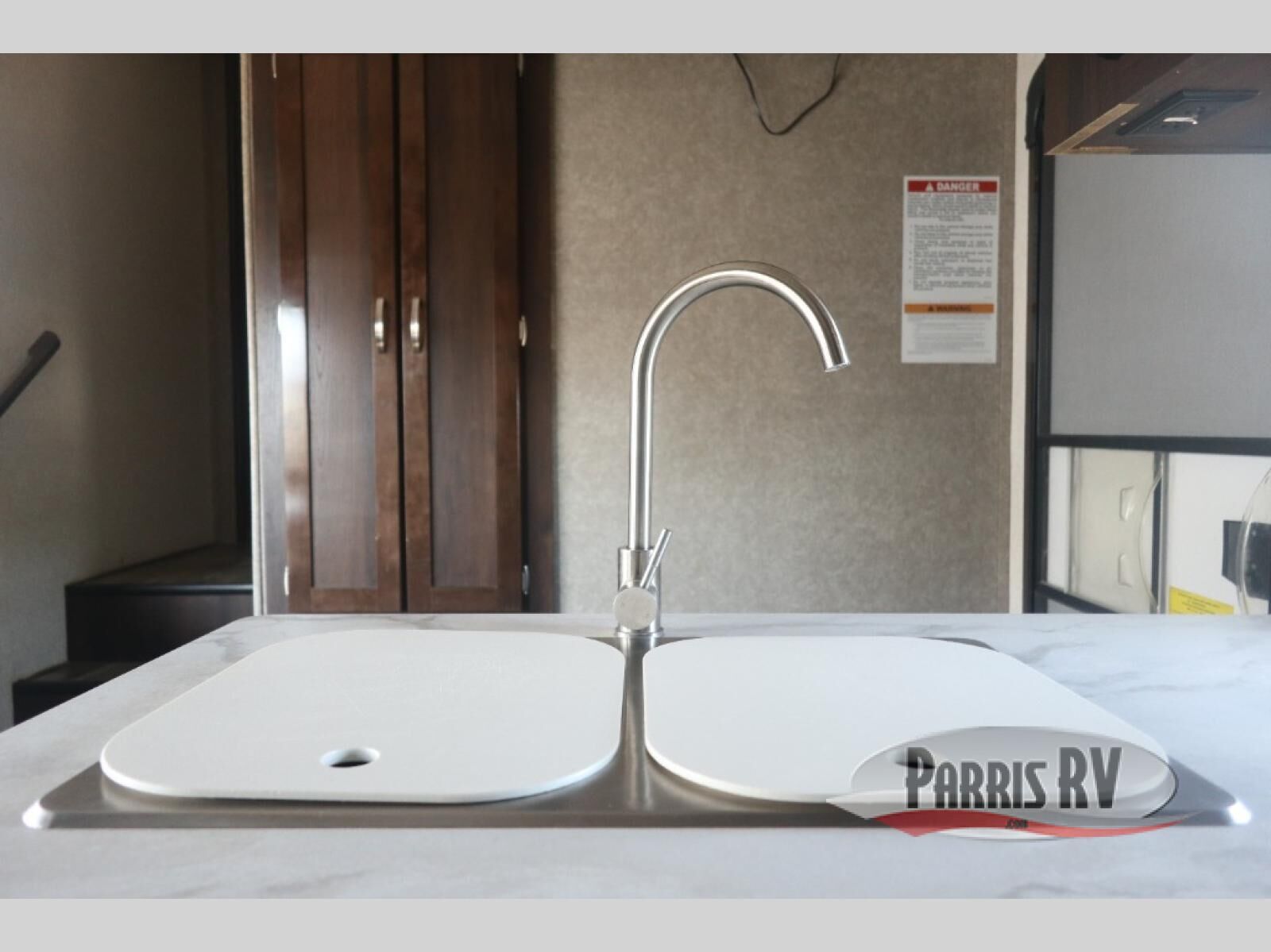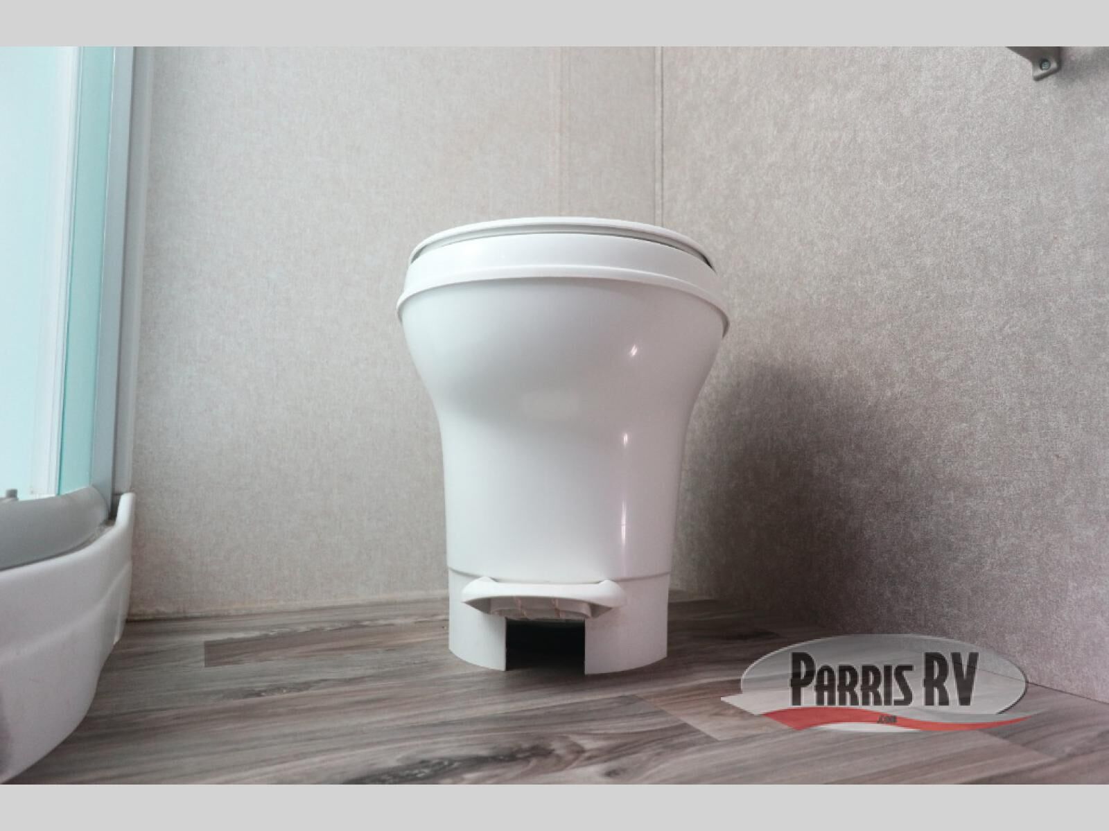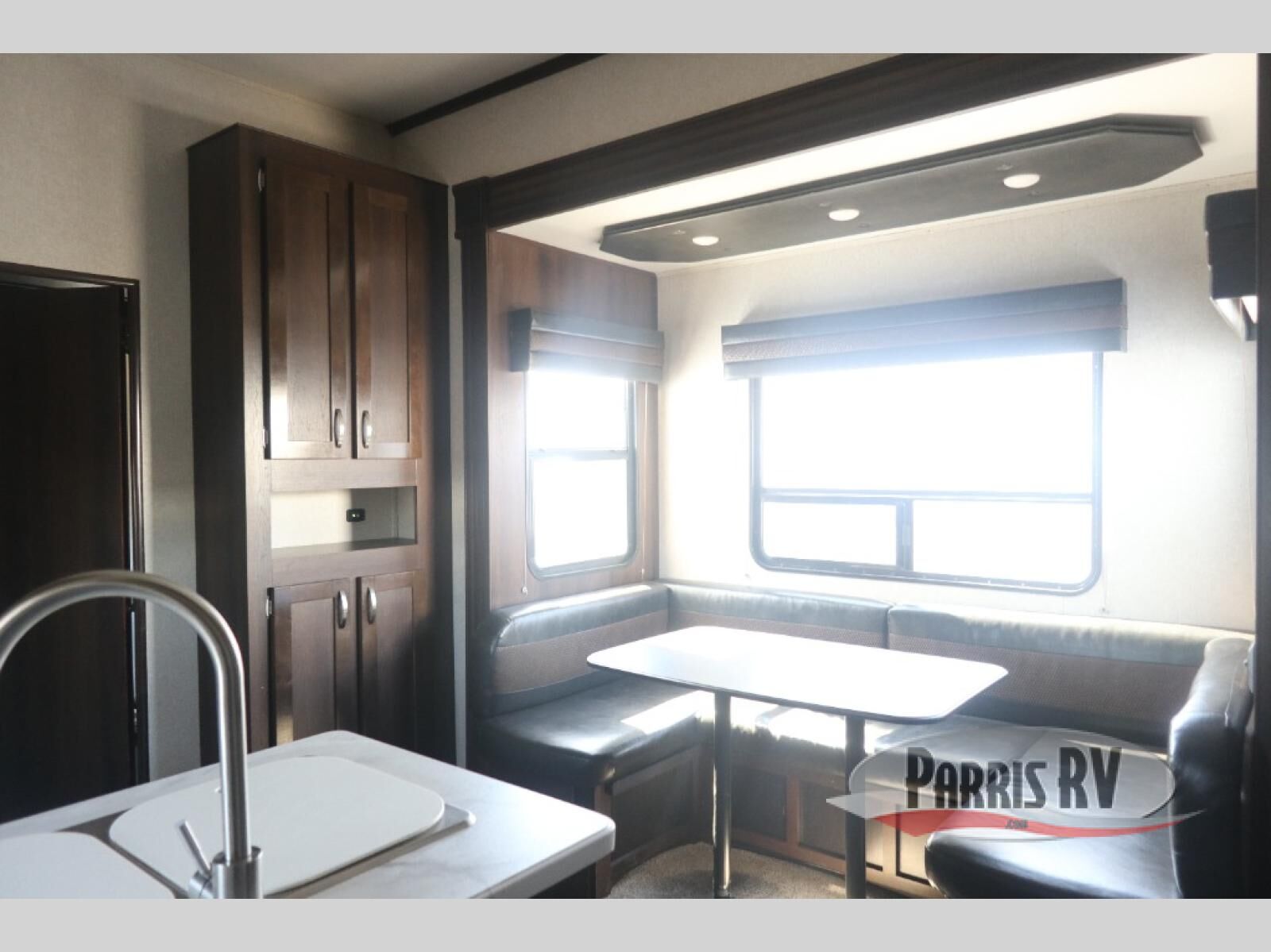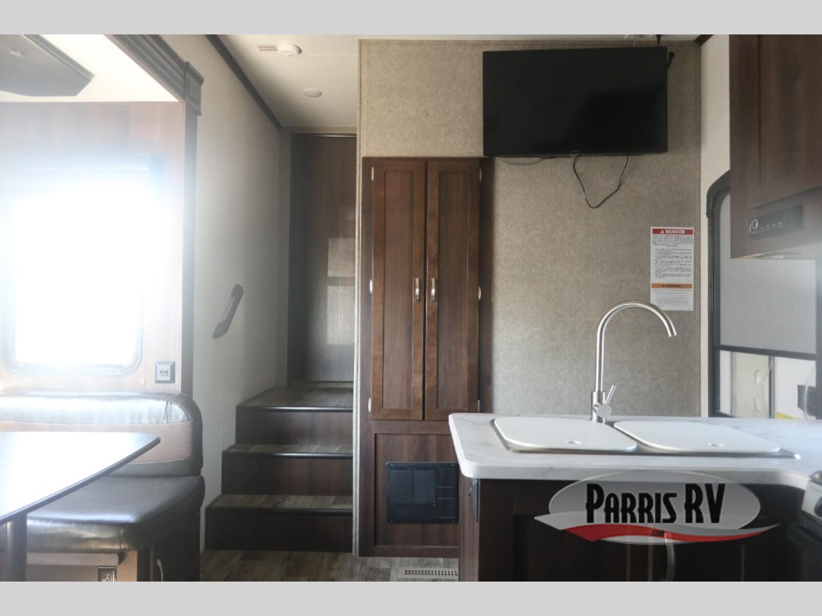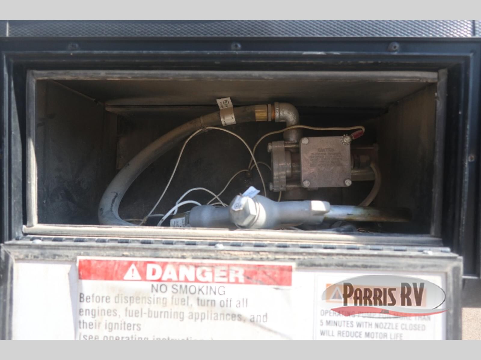 The best feature of this Jayco toy hauler is definitely the versatile garage area. The 2,500 LB capacity ramp allows you to tow along even the heaviest of outdoor accessories during the day, and the convertible sofa beds and pull-down ramp door screen allow you to have a lounge and relaxation area each night. During those cool summer evenings when the night sky shines its brightest, you can sit with friends on the enclosed ramp or take the party outdoors underneath the electric awning lined with LED lighting. The included lockable and insulated storage doors are a part of the Keyed Alike single key system which means that you only need to worry about one key for the entire unit, and the 16" tires that this toy hauler is built upon are a part of the American-made Goodyear brand.