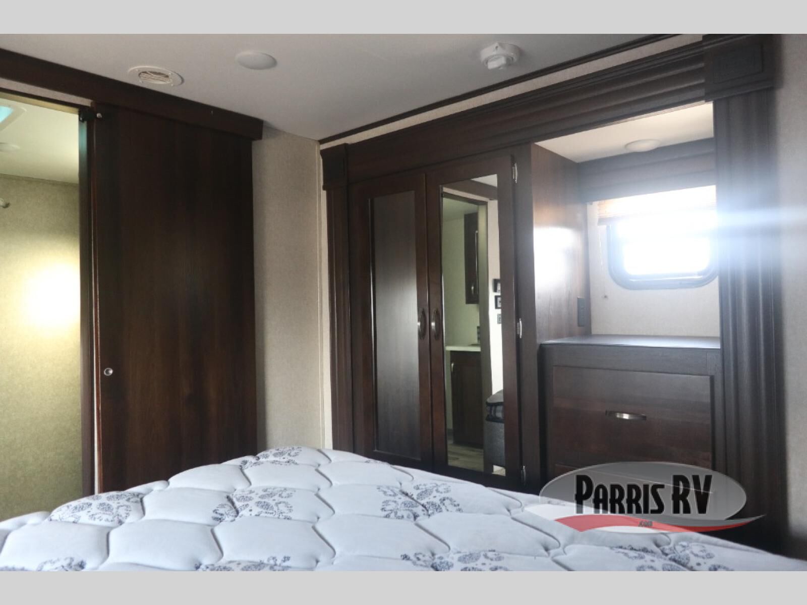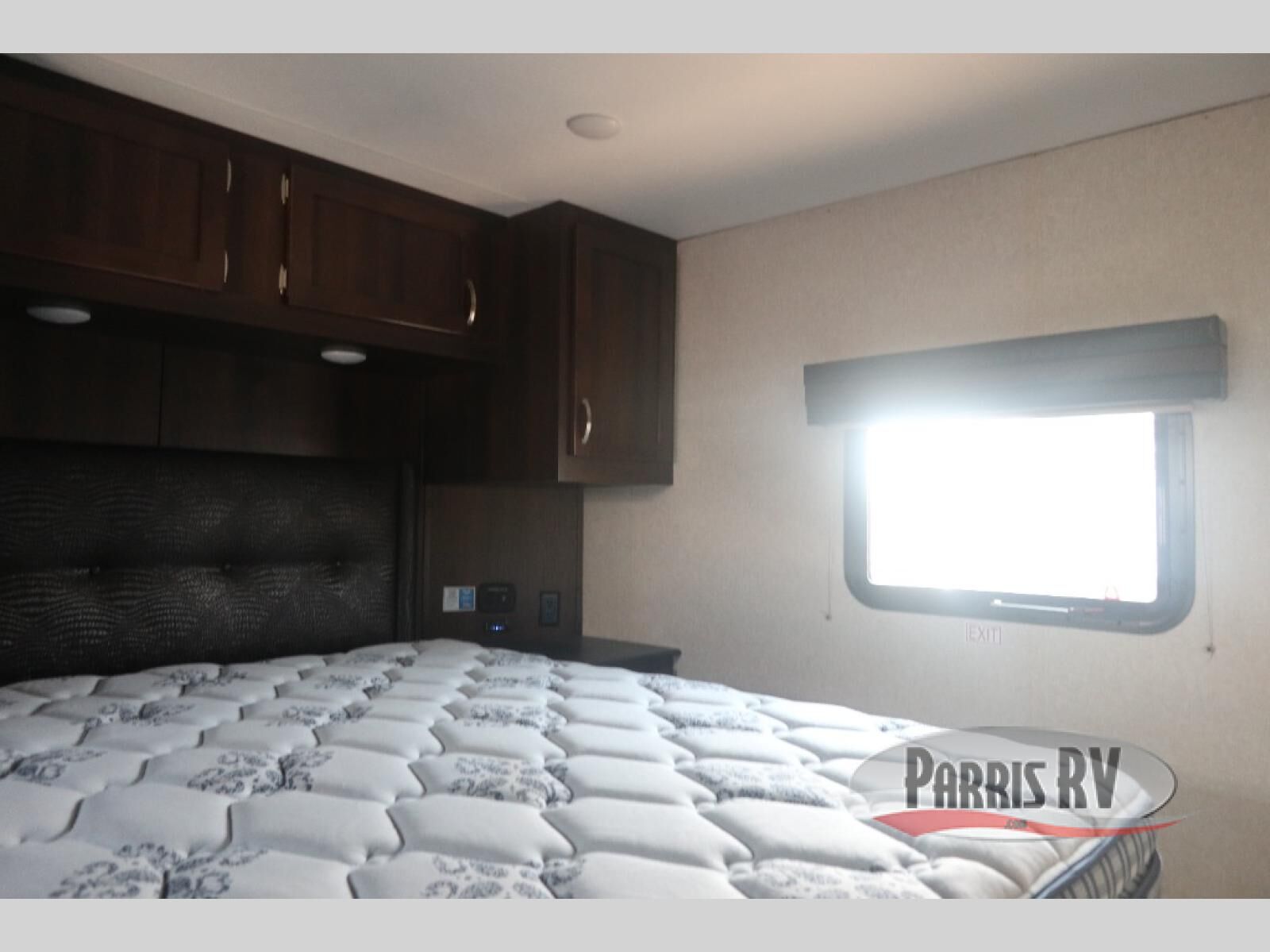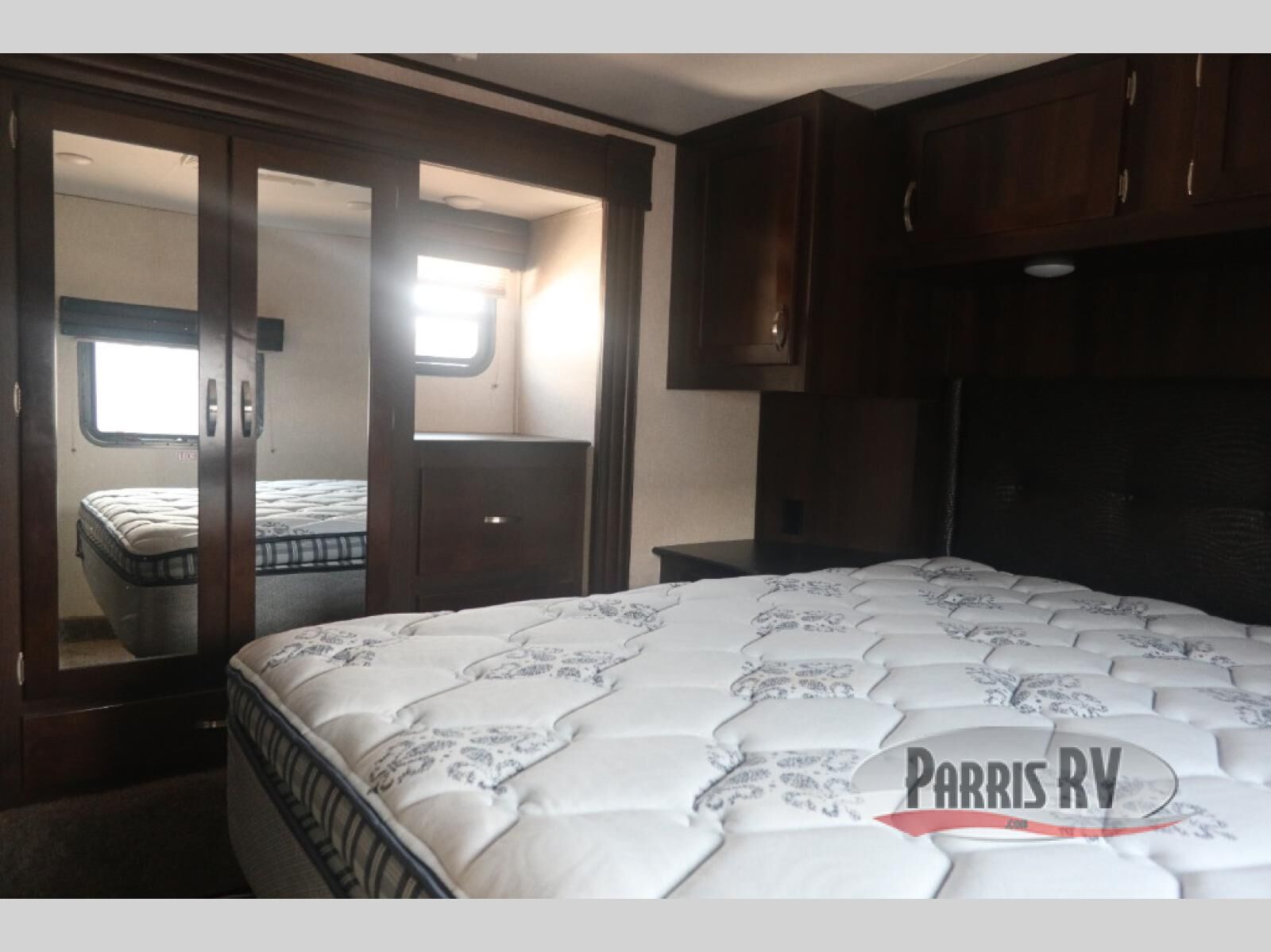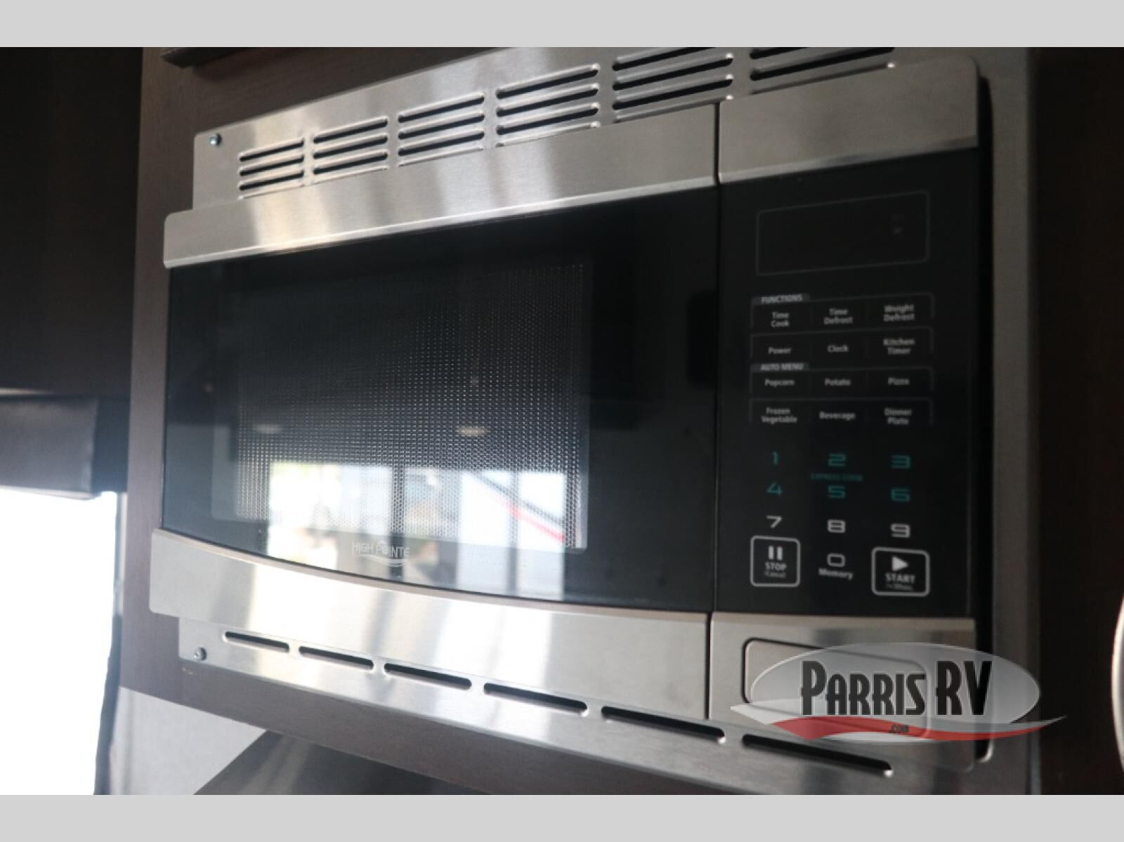The best feature of this Jayco toy hauler is definitely the versatile garage area. The 2,500 LB capacity ramp allows you to tow along even the heaviest of outdoor accessories during the day, and the convertible sofa beds and pull-down ramp door screen allow you to have a lounge and relaxation area each night. During those cool summer evenings when the night sky shines its brightest, you can sit with friends on the enclosed ramp or take the party outdoors underneath the electric awning lined with LED lighting. The included lockable and insulated storage doors are a part of the Keyed Alike single key system which means that you only need to worry about one key for the entire unit, and the 16" tires that this toy hauler is built upon are a part of the American-made Goodyear brand.