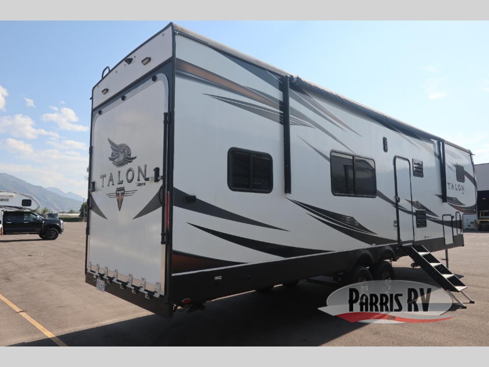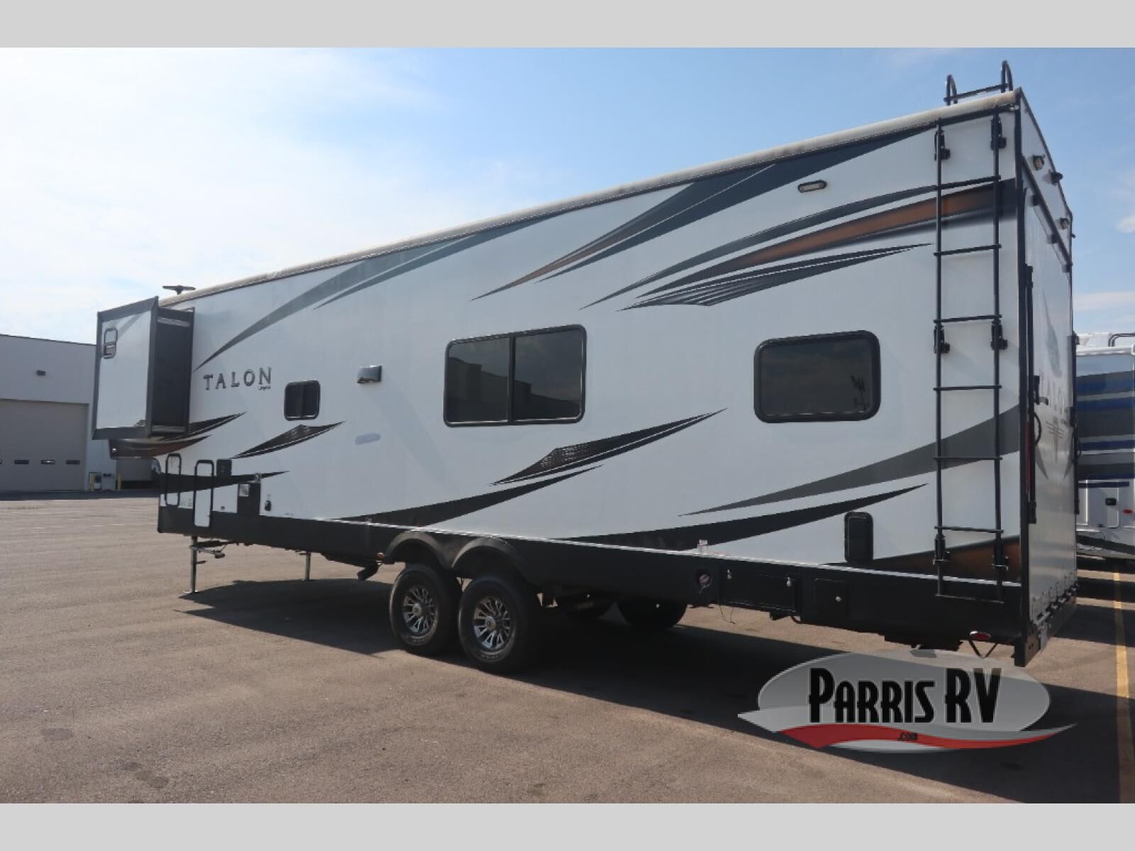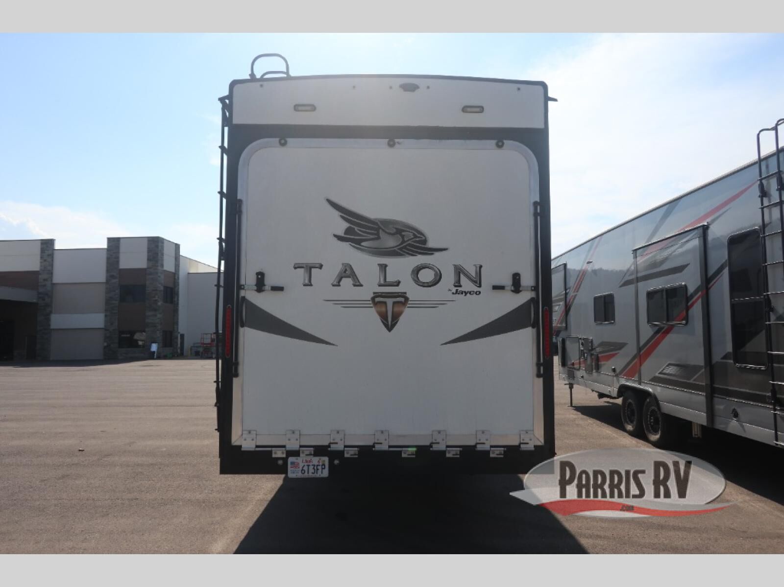 In this Jayco Talon toy hauler, you will find all of the comforts of home wrapped up into one conveniently-towable fifth wheel. The large walk-through bathroom gives you plenty of space where you need it most, and the sunshine that pours through the skylight above the shower opens up this bathroom area even more. The private bedroom with a Jayco-exclusive Simmons mattress gives you a place to retreat to after a long day of adventuring outdoors, and the wardrobe slide out adds that extra bit of space that you need to store all of your outdoor gear.
