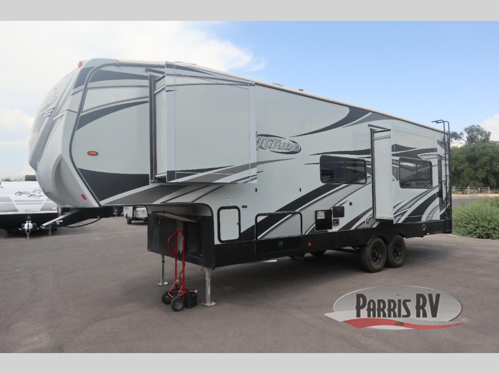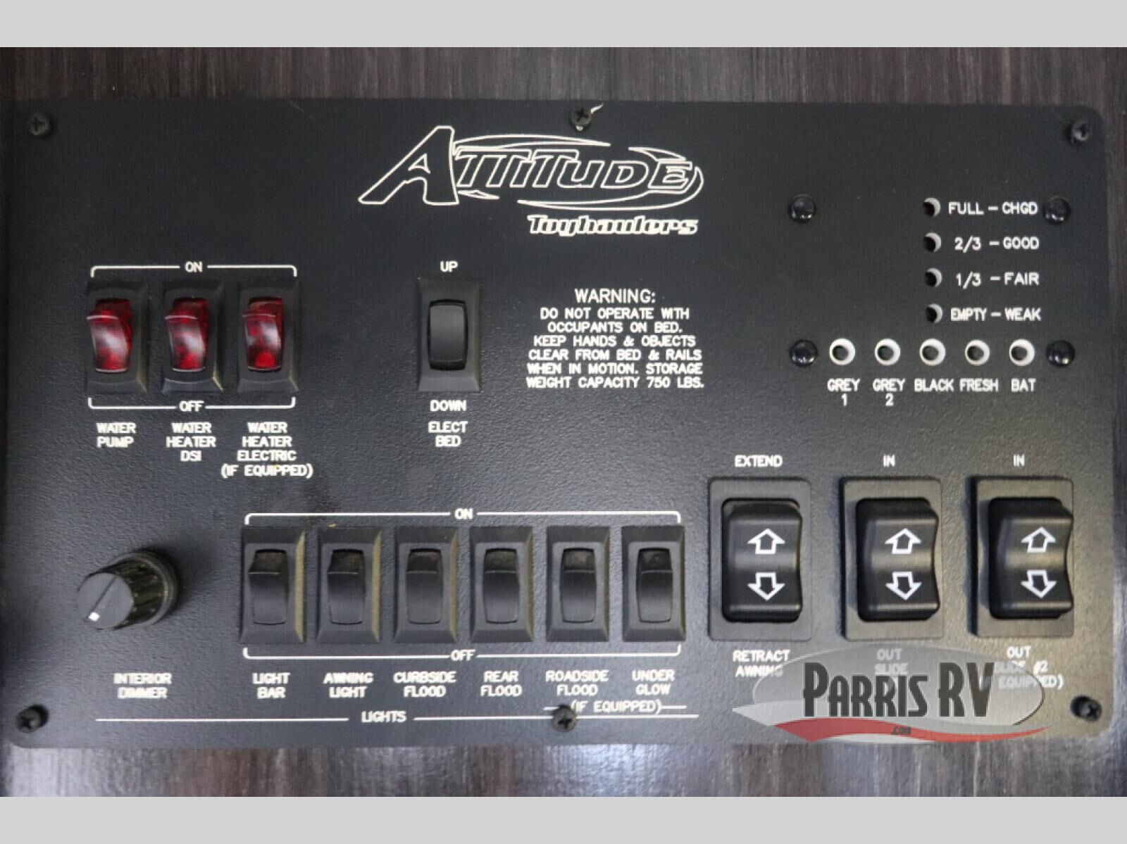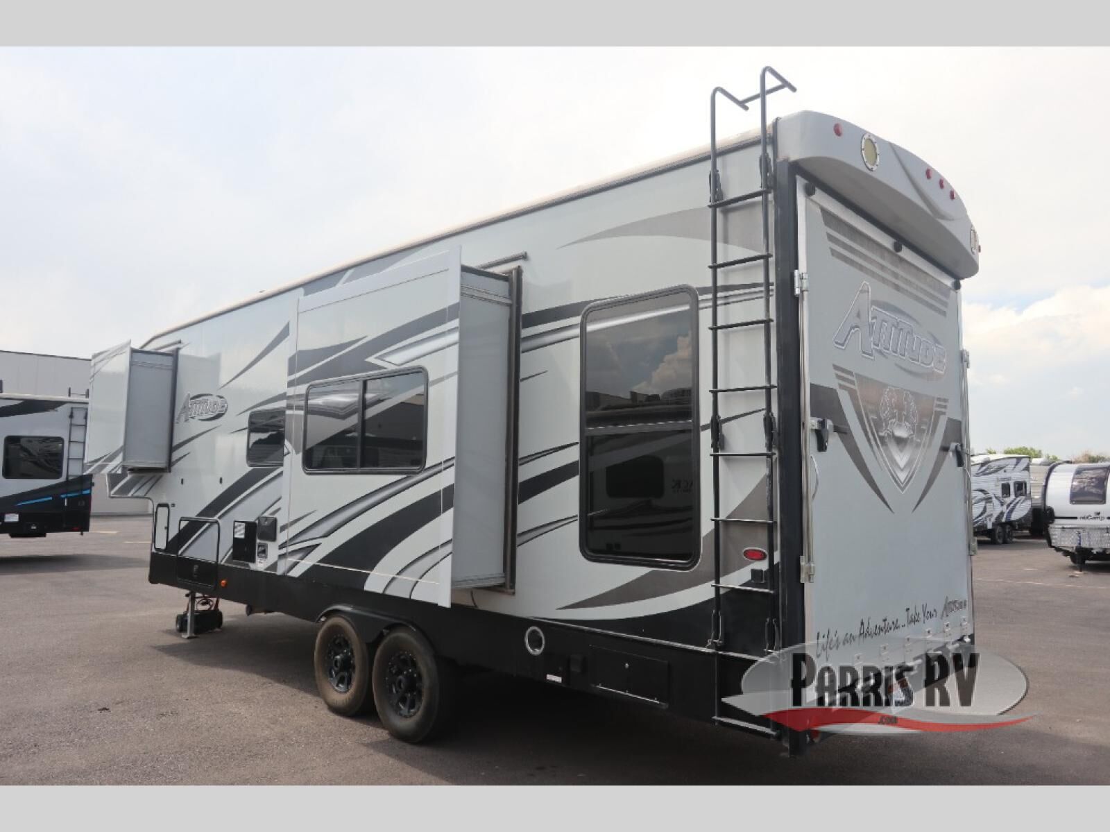 With the Eclipse Attitude Wide Lite toy hauler fifth wheel you can camp in comfort and style! Along the outside there is a 40 gallon fuel station so you can keep the fun going all weekend long! There is a gray fiberglass front cap with LED lights and gray fiberglass sidewalls. The ramp door with cables have a 3,000 lb rating so you can easily load your toys of choice. Inside you will find an electric bed, a lighted solid surface galley top, a drop range with glass cover, and a pillowtop mattress with bedspread and shams. In the galley and bedroom you will also find a USB charger and more!