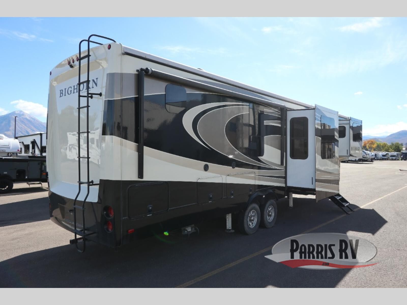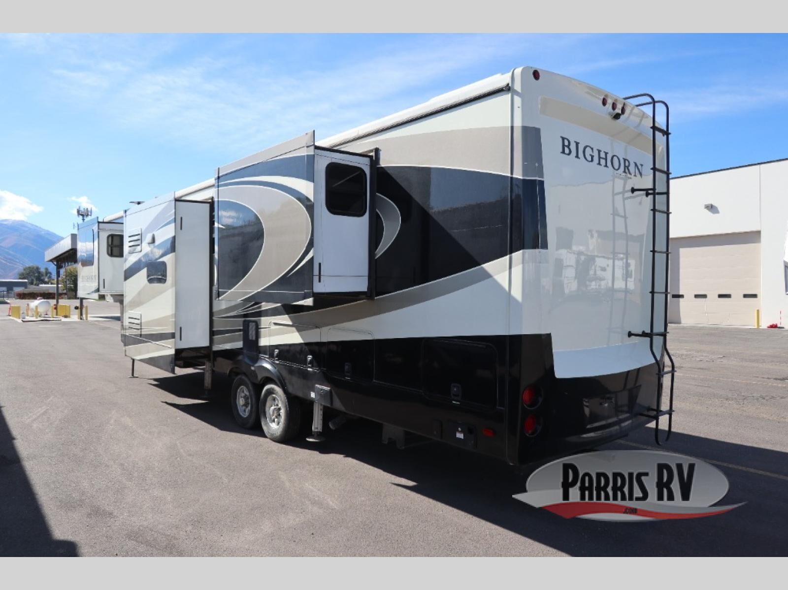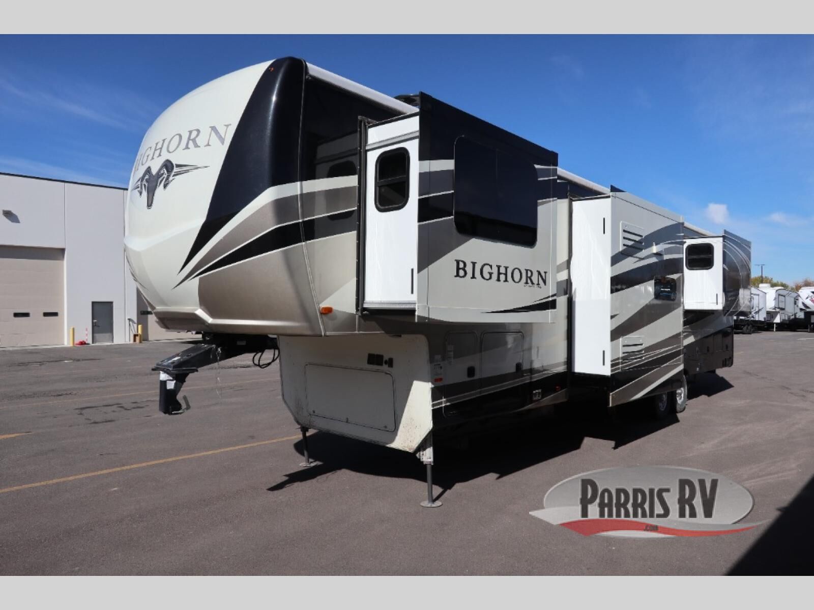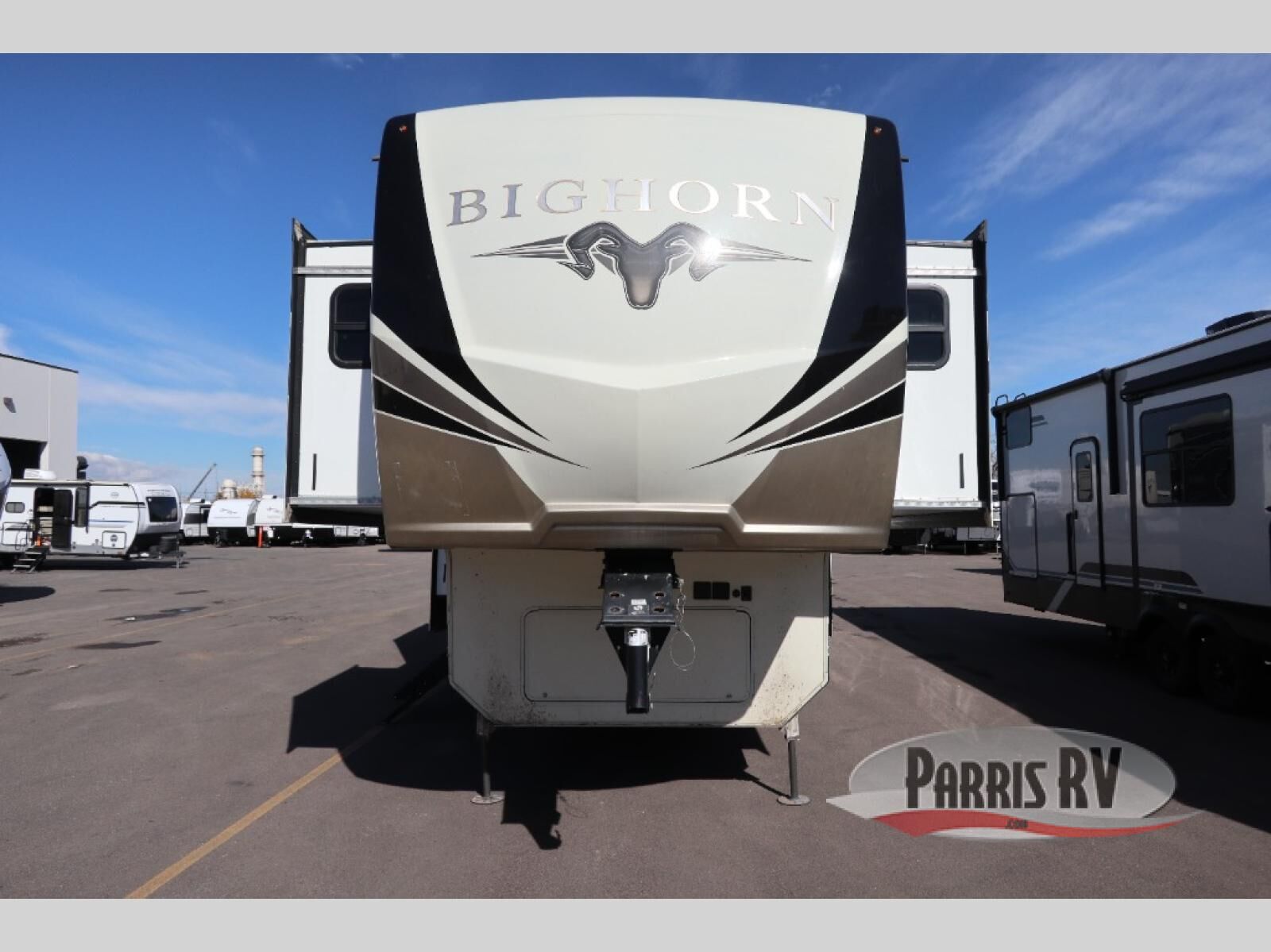Each Bighorn fifth wheel will give you luxury and affordable features. The exterior includes the largest amount of storage with 140 cu. ft. for all of your gear, a Universal Docking Center, an 88 degree turning radius front cap design, hydraulic landing gear, and Mor/Ryde suspension. You will also find a heated and enclosed underbelly, tanks and gate valves to allow you to easily camp in all types of weather. Scenic views are available through the huge panoramic rear bay window and the windows around the dinette. More inside features include hand crafted cabinets including decor glass on all upper cabinets, LED lit crown molding, and the One Control system allowing users to remotely control and monitor many RV systems from a smartphone or tablet. Choose your favorite model and raise your status!
