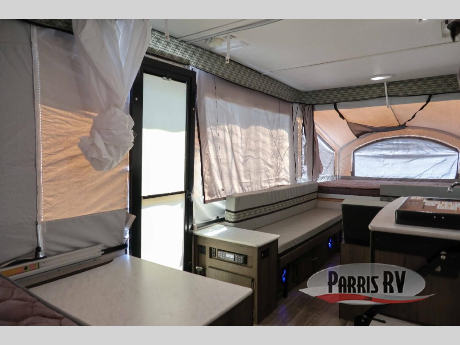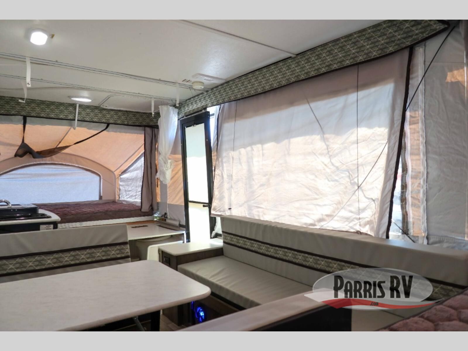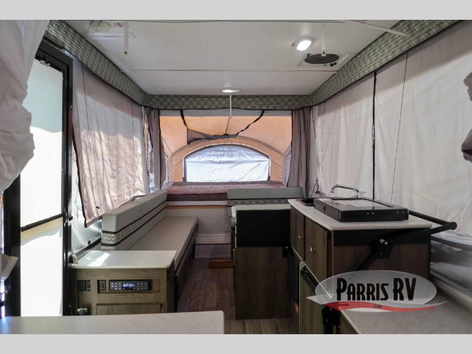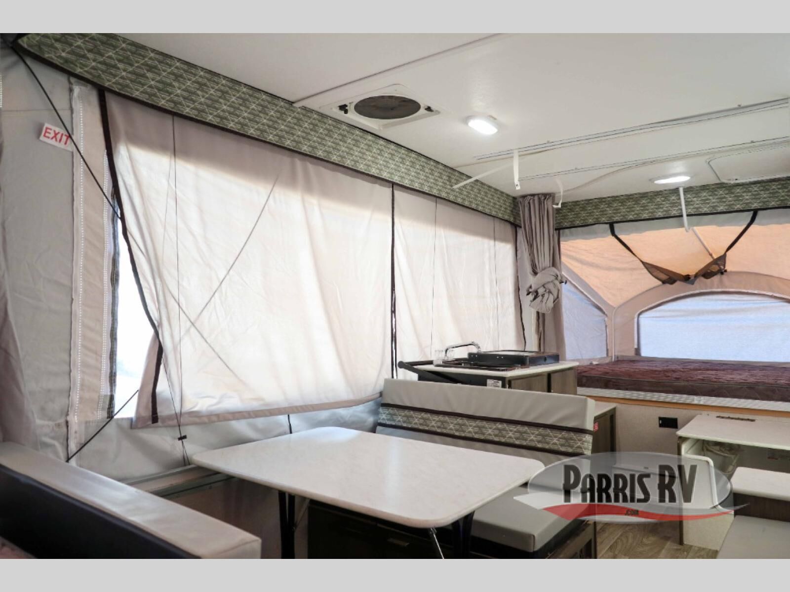 A family of six will love having their own sleeping accommodations at night after exploring outdoors all day! From the king-size tend end bed up front and the queen-size tent end bed in the rear to the dinette table and seating plus gaucho, you can sleep six. The cook will appreciate the E-Z swing galley with drawer, a two-burner high output range to make hot meals and a deep bowl acrylic sink to keep the dishes clean. There is storage found throughout, plus options to choose from such as adding a bathroom package, a 40 or 80 watt Zamp portable solar panel, a "Jack It" bike rack, an optional sliding exterior storage box and more.