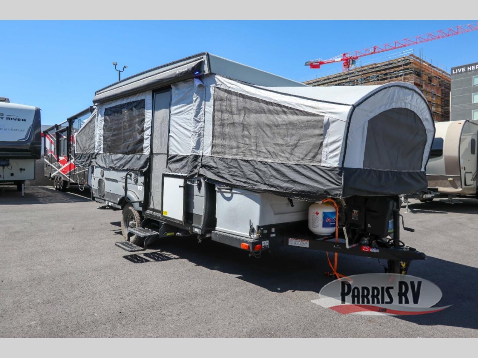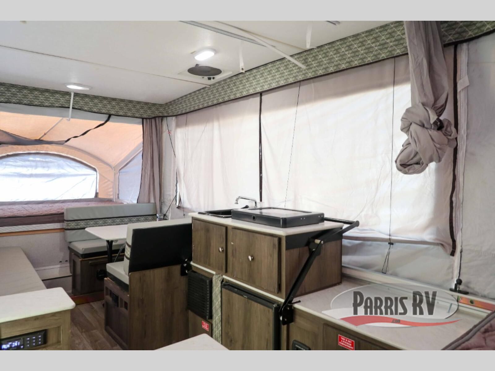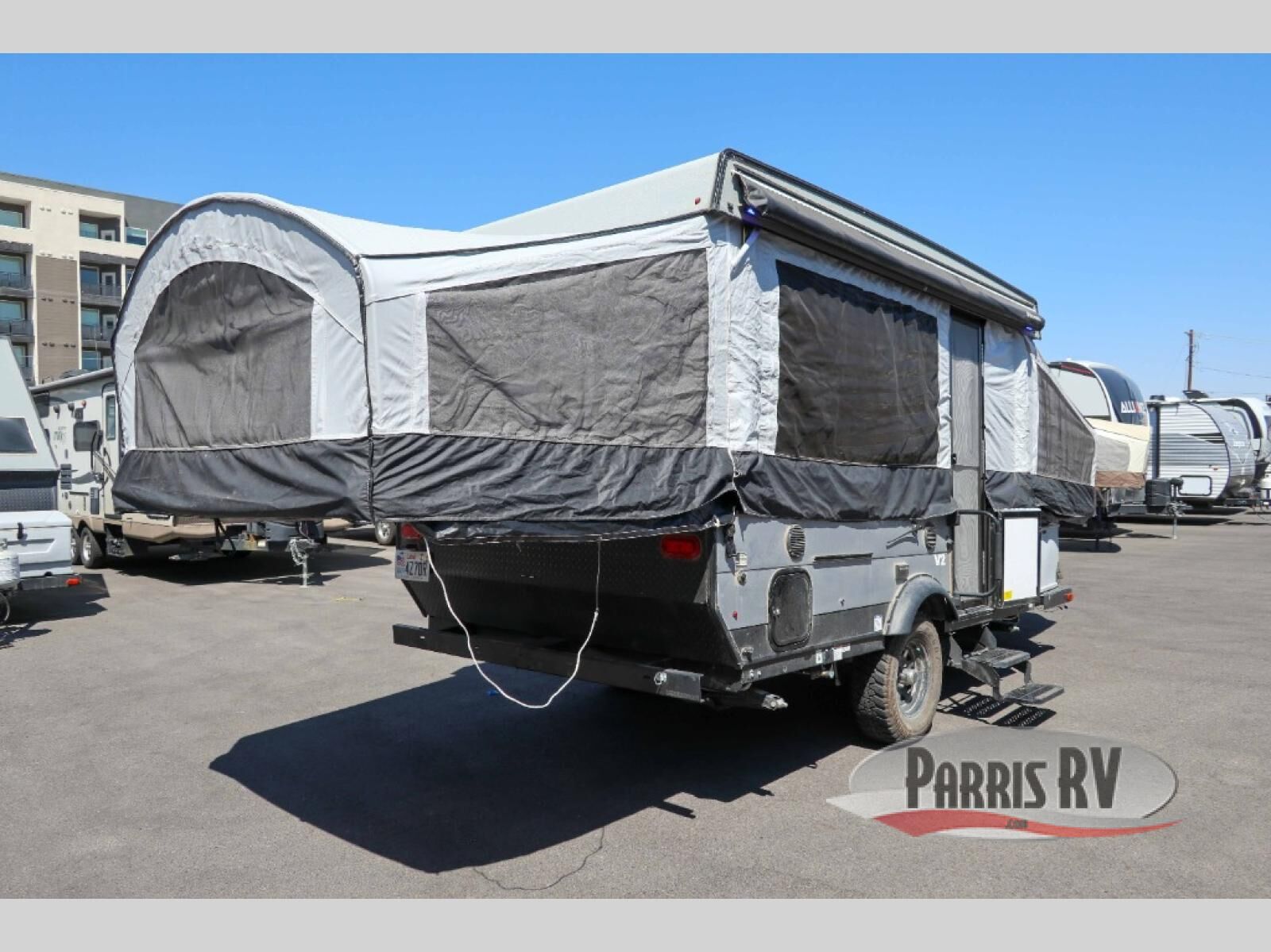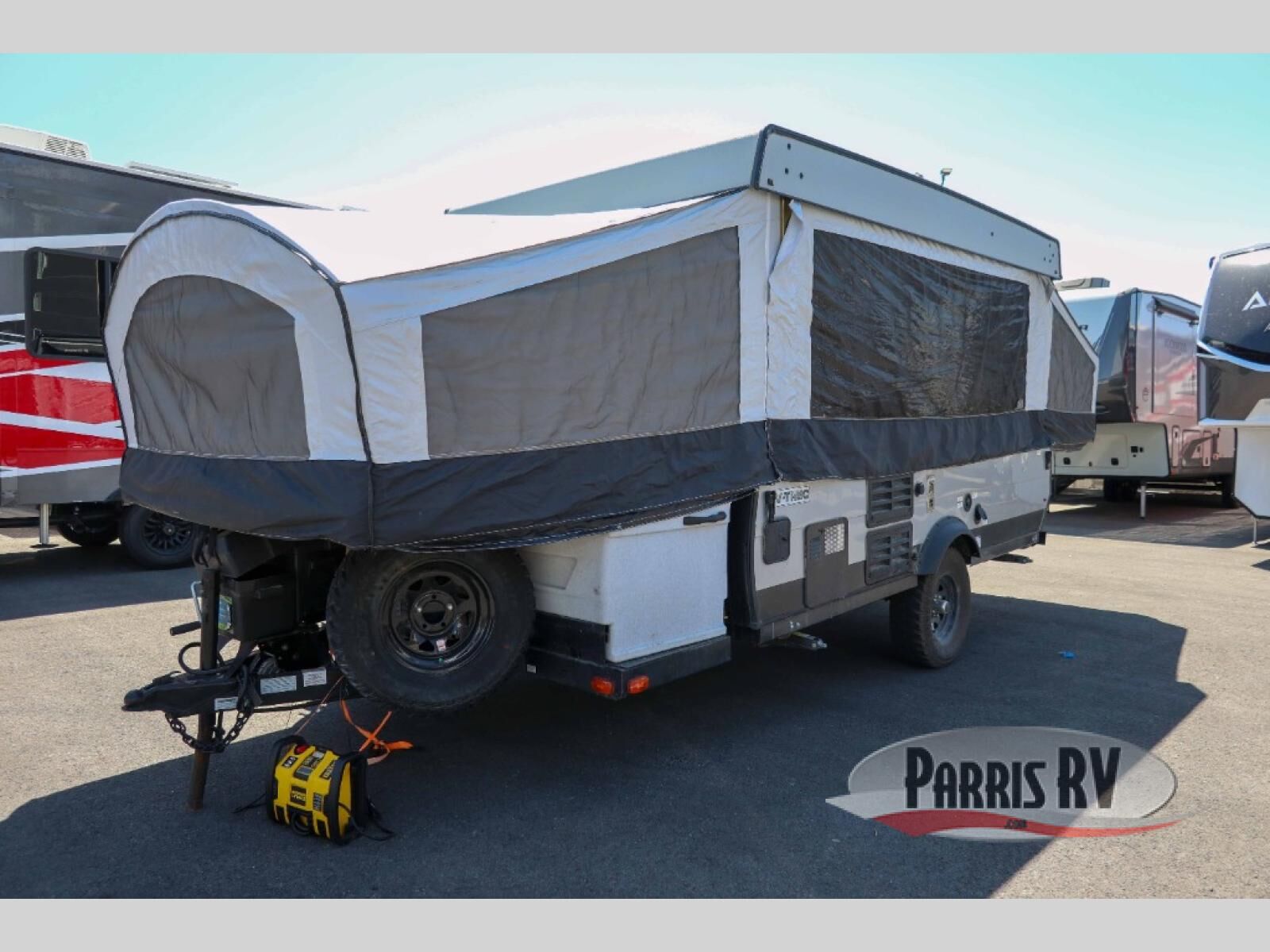 A family of six will love having their own sleeping accommodations at night after exploring outdoors all day! From the king-size tend end bed up front and the queen-size tent end bed in the rear to the dinette table and seating plus gaucho, you can sleep six. The cook will appreciate the E-Z swing galley with drawer, a two-burner high output range to make hot meals and a deep bowl acrylic sink to keep the dishes clean. There is storage found throughout, plus options to choose from such as adding a bathroom package, a 40 or 80 watt Zamp portable solar panel, a "Jack It" bike rack, an optional sliding exterior storage box and more.