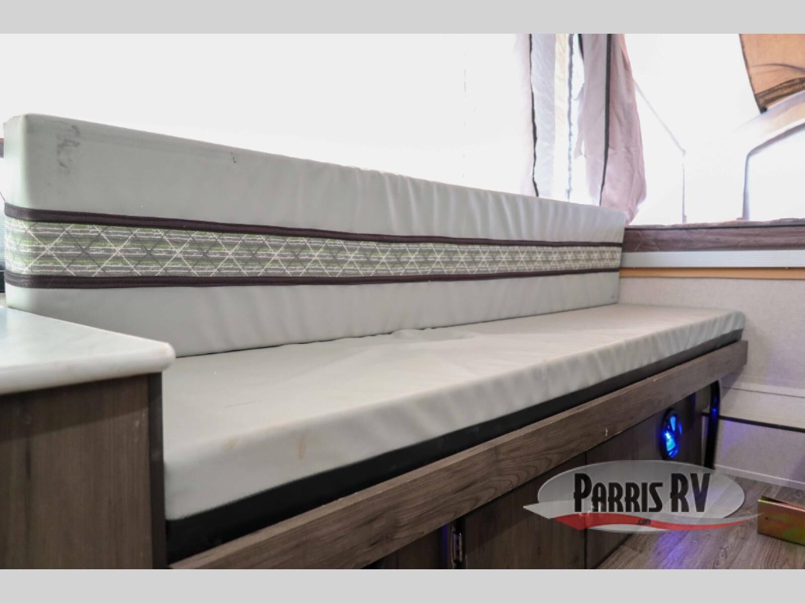 With any Viking V-Trec folding pop-up camper, the heavy duty construction sets the V-Trec apart! With a 5" tube frame, a reinforced diamond plate front deck on most models, and the 4,000 lb. heavy duty torsion axle for heavy cargo capacity, you can take many adventures on roads less traveled! The interior provides comfort, style and convenience from Ultra Comfort 4" high density cushions, the residential laminated countertops and the Dark Ash cabinetry to the LED bunk fan lights, the vented privacy drapes and the kitchen amenities. So let the good times begin, choose a V-Trec today!