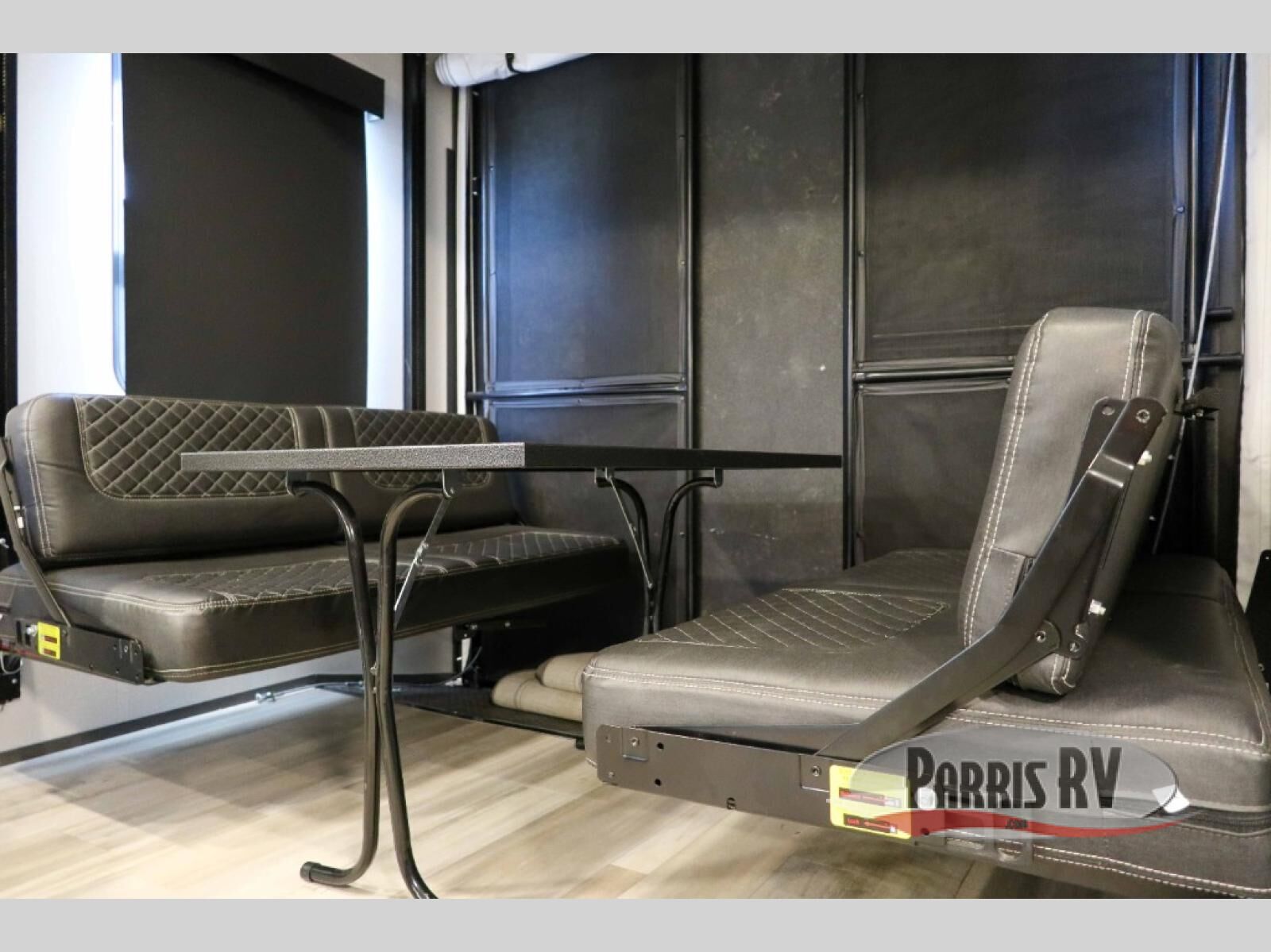 Outdoor enthusiasts have met their match in this Stryker toy hauler! The 16' garage and 5,000 lb. tie-down rings will allow you to bring along your favorite toys, plus there is a 30 gallon fuel station so they're ready when you are. Your guests can make the garage their bedroom at night since there are opposing sofas with a dinette and a power queen bed up above. The front master bedroom includes a king bed, a wardrobe slide, plus two additional wardrobes for tons of storage space. And don't overlook the main living area with a sofa slide out, two lounge chairs, plus a full kitchen to create home cooked meals!