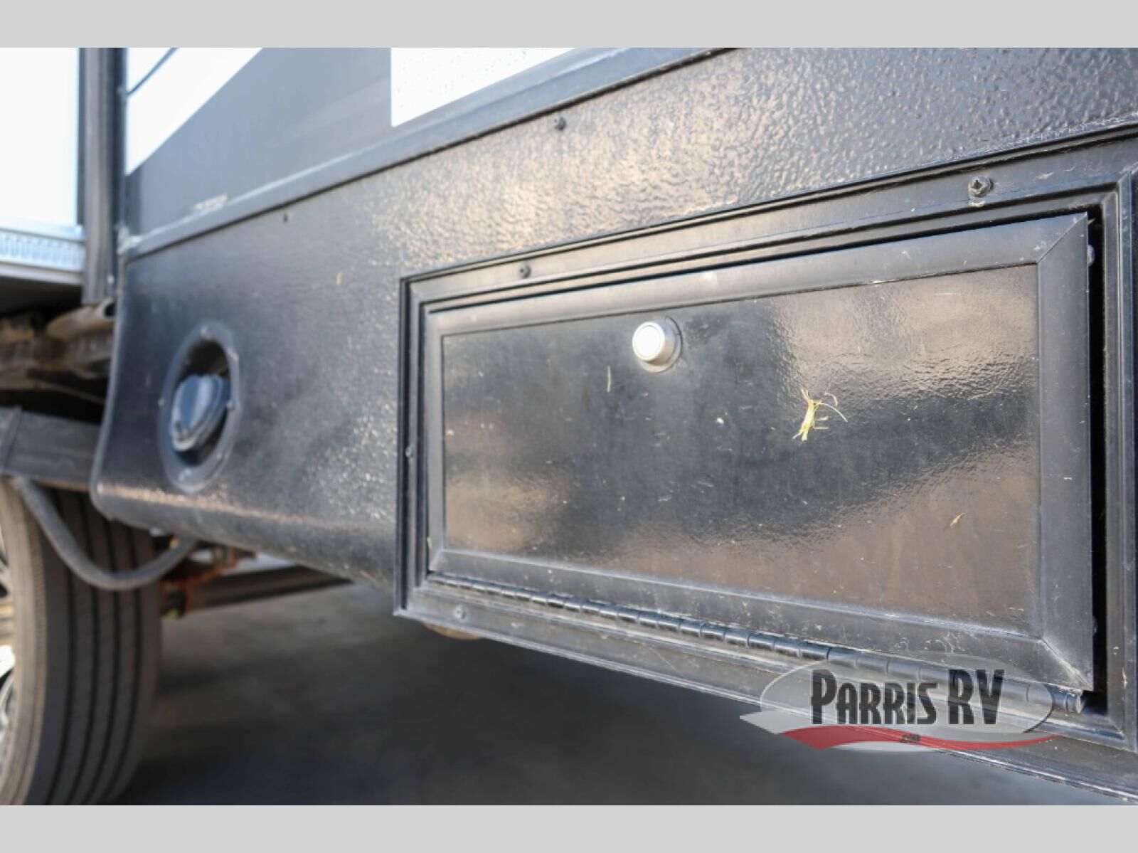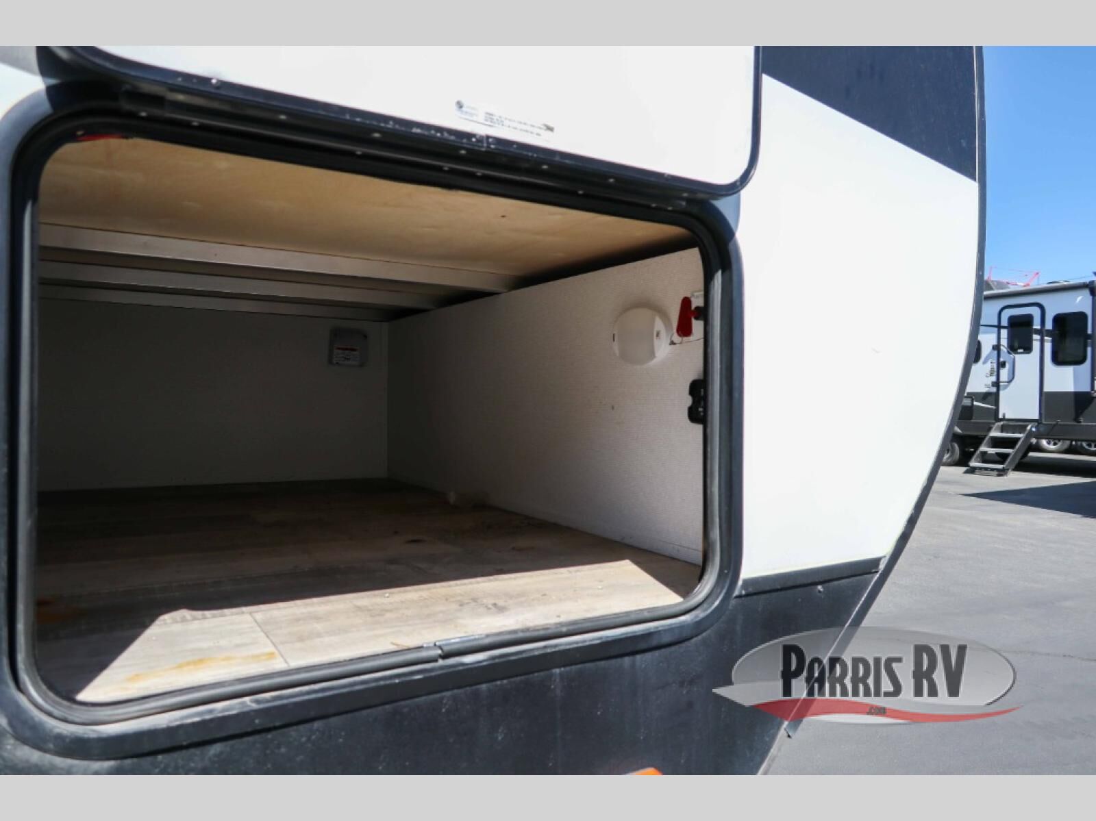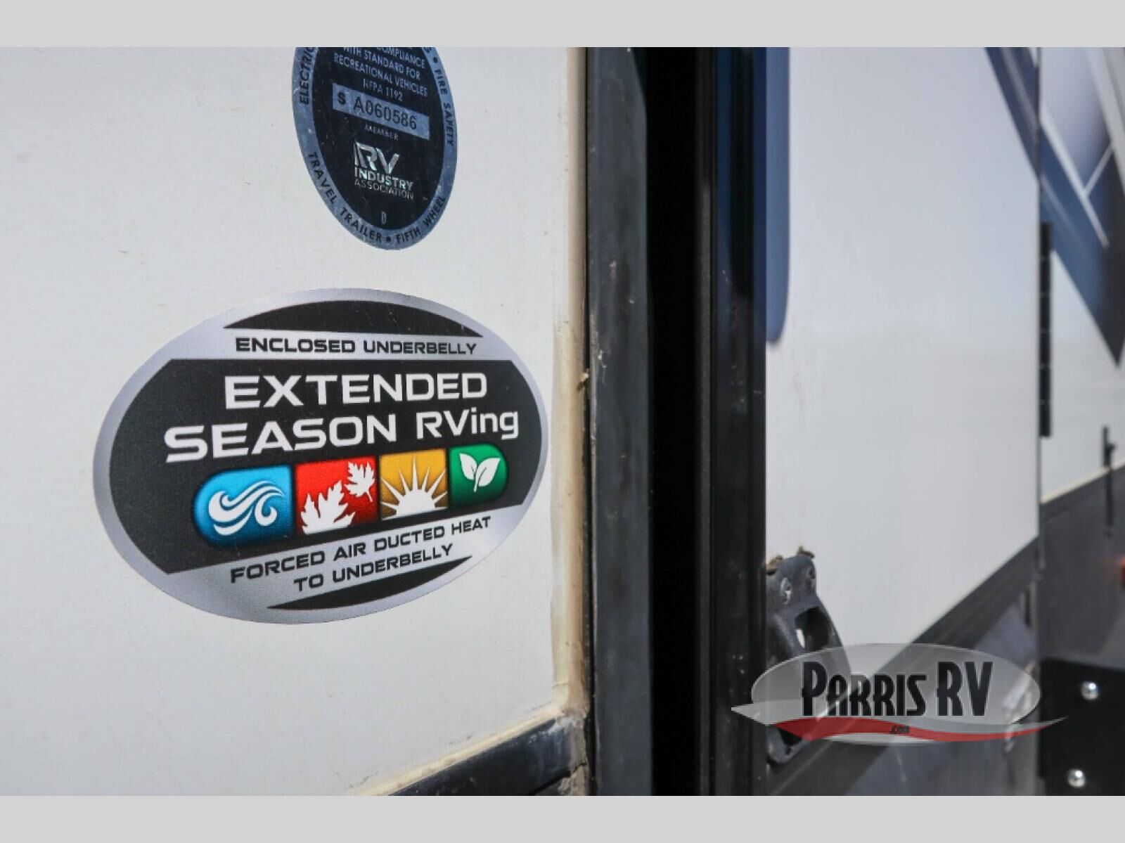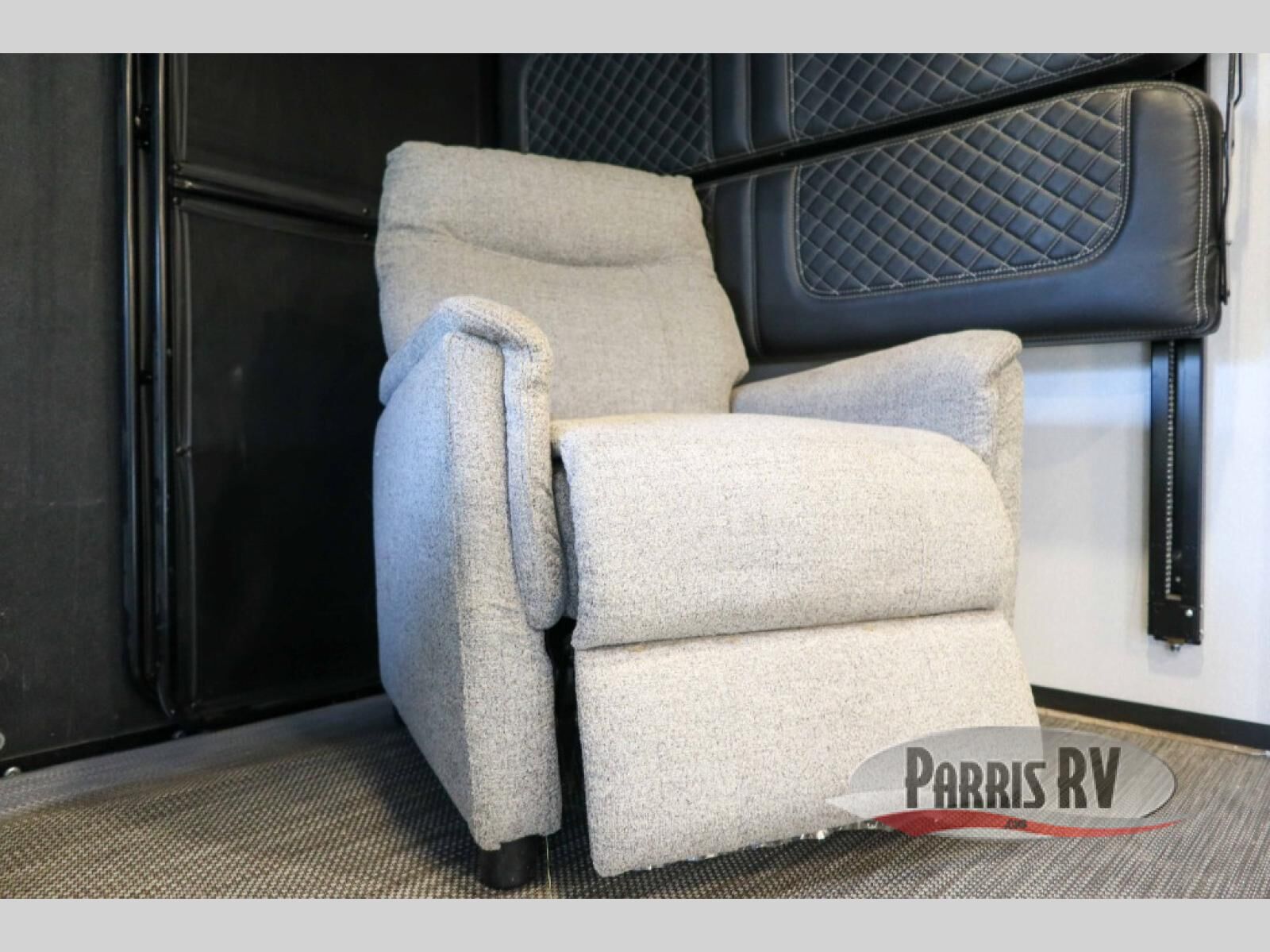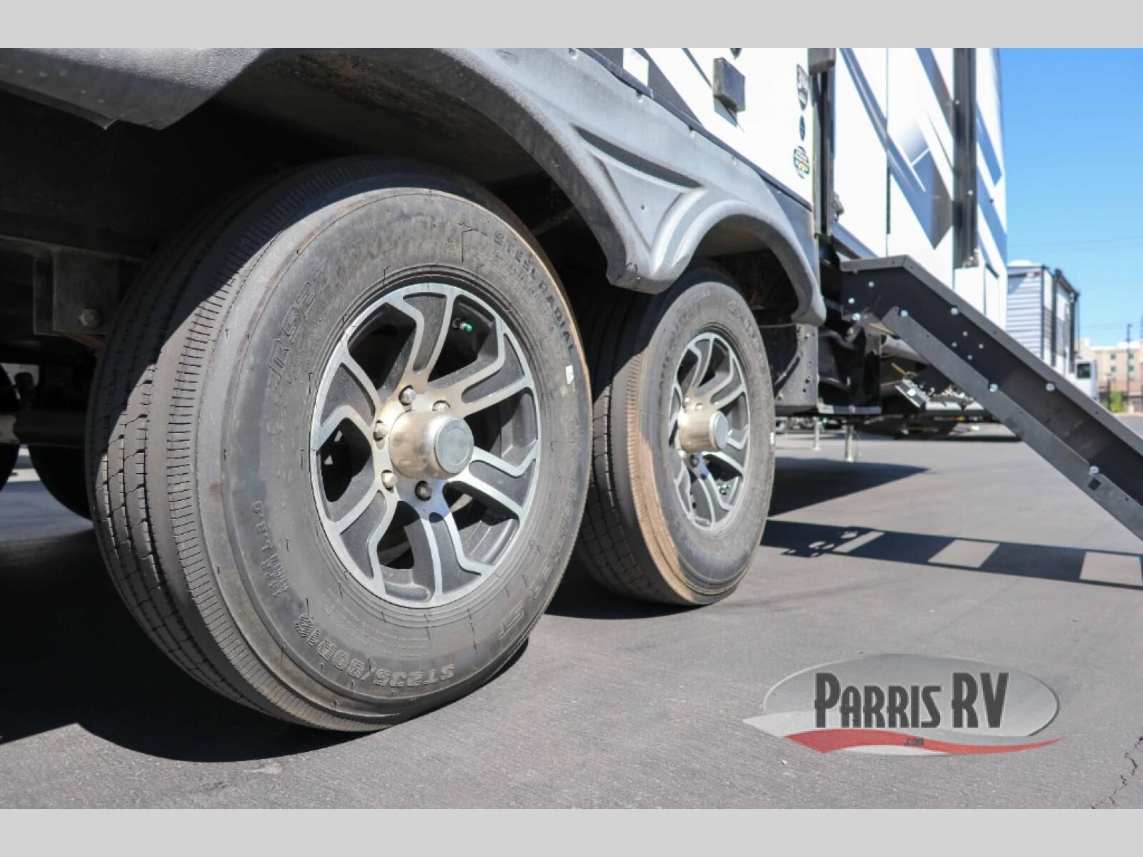 This Fuel toy hauler has all of the comfort and convenience you need! There is a front master suite with a king-size bed and a private entrance into the dual-entry bathroom. The kitchen has an 8-cubic foot refrigerator for storing any items that need to be chilled, and the three-burner range is an excellent tool for turning those items into something delicious to eat. You can sit back and relax in one of the lounge chairs, or you can sit at the opposing sofas with dinette below the power queen bunk.