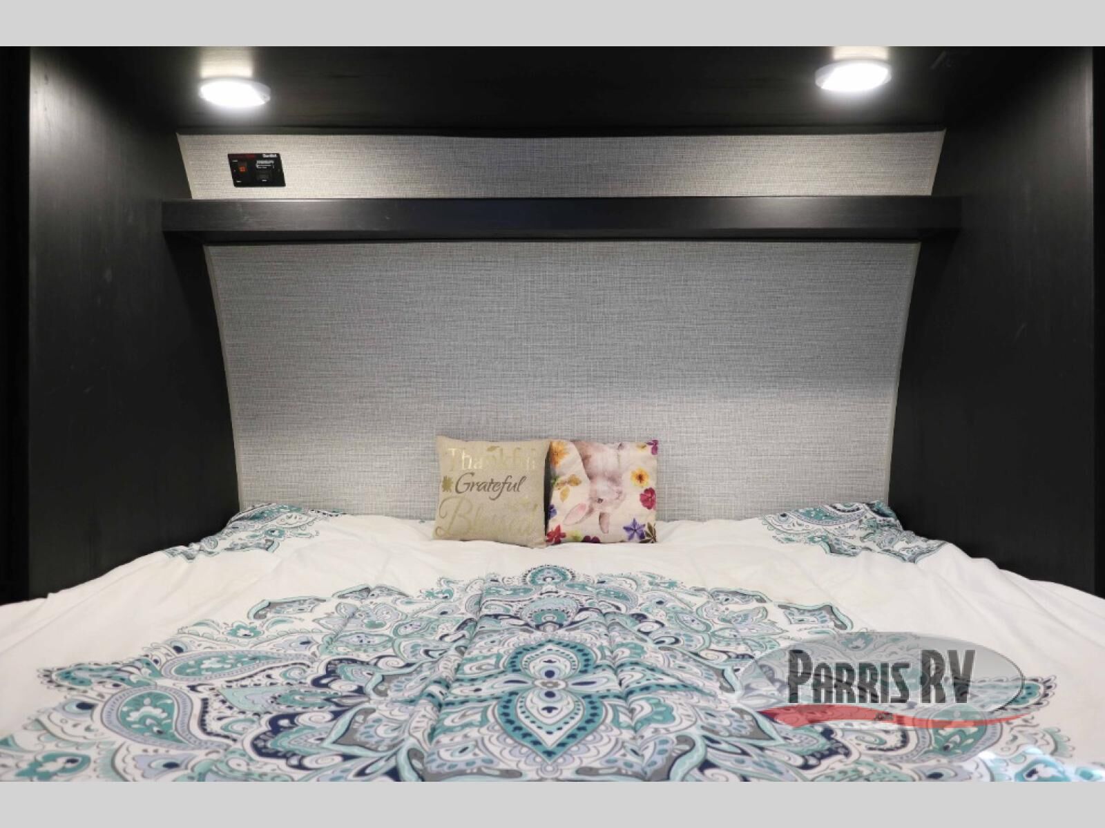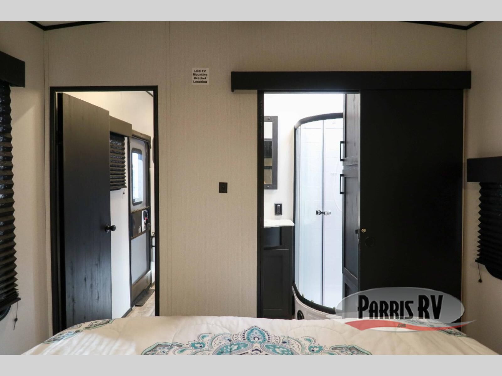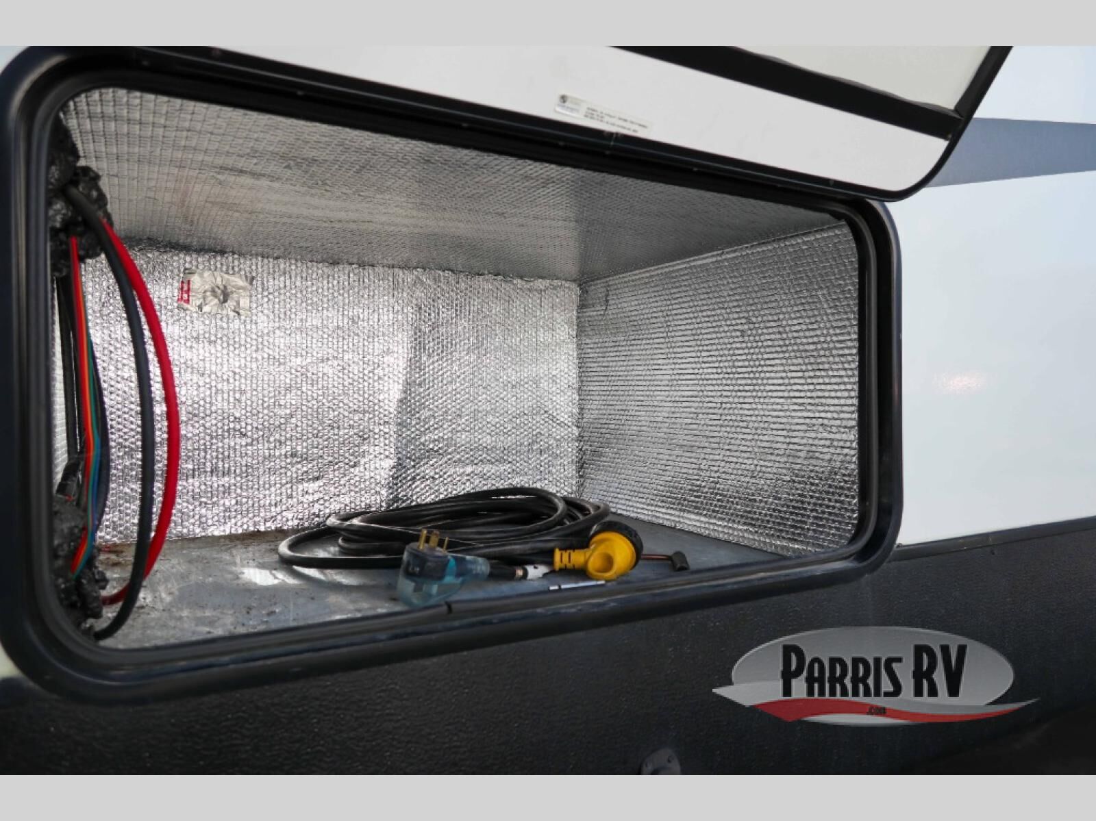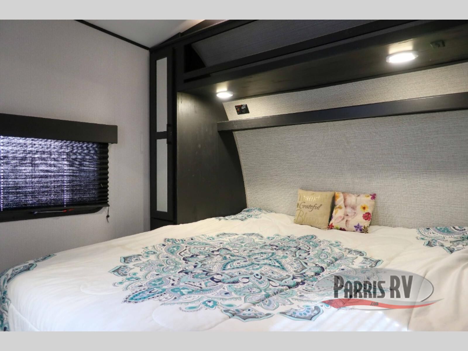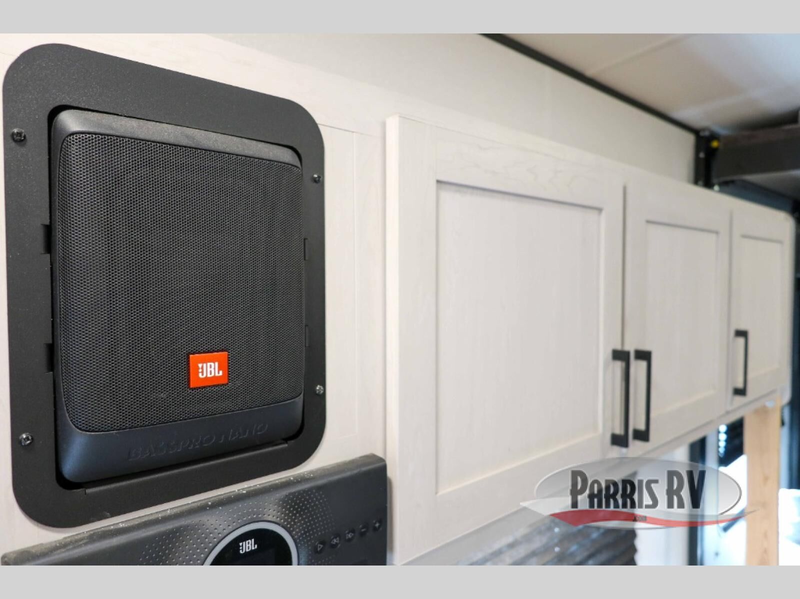 This Fuel toy hauler has all of the comfort and convenience you need! There is a front master suite with a king-size bed and a private entrance into the dual-entry bathroom. The kitchen has an 8-cubic foot refrigerator for storing any items that need to be chilled, and the three-burner range is an excellent tool for turning those items into something delicious to eat. You can sit back and relax in one of the lounge chairs, or you can sit at the opposing sofas with dinette below the power queen bunk.