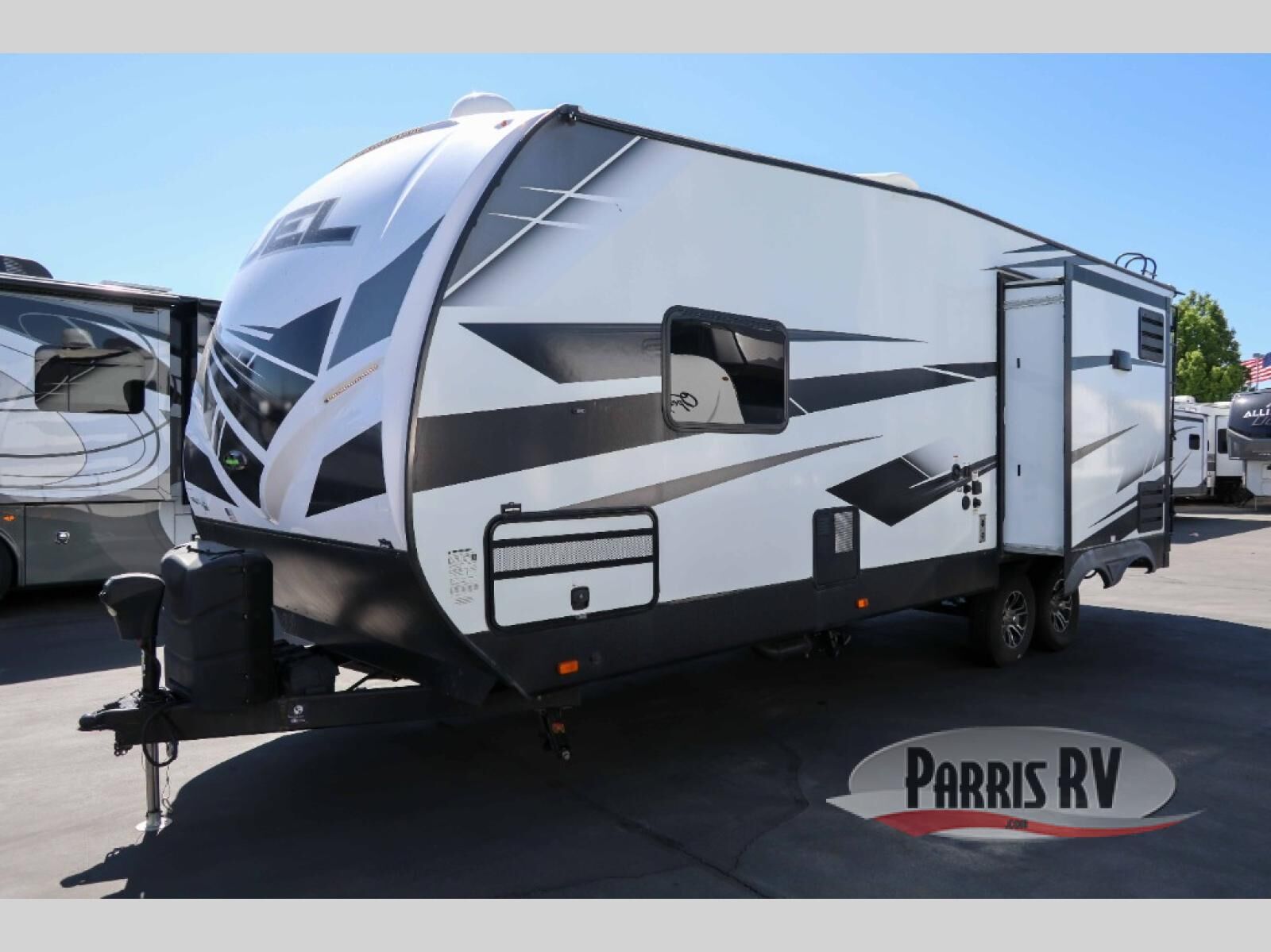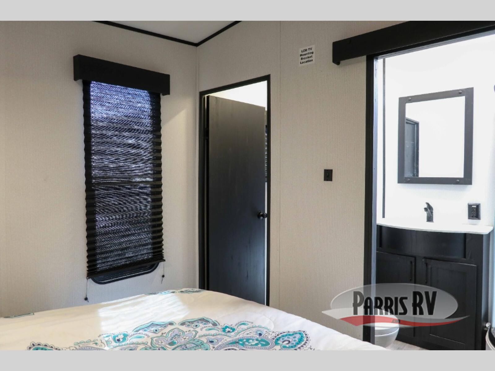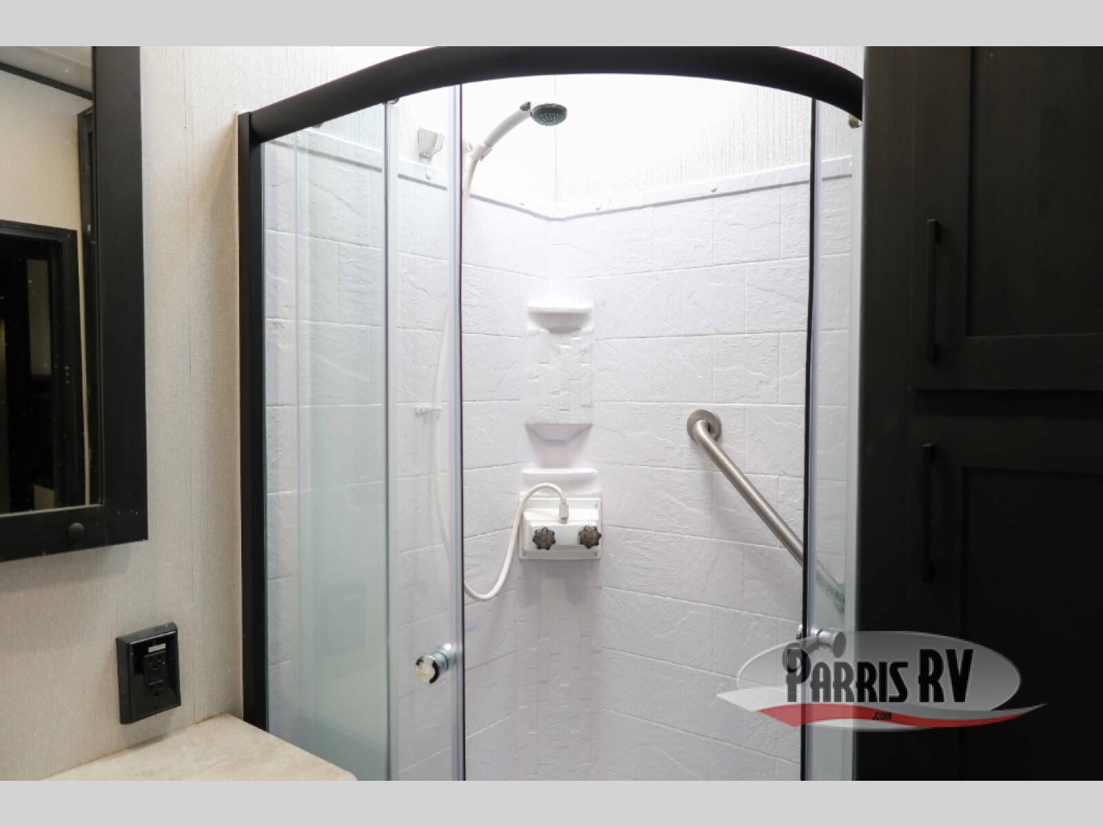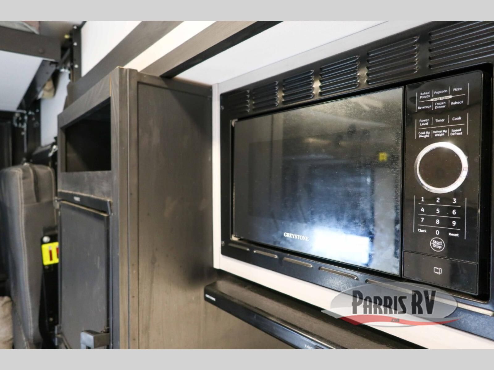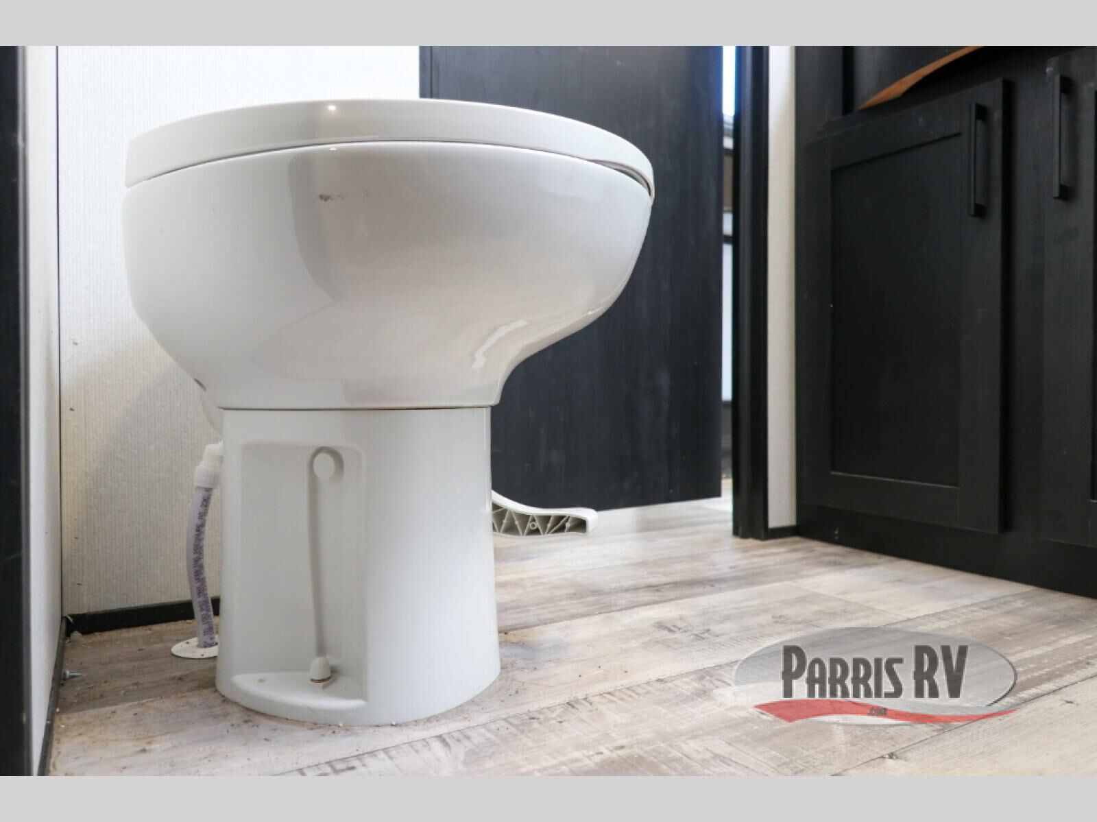 This Fuel toy hauler has all of the comfort and convenience you need! There is a front master suite with a king-size bed and a private entrance into the dual-entry bathroom. The kitchen has an 8-cubic foot refrigerator for storing any items that need to be chilled, and the three-burner range is an excellent tool for turning those items into something delicious to eat. You can sit back and relax in one of the lounge chairs, or you can sit at the opposing sofas with dinette below the power queen bunk.