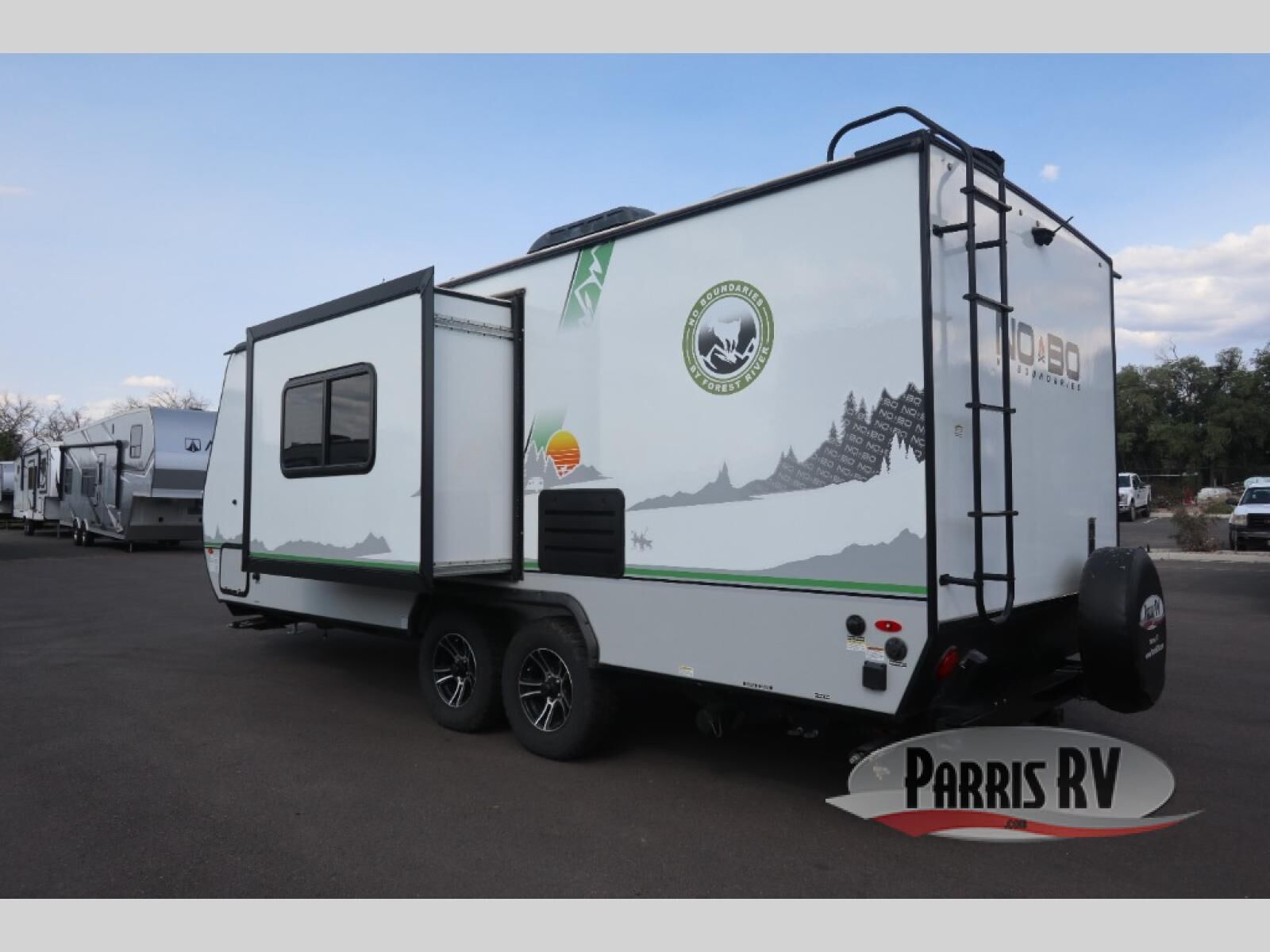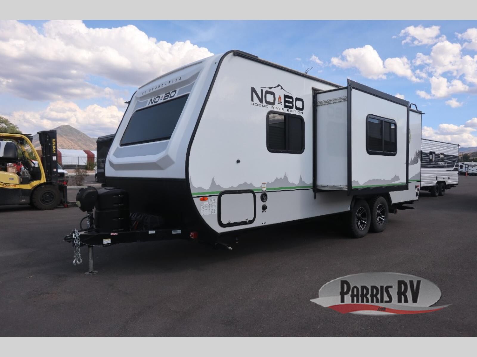 The No Boundaries travel trailers and toy haulers by Forest River are easy to tow by a four or six-cylinder vehicle because they range in weights from under 2,000 pounds up to 5,000 pounds. Depending on the model you choose, you will find independent torsion suspension with industry-leading cargo capacity, six-lug satin black aluminum wheels and All-Terrain tires, frame-mounted walkable steel fenders, a laminated Azdel exterior, a Cold Weather package, and a fully walkable 500-LB roof with PVC roofing membrane. The interior offers an exclusive central vacuum system plus much more! You will find a NOBO in a 10 Series, 16 Series or a 19 Series to fit your extreme lifestyle, so make your selection today!