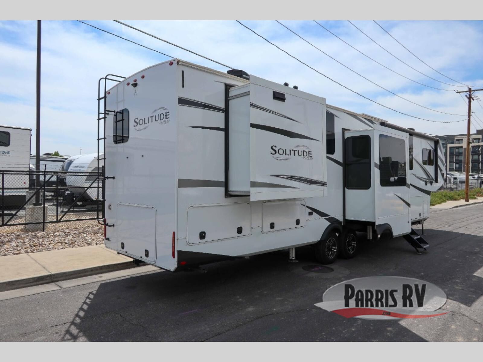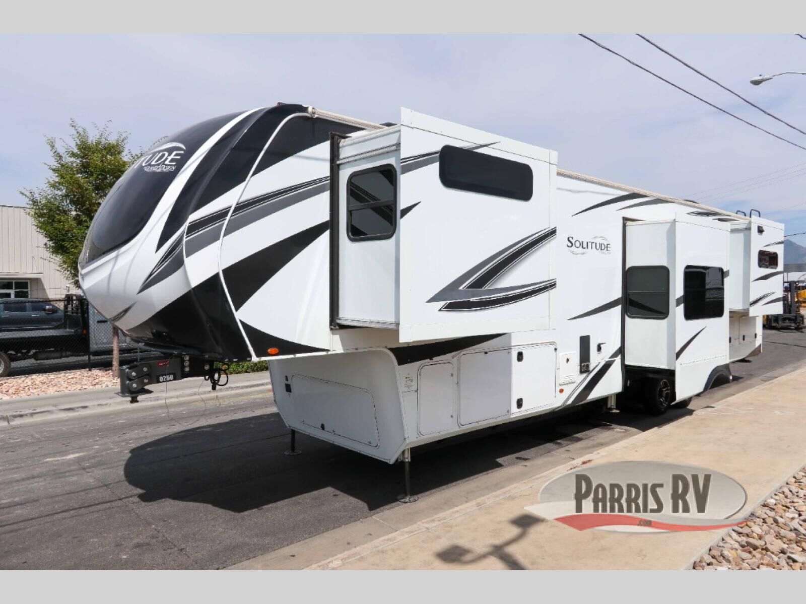 Each Solitude fifth wheel by Grand Design features a 101" wide-body construction, heavy duty 7,000 lb. axles, frameless tinted windows, and high-gloss gel coat sidewalls. You can camp year around thanks to the Weather-Tek Package that includes a 35K BTU high-capacity furnace, an all-in-one enclosed and heated utility center, and a fully enclosed underbelly with heated tanks and storage. Inside, you'll love the premium roller shades, hardwood cabinet doors, solid surface countertops and sinks, plus residential finishes throughout to make you truly feel at home. Each model also includes a MORryde CRE3000 suspension system, self adjusting brakes, and a MORryde pin box that will provide smooth towing from home to campground. Affordable luxury is possible with the Solitude fifth wheels; choose yours today!