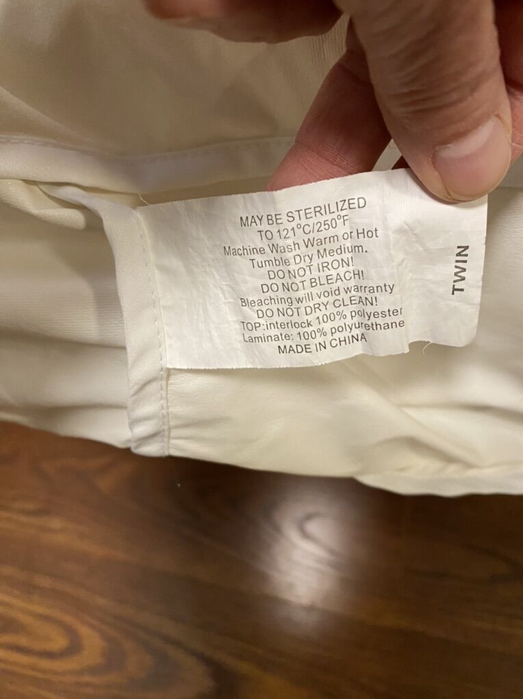 Twin size. Covers entire mattress. Water resistant. Good condition. Pet and smoke free home. $10.