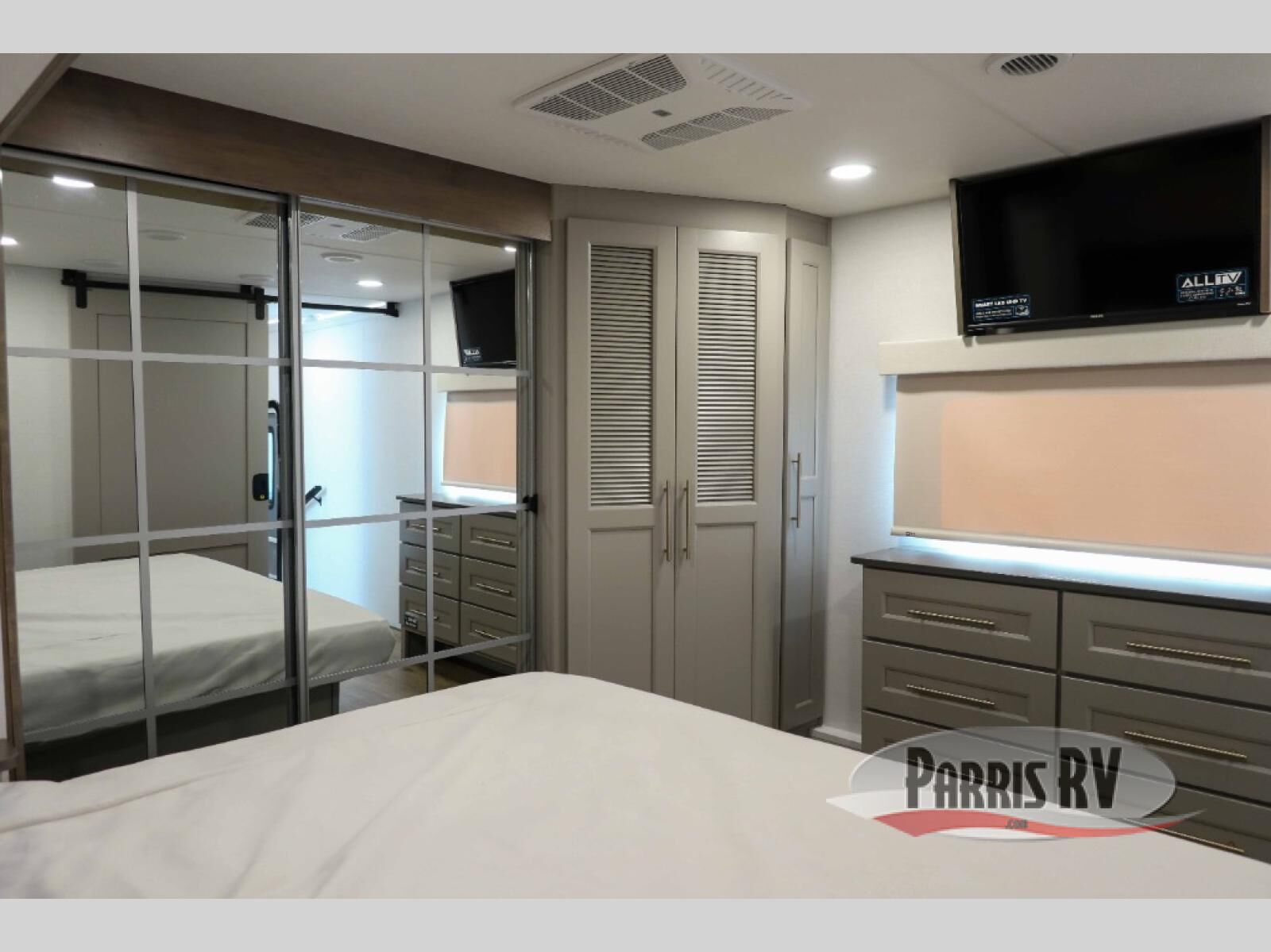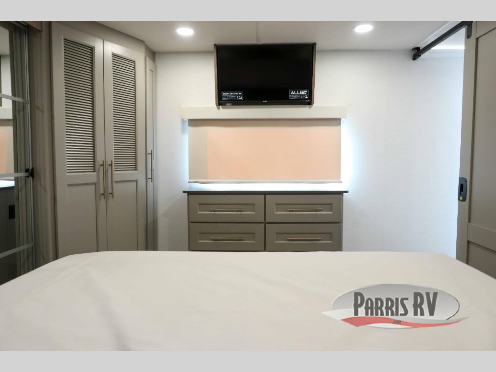 The Paradigm fifth wheels by Alliance RV are functional, high-quality, and luxurious for an unforgettable camping experience. There are three A/C units and a 40K BTU furnace to keep you comfortable year around, and you'll appreciate additional convenient amenities, like the all-in-one enclosed/heated utility center and the color coded and numbered wiring. A Helux Series coil spring pin box comes standard for hassle-free towing, along with Curt 8,000 lb. axles. You'll love the kitchen with its LG solid surface countertops and Lusso range, plus there is LED motion lighting in the pantry and a Maxx fan with a rain sensor to keep everything fresh when making dinner. Each model also includes an HD Smart TV in the living room and bedroom. And of course there are a variety of options you can choose from to further customize your fifth wheel; dual pane windows, Super Solar Plus, slide out awning toppers, and generator prep or a generator to name a few!