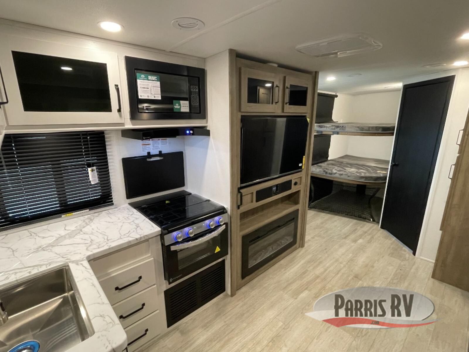 Each Puma Tracks travel trailer by Forest River is constructed with a fully enclosed/heated underbelly for added protection against the elements, plus a fully laminated roof and rear wall for durability. The slam latch baggage doors with magnets will make it easier than ever to pack up your camp gear, and the power awning with LED lights will provide shade during the day and inviting ambiance at night. Head inside to enjoy the roller shades, smoked glass kitchen cabinet doors, stainless-steel sink, and LED lights to keep your space well lit. Some of the available options include a bedroom A/C, a Wi-Fi booster, heated holding tanks, and more!