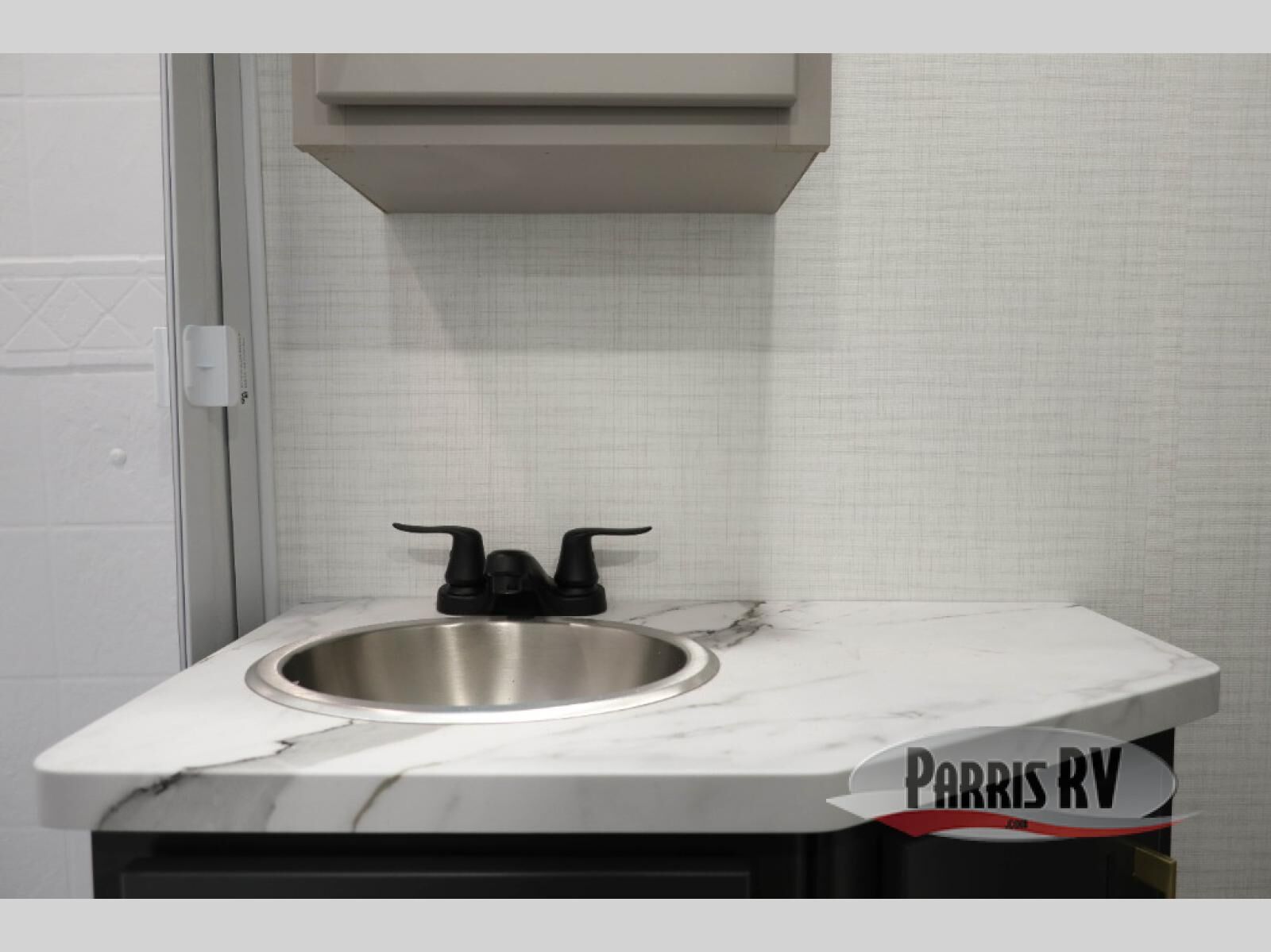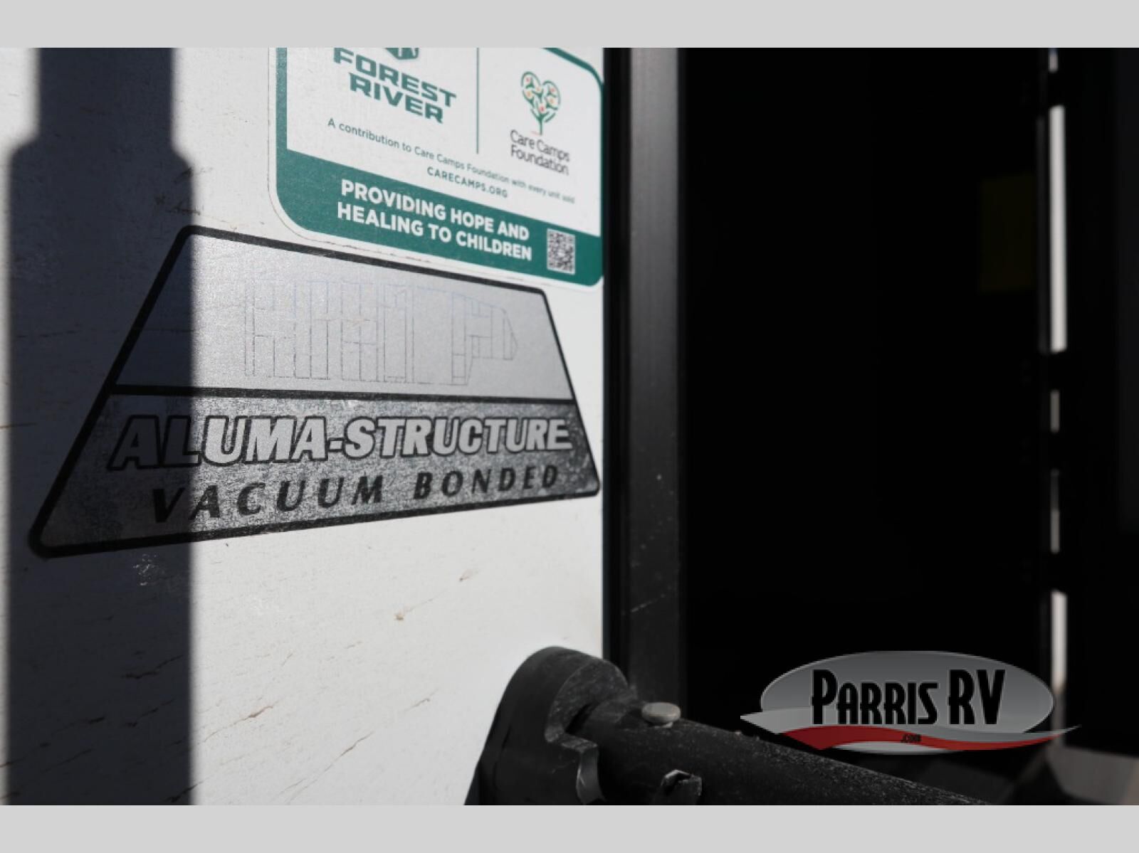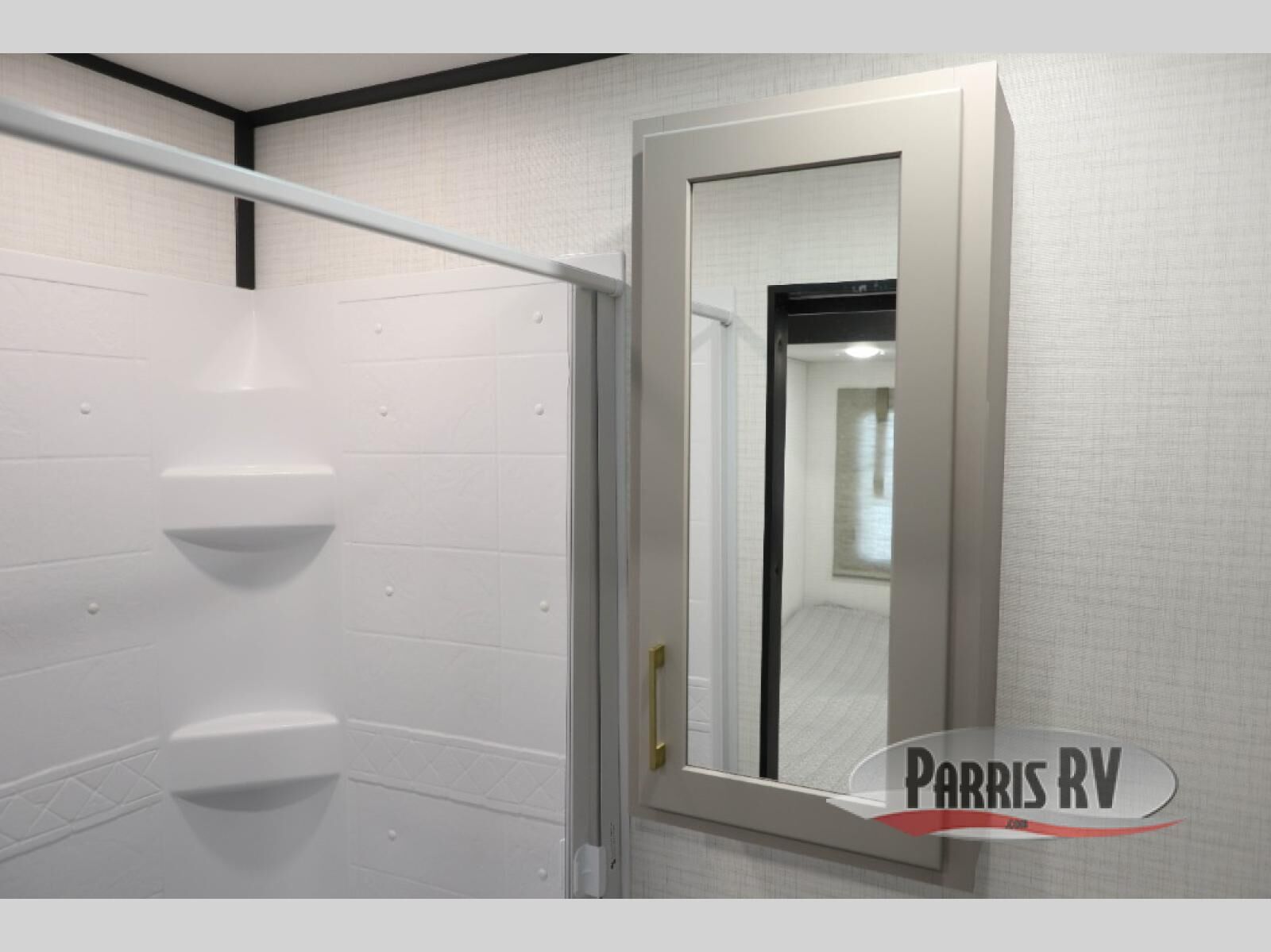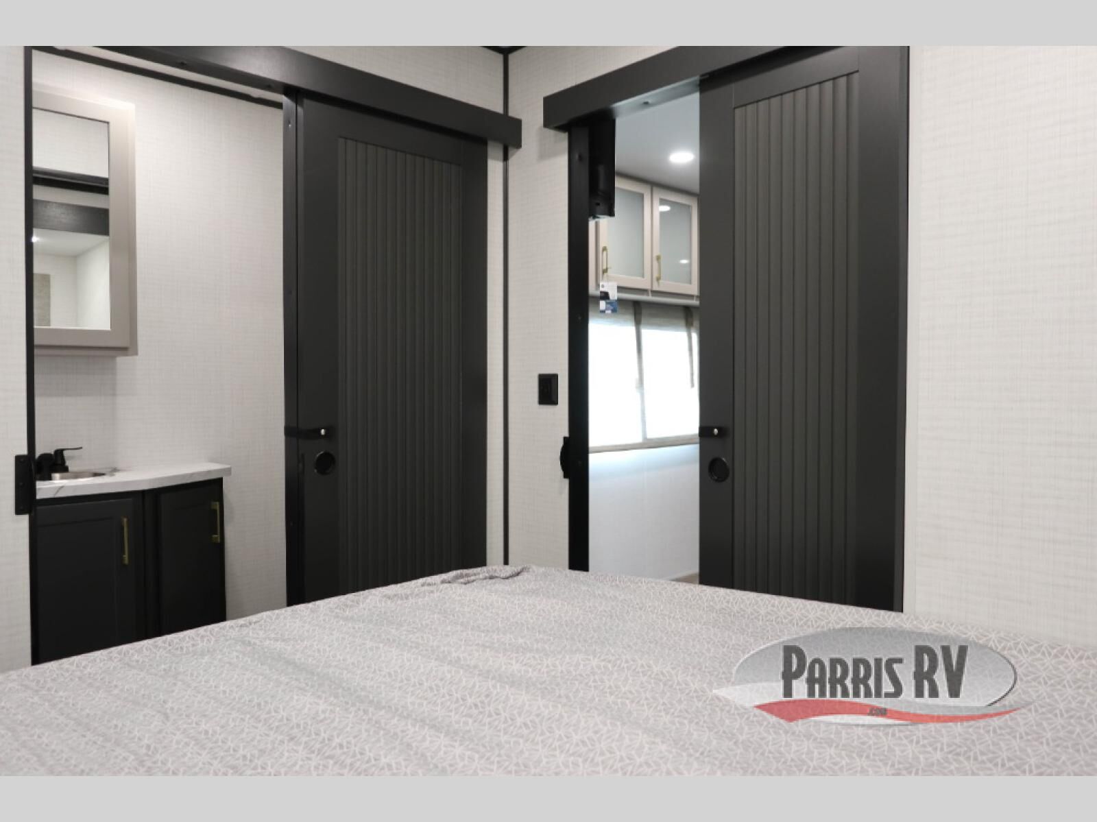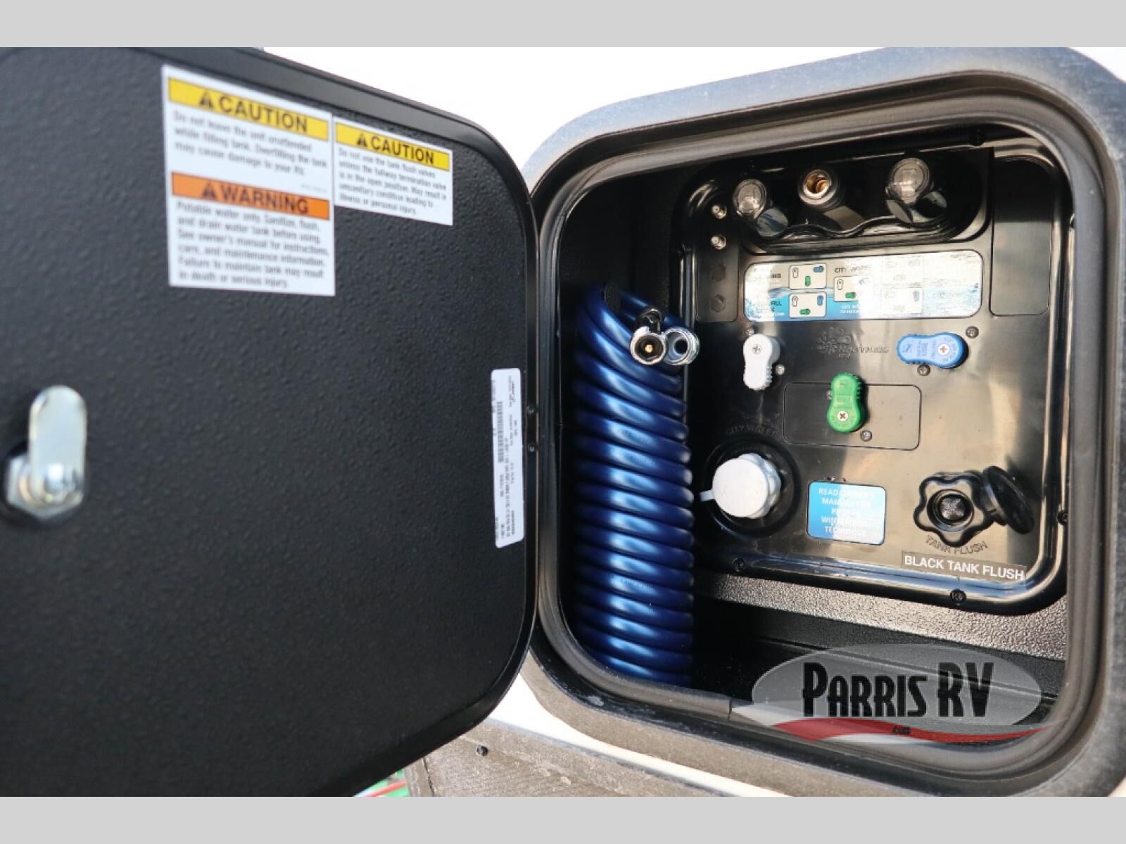 Bring your favorite off-road toys with you in this toy hauler to your favorite camping spots! The 14' garage includes opposing sofa sleepers with a removable dinette table to create a queen bed sleeping area, plus a Euro bed above for your guests to sleep on. The front of this toy hauler is shared with the master bedroom and dual entry bath you are sure to love, pus there is a dresser with a mirror to get ready each day. The exterior has many features you will love like the docking station, outside TV prep area, 15' power awning, and the outside storage areas!