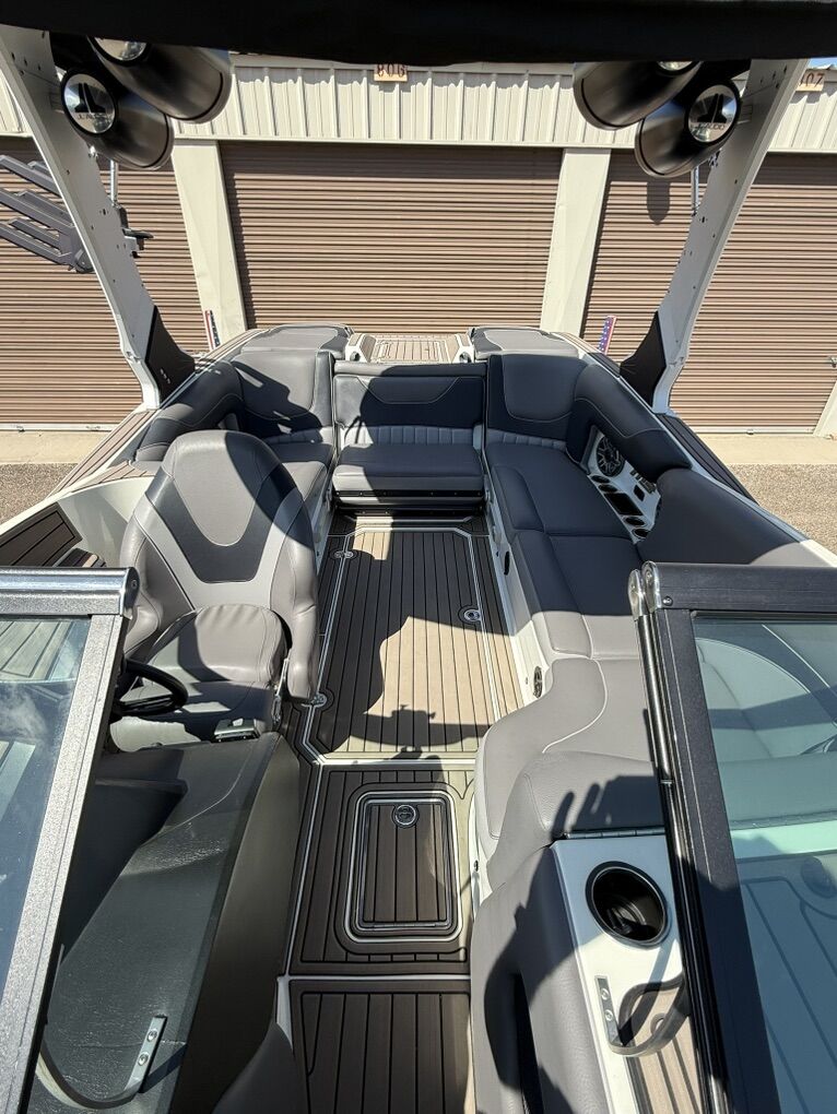 2022 MB Sports F22 Tomcat alpha. 225 hours. Boat is in great shape inside and out. Full service done on boat midway through the summer. Boat features top of the line stereo system with 8” interior speakers, 12” sub and 4 jl tower speakers, Raptor 440 motor, PTM clamping board racks, RBG interior lighting, transom lights and dock lights, also has power tower.