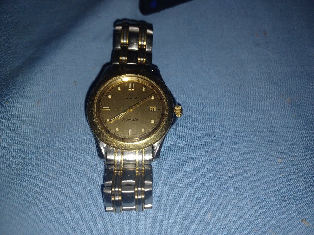 Omega Seamaster 120m, gold face, everything original, it works perfect, took it to the jeweler for battery change, he said it goes for $4000 new. I only answer phone calls, don't bother texting. I am getting rid of my treasurs since I am too old to use them anymore.