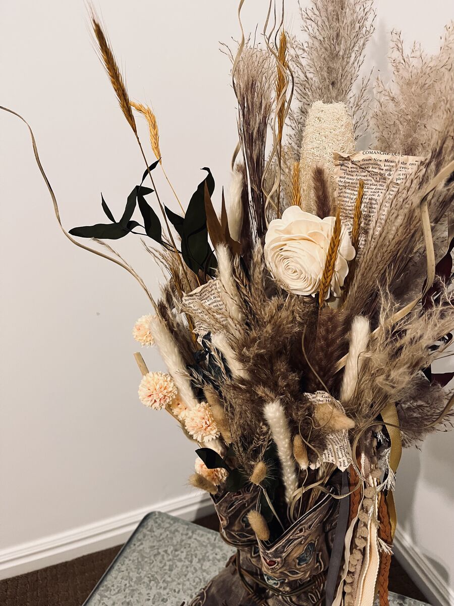 VenmoMy favorite thing to do is to escape the busy world and be in my craft room and design someone's very own unique faux arrangement. My passion is designing unique arrangements to be displayed in your home, workplace and/or weddings or family reunions. My prices vary in sizes and designs. I can do anything from handheld arrangements to large arrangements in vases. I also have vowgirl boots in stock for a more western look. Get in contact with me to start designing your cery own unique arrangement.