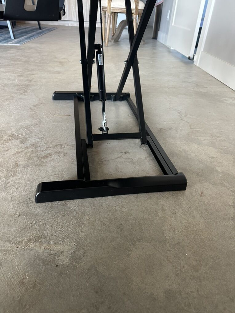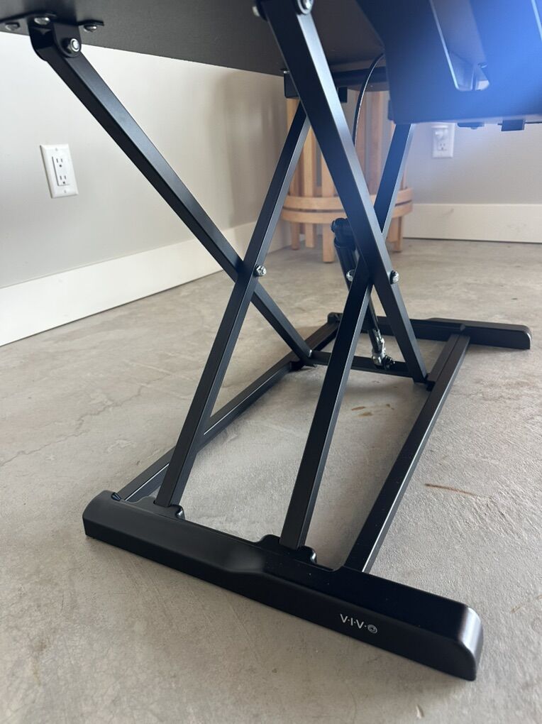 Purchased from Amazon (Vivo) 2 years ago. Amazon description: Provides on-demand standing throughout the day for the freedom to get out of your chair and relieve muscle tension, reduce stress, and increase productivity --Patented--