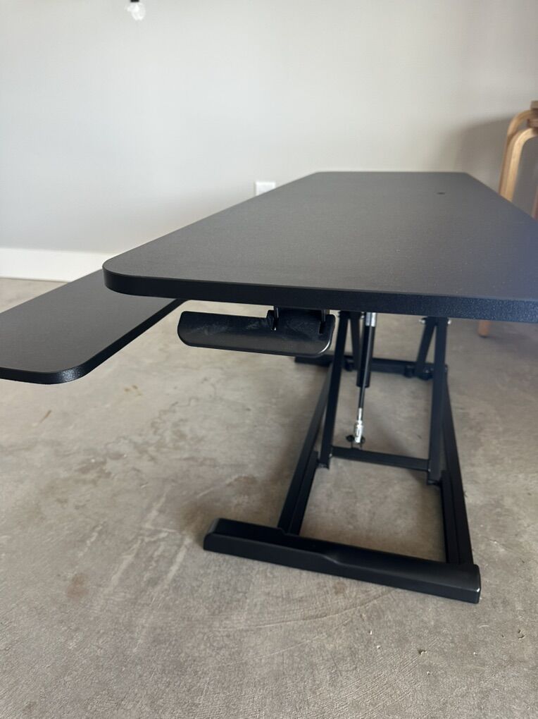 Lift design elevates straight upwards Very Minimal Assembly: This riser is almost ready to go right out of the box! Place on your existing desk, attach the keyboard tray, and start organizing your workstation