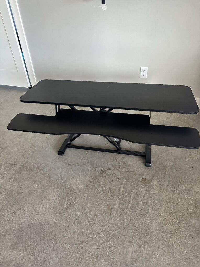 Spacious 48” Surface: The large top surface measures 47.6” x 15.7”, providing plenty of room for dual monitor and laptop setups. The 47.6” x 11.8” (10.2” in center) keyboard tray raises in sync with the top surface to create a comfortable workstation