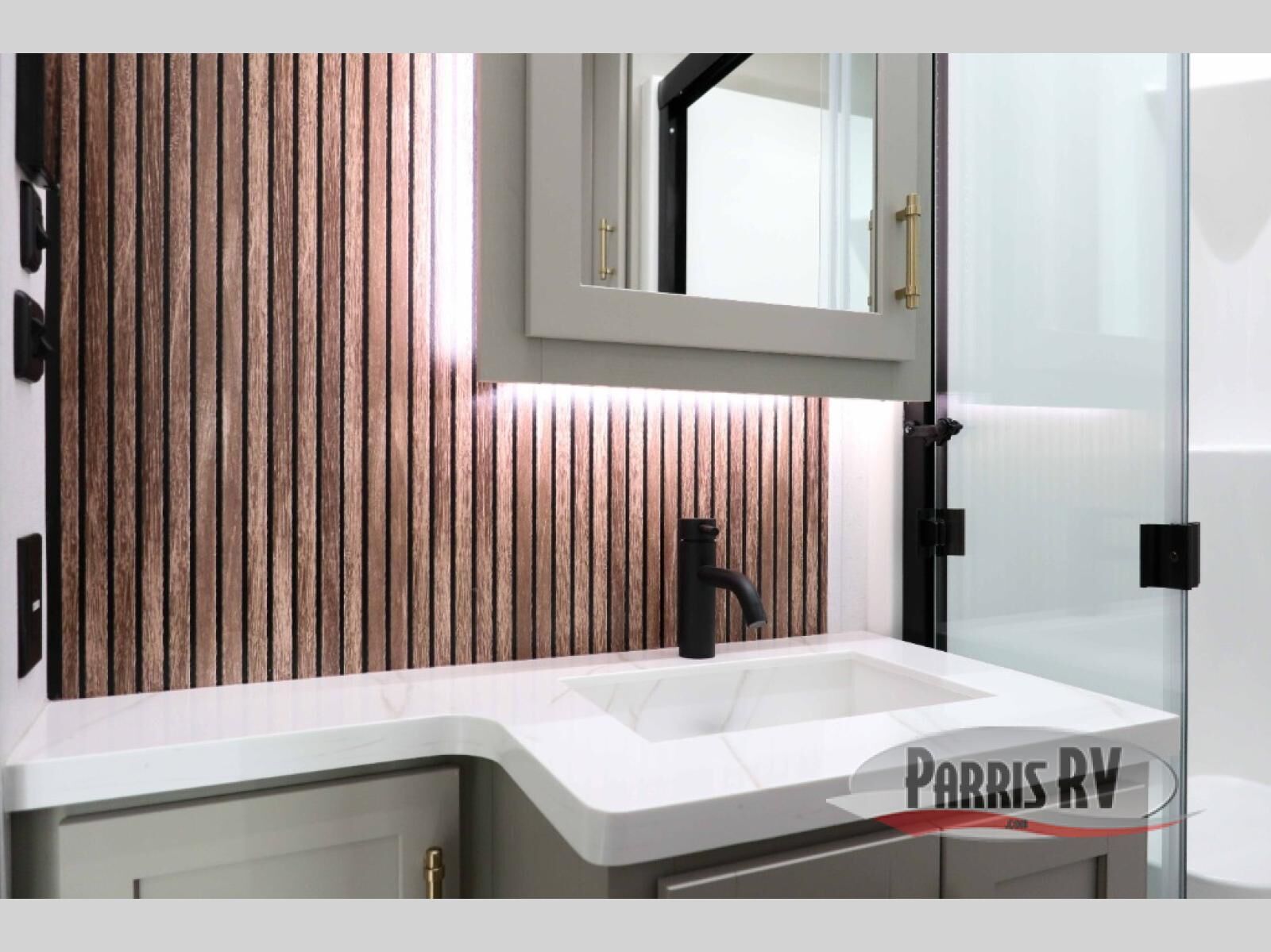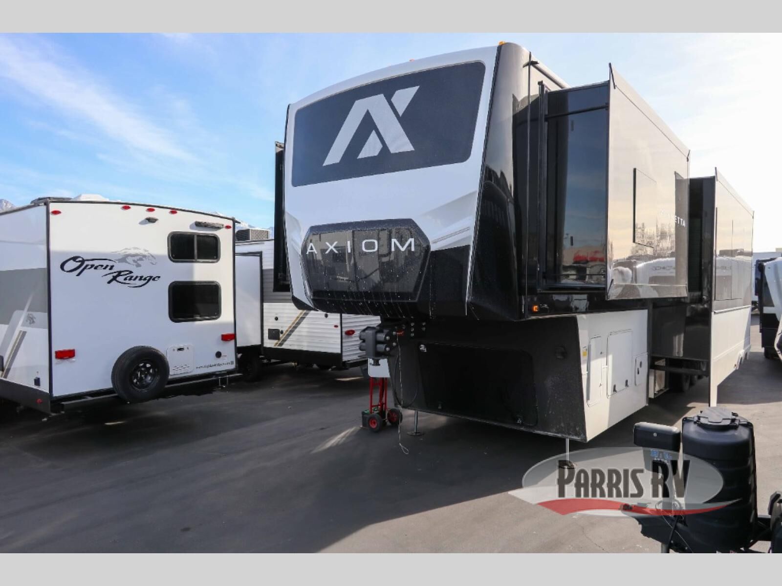 With any Vendetta toy hauler fifth wheel by Axiom RV, you will find innovation and comfort at every turn! The Curt Touring Coil Suspension System with a Curt pin box will provide smooth towing from home to campground, and the deluxe graphics with marine grade fiberglass exterior is sure to be eye-catching. These features are found within the Lux Package, along with a Pathfinder lighting system with integrated turn signals, Lippert solid step triple entry steps, and a low alloy steel construction that is stronger than the competition! The Essential Package features a Lippert 6-point hydraulic leveling system to have you set up at camp in no-time, and the 200-watt solar panel with a 2000-watt inverter provides off-grid capabilities. Solid surface kitchen countertops are included with the AX Comfort Package, along with a Fogotti on-demand water heater, a freedom pass-through storage, Starlink internet prep, and hardwood cabinet doors with slow close hidden hinges.