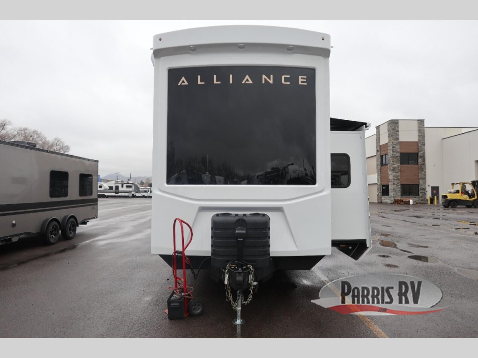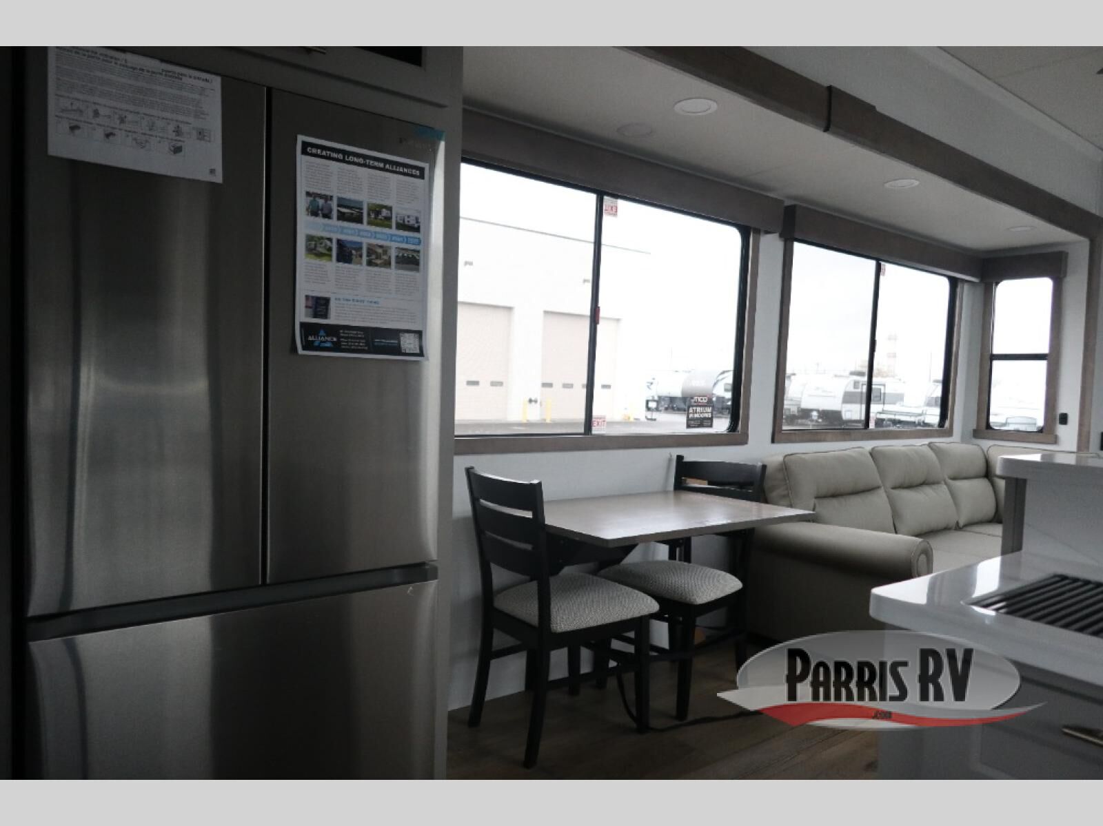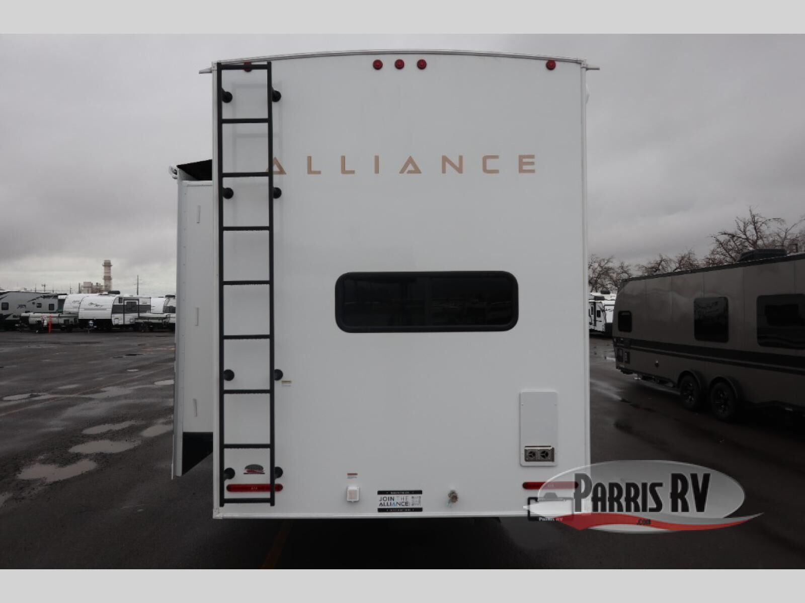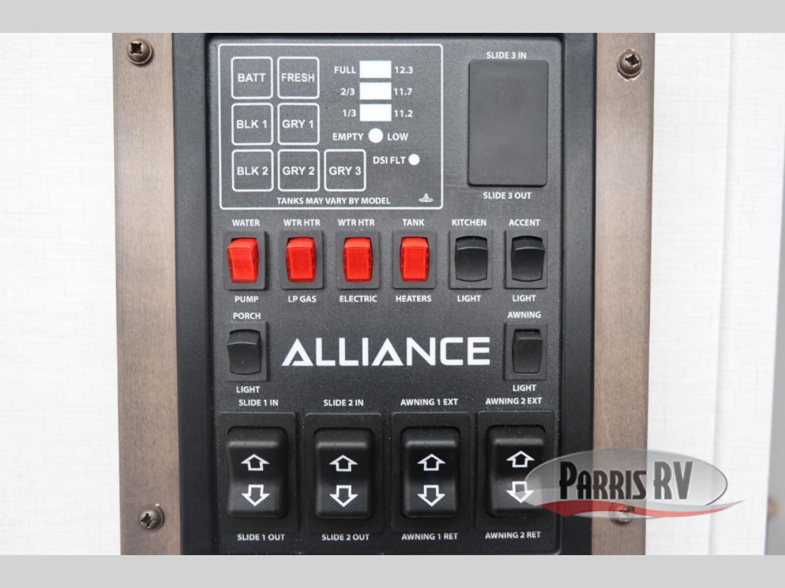 With any Benchmark destination trailer by Alliance RV, you will enjoy luxury features at every turn! The high gloss fiberglass exterior is ultra sleek, and the Azdel composite fiberglass sidewalls add durability so you can camp for years to come. You'll also find a residential exterior garden hose connection outside, along with a powder coated aluminum rear ladder, and an auxiliary LP tank hook up if you want to bring your grill along. Head inside to find hardwood cabinetry, solid surface countertops throughout, oversized windows in all rooms, and MCD roller shades throughout. The 45,000 BTU A/C and 60,000 BTU furnace will keep you comfortable year around, and there is a stackable washer and dryer to make full-time RV living easier than ever!
