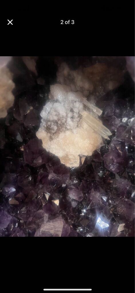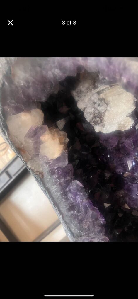 VenmoBeautiful deep purple Brazilian Amethyst piece with quartz specimen for sale. Very heavy weighing at 115 lbs, standing almost 2 ft tall (approx 22 inches).