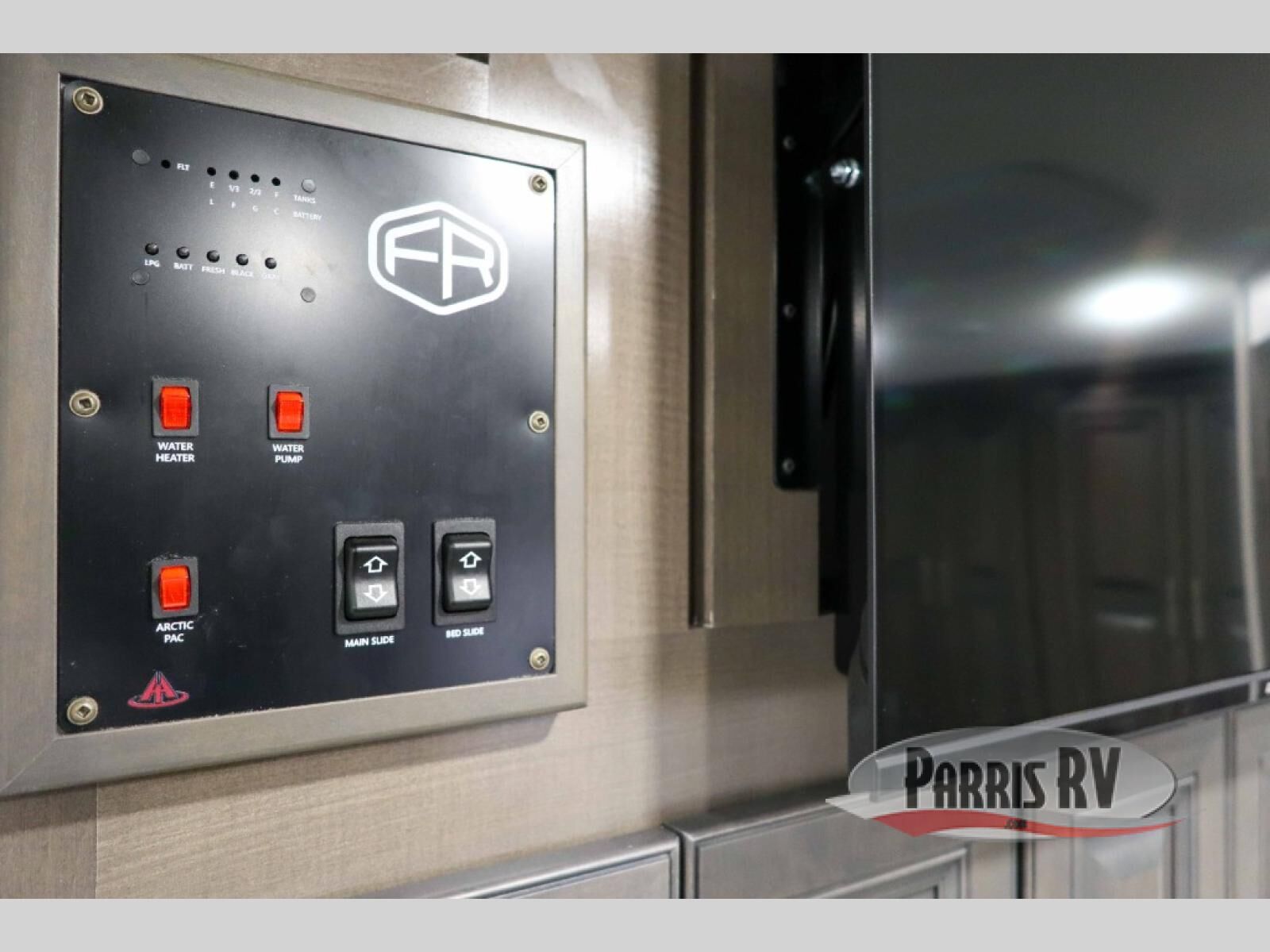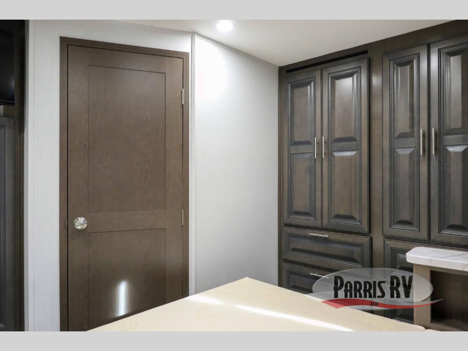 This motorhome is more than just a couple's coach; It's a home on wheels with room for you and even some guests to embark on great adventures. The hide-a-bed sofa and Dream Dinette slide not only offer comfortable places to eat meals and relax but also transform into extra sleeping spaces. You will have your own privacy in the rear master bedroom with a queen bed slide and even a fireplace over the 32" LED Smart TV to enjoy movies in the warmth of this room on those chilly nights. The master bathroom gives you all the comfort you need just a few steps from your bed so you can take a shower and easily get changed. The chef can keep everyone's bellies full of delicious meals with the three-burner cooktop, the stainless steel residential refrigerator, and the pantry with shelves, plus there is a stainless steel microwave for popcorn on movie night!