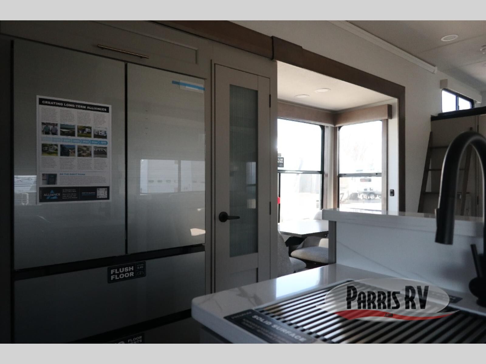 The Paradigm fifth wheels by Alliance RV are functional, high-quality, and luxurious for an unforgettable camping experience. There are three A/C units and a 40K BTU furnace to keep you comfortable year around, and you'll appreciate additional convenient amenities, like the all-in-one enclosed/heated utility center and the color coded and numbered wiring. A Helux Series coil spring pin box comes standard for hassle-free towing, along with Curt 8,000 lb. axles. You'll love the kitchen with its LG solid surface countertops and Lusso range, plus there is LED motion lighting in the pantry and a Maxx fan with a rain sensor to keep everything fresh when making dinner. Each model also includes an HD Smart TV in the living room and bedroom. And of course there are a variety of options you can choose from to further customize your fifth wheel; dual pane windows, Super Solar Plus, slide out awning toppers, and generator prep or a generator to name a few!