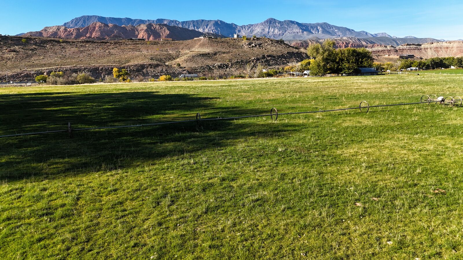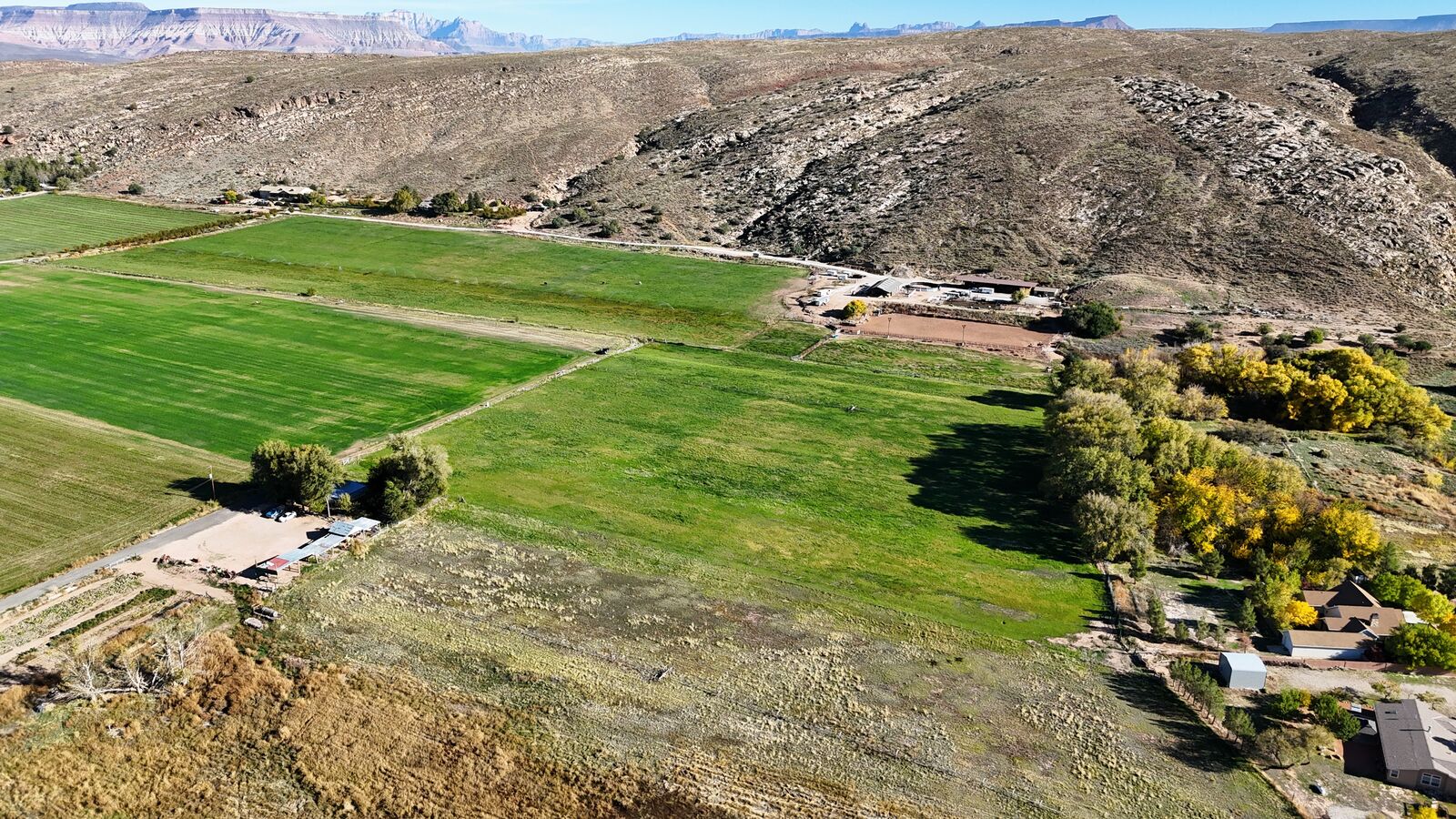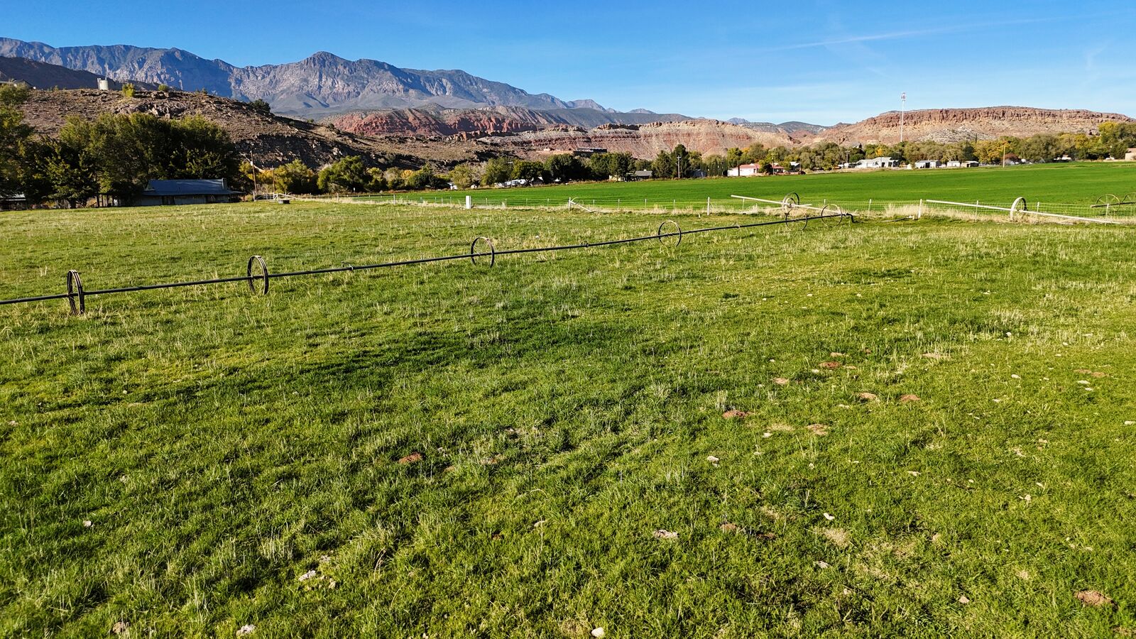 The terrain is primarily level, which may reduce grading needs depending on the intended use. Views from the property include surrounding red rock formations and open skies typical of southwest Utah. The soil quality reflects its agricultural past and may support continued farming, hobby agriculture, or landscaped residential uses where permitted.