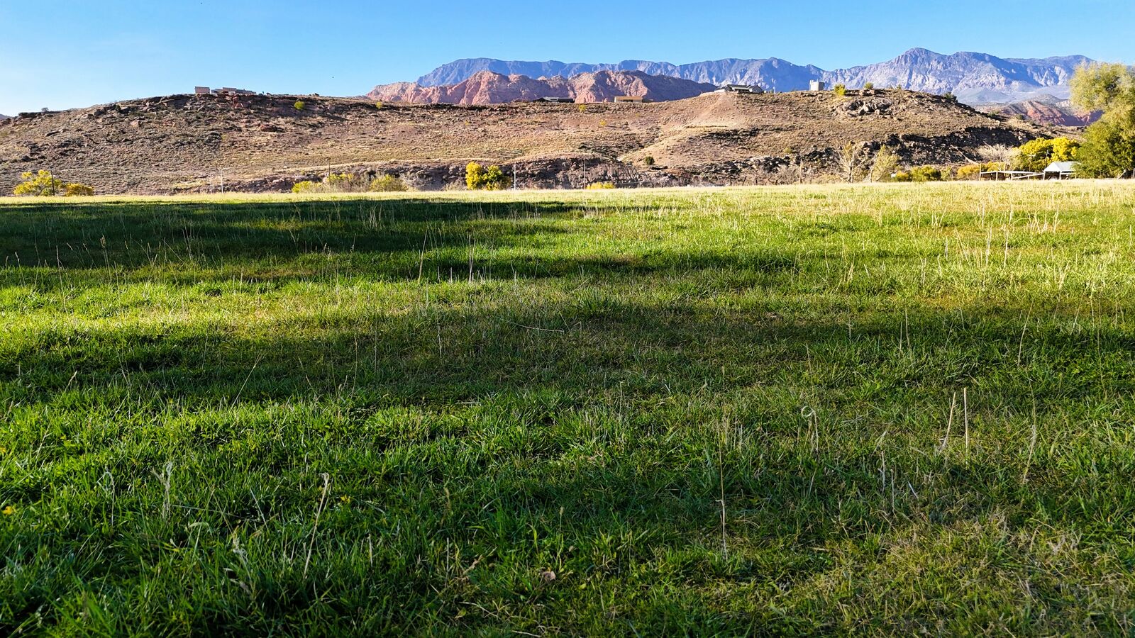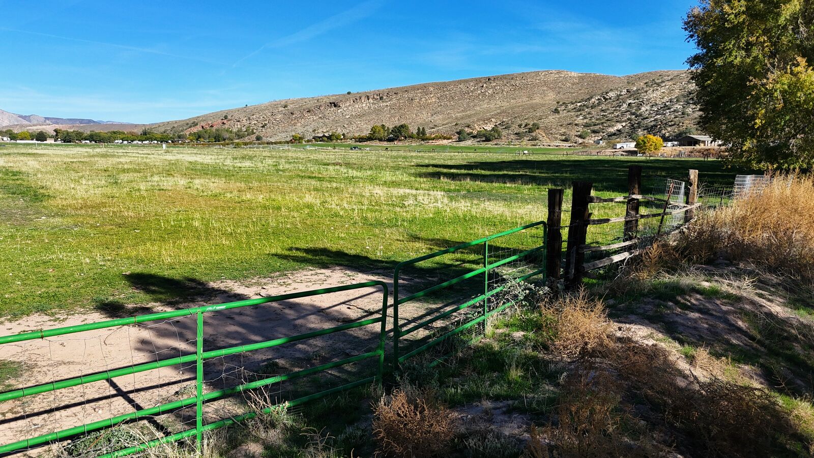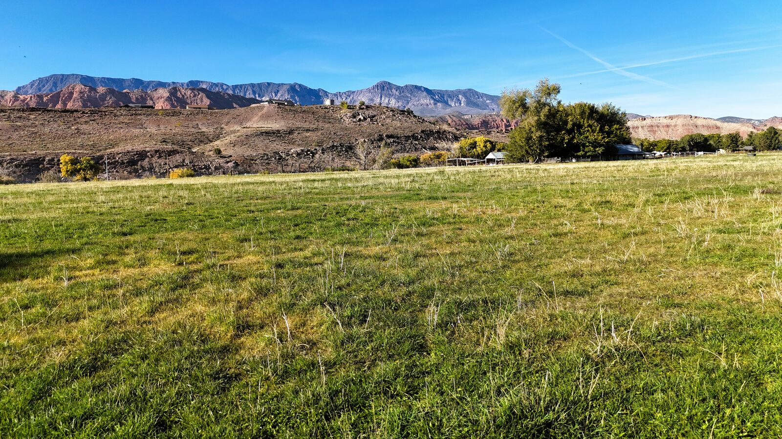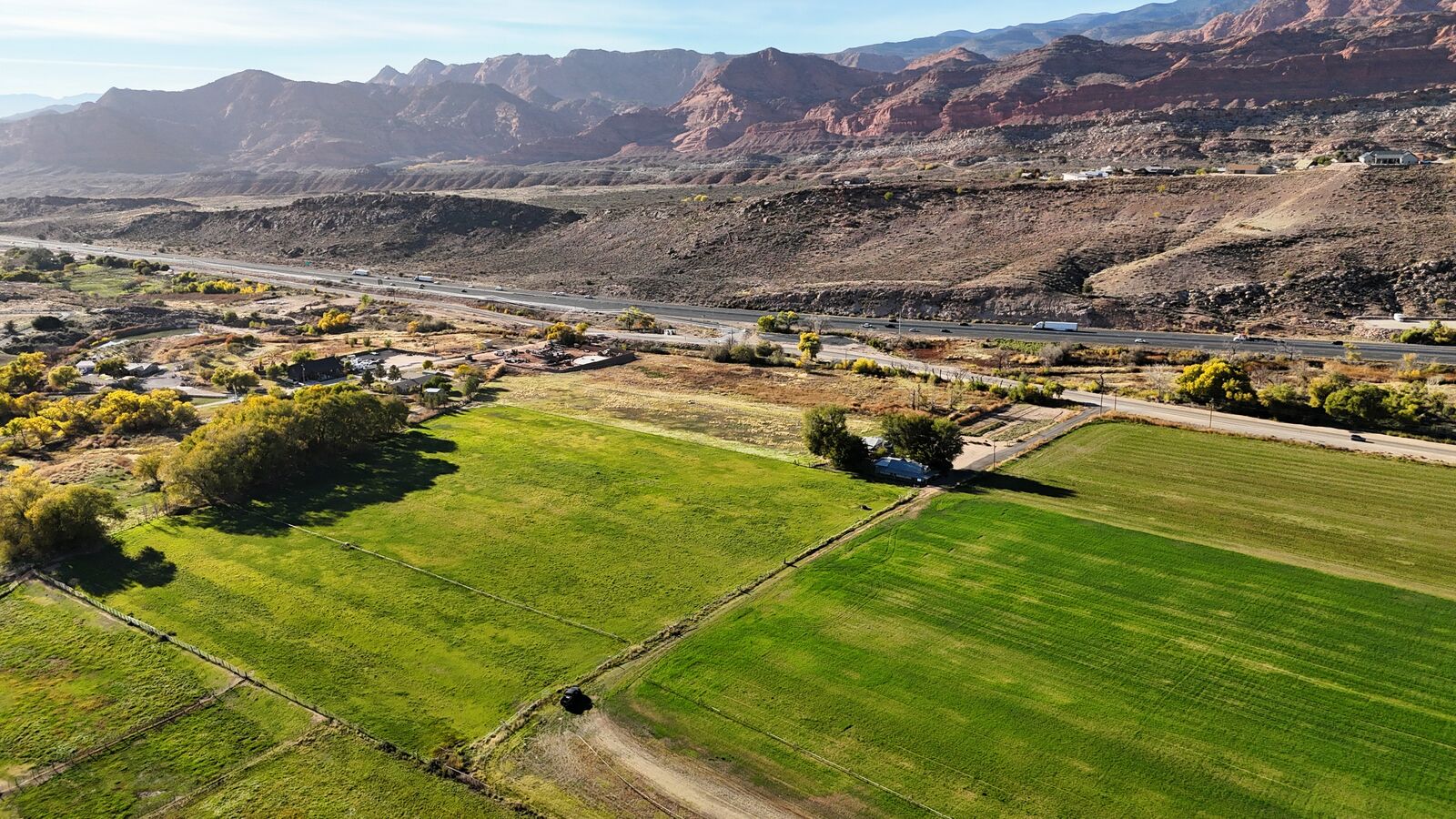 The terrain is primarily level, which may reduce grading needs depending on the intended use. Views from the property include surrounding red rock formations and open skies typical of southwest Utah. The soil quality reflects its agricultural past and may support continued farming, hobby agriculture, or landscaped residential uses where permitted.