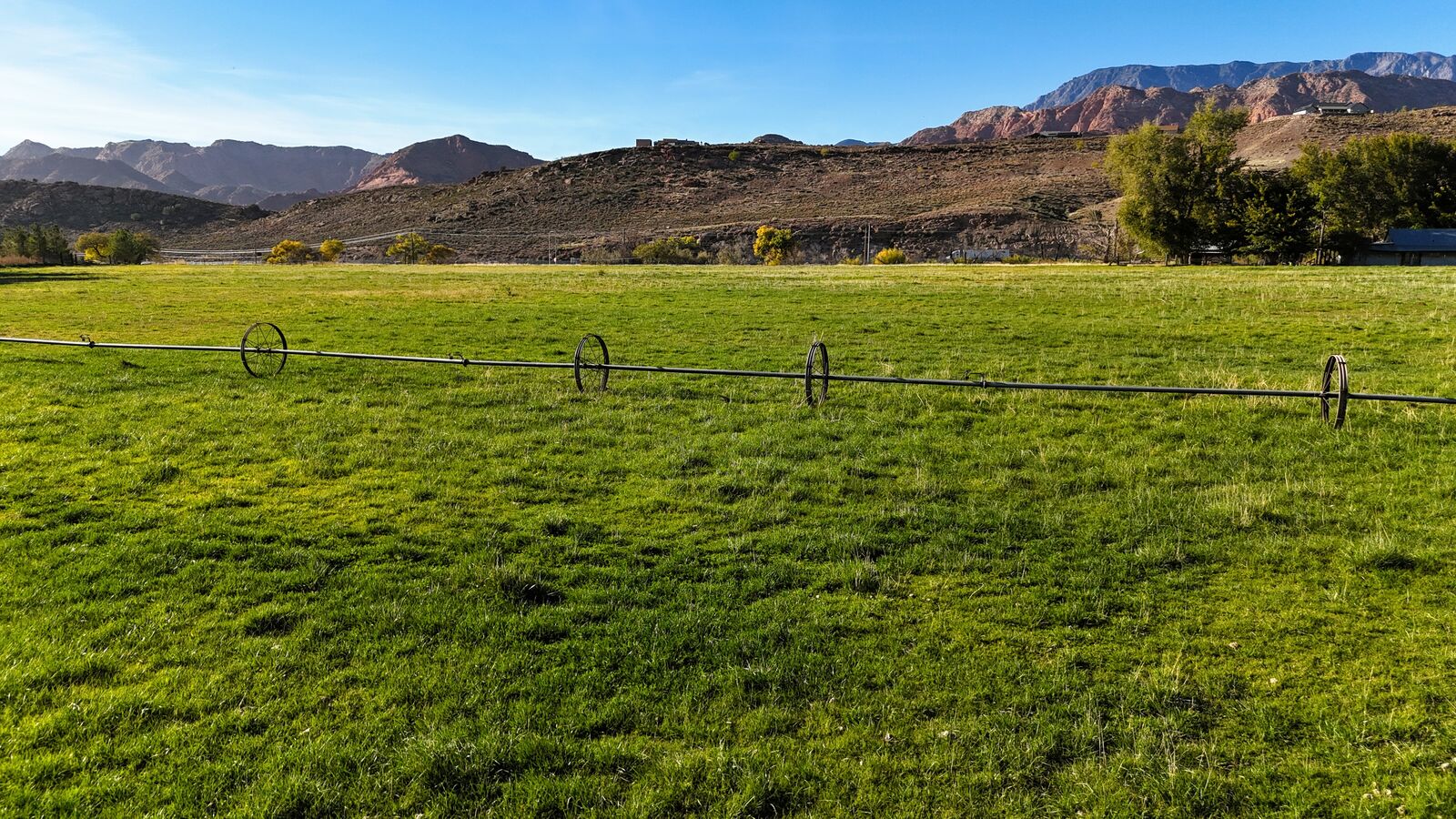 Wheel line sprinklers, additional water rights, or adjacent property may be negotiable, subject to a separate agreement. Buyers are encouraged to verify zoning, subdivision standards, utility connections, and allowable uses directly with the City of Leeds, the Leeds Domestic Water Users Association, and Washington County. This offering presents an opportunity to acquire a sizeable parcel within city limits with multiple potential future paths, depending on buyer objectives and approvals.