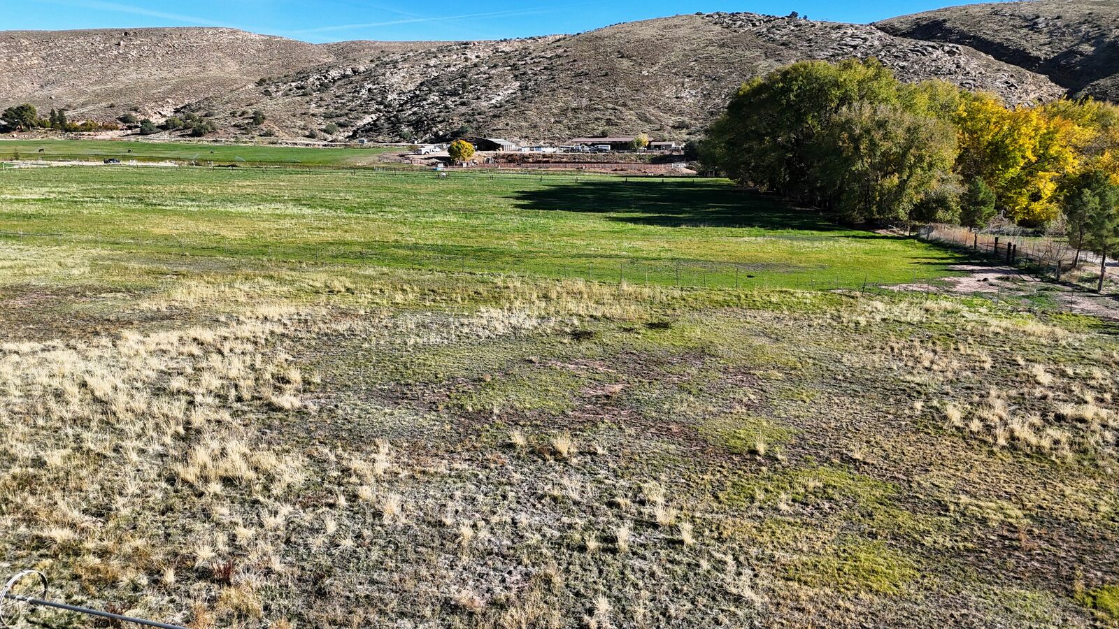 City water is available to the property, which supports both residential considerations, while senior priority private water shares support the agricultural production. Electrical power is located nearby and could be extended to future building sites. Sewer service is not available, and development would require individual septic systems. Some road improvements would also be necessary before subdivision or construction, and buyers should verify all requirements with the City of Leeds.