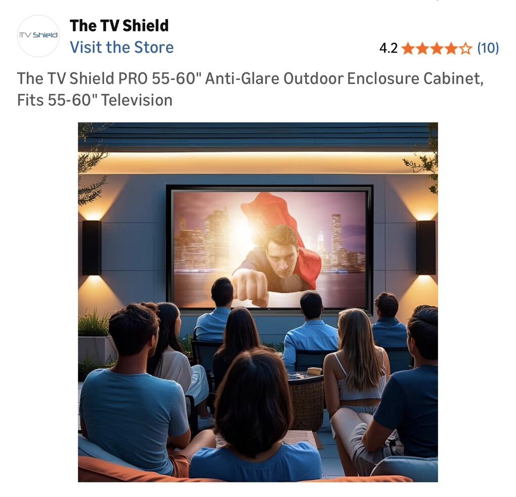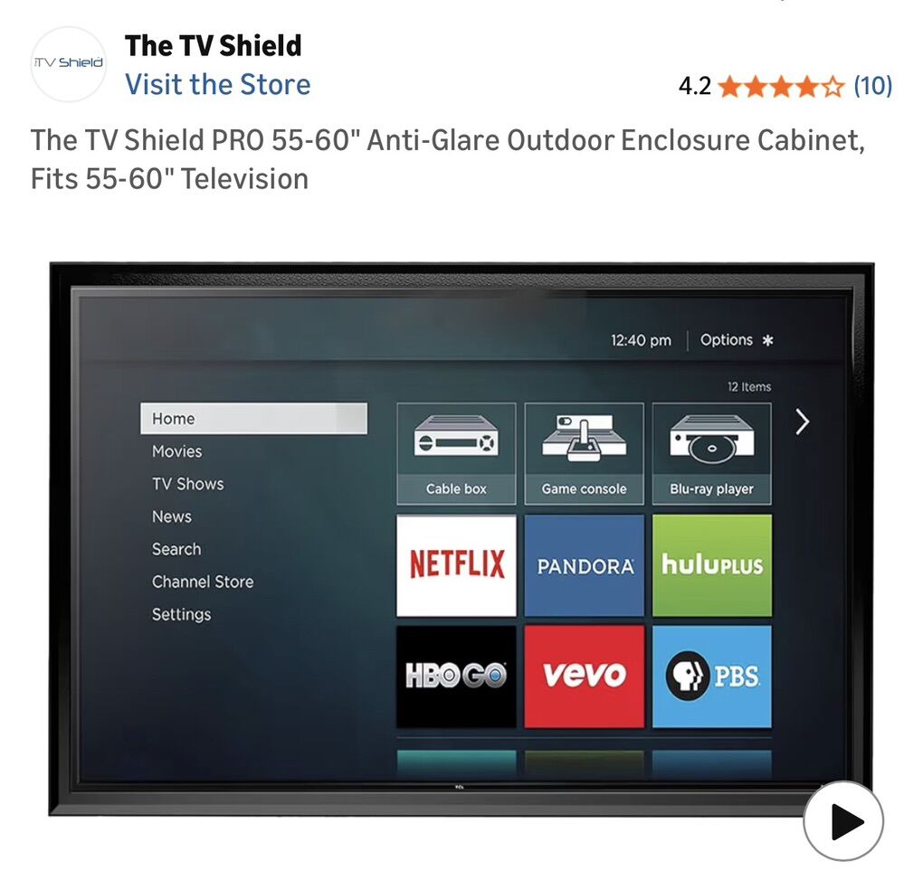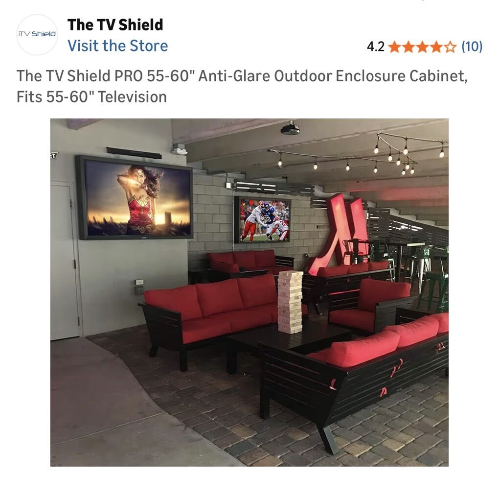 Description- Anti-glare, indoor/outdoor weatherproof, locking TV enclosure for 55-60” TVs. See photos for more product information and specifications.
