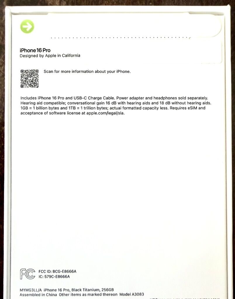 VenmoiPhone 16 Pro - 256GB, Black Titanium Brand New - Factory Unlocked