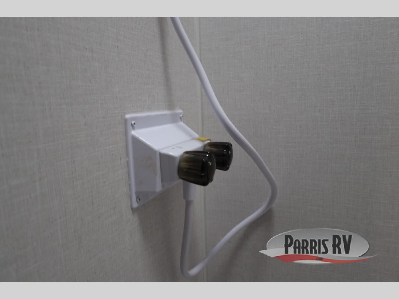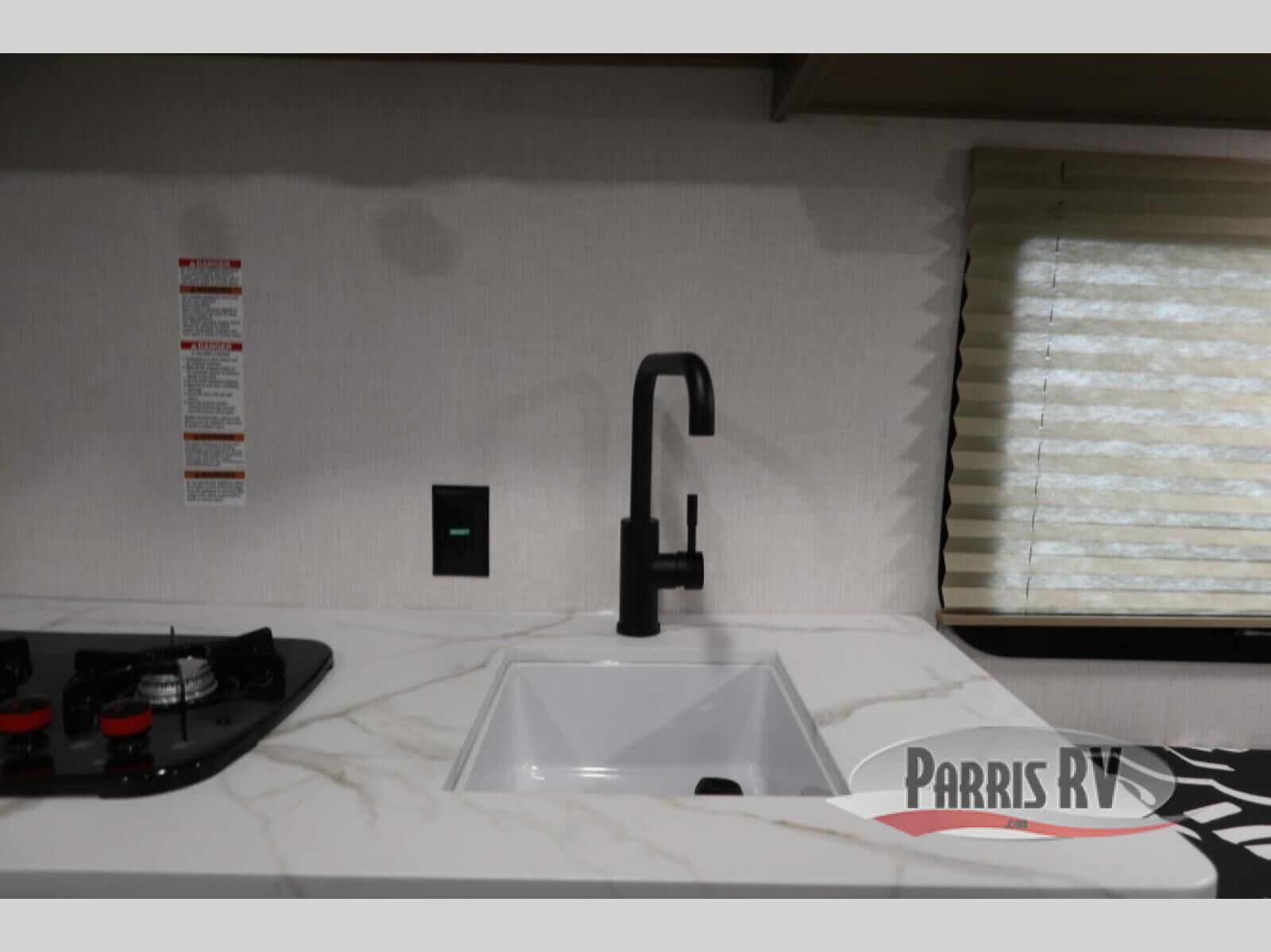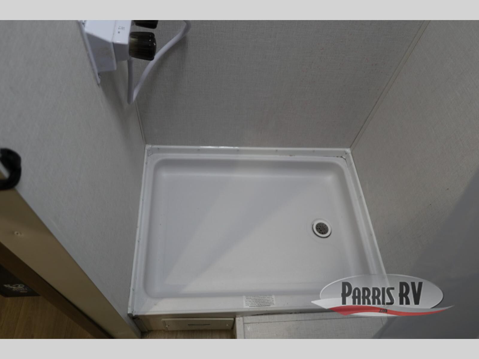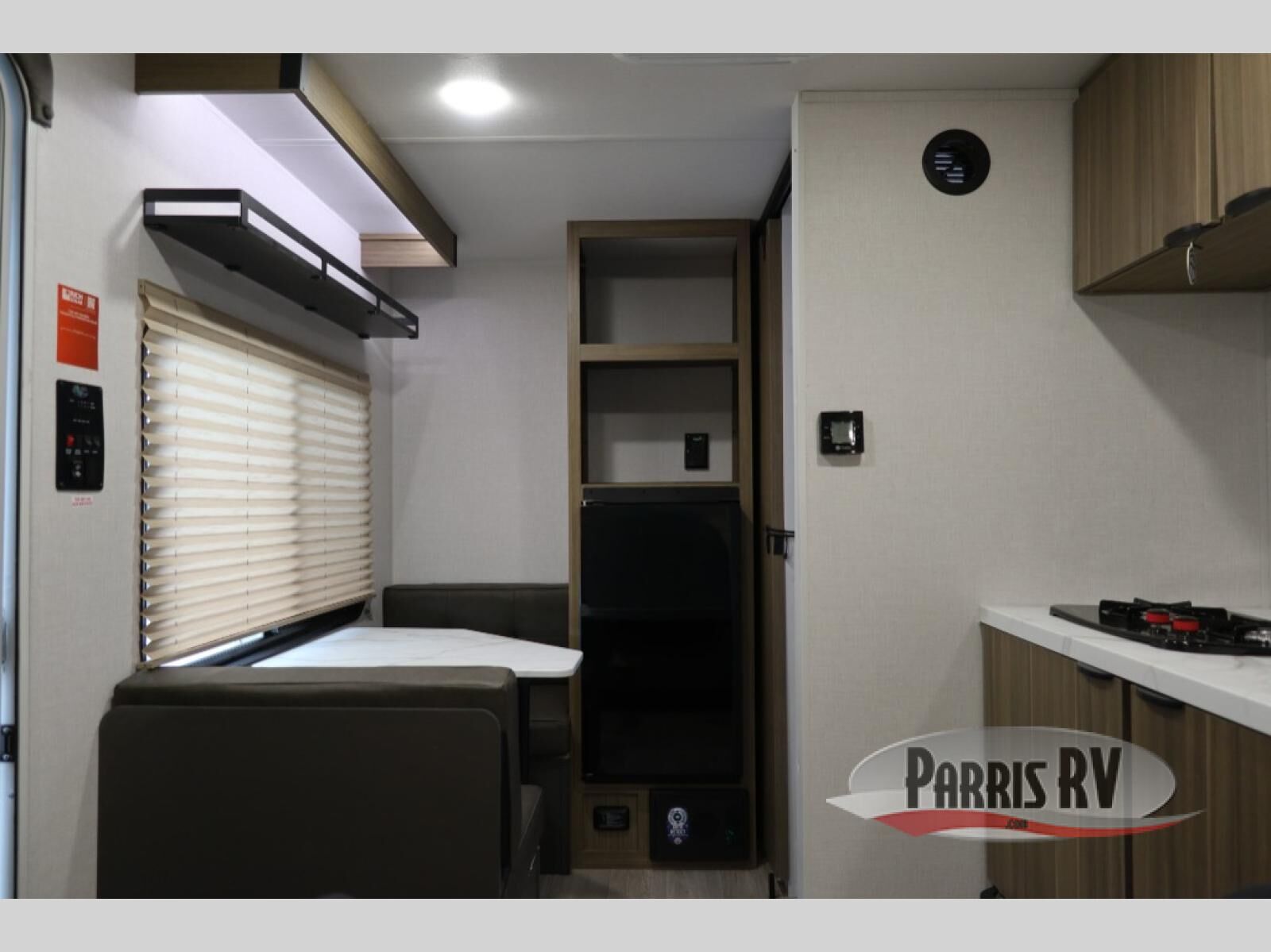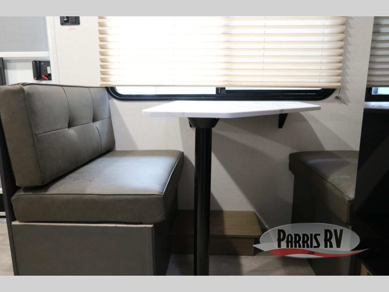This lightweight travel trailer has everything you need to enjoy camping trips! There is a front east to west custom king bed with storage at the foot of the bed and overhead for your valuables. A private bath includes a toilet and walk-in shower so you can easily get ready each day, and you can prepare your meals on the two-burner cooktop when you get hungry. The booth dinette will provide dining space, along with sleeping space for one to two little ones. Don't let this trailer get away!