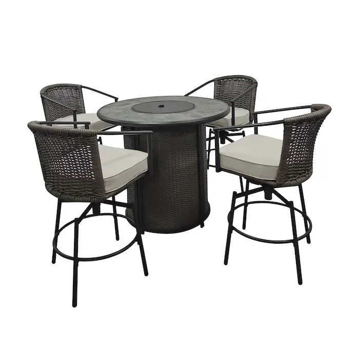 ApplePayUpgrade your outdoor space with this stylish allen + roth Sedgebrook 5-Piece Patio High Dining Set! Featuring a matte charcoal steel frame and comfortable cream cushions, this set is perfect for enjoying drinks or meals outside.