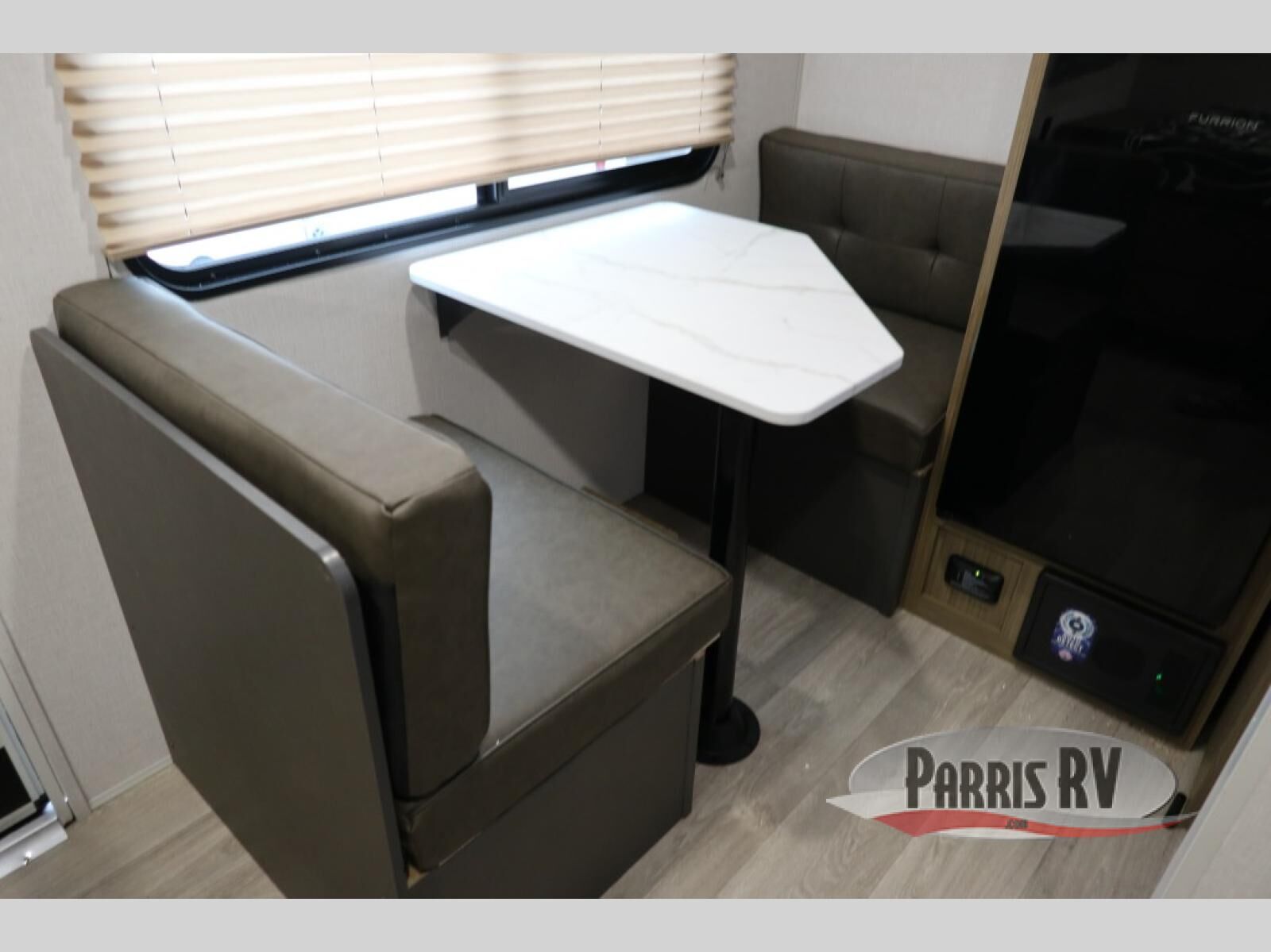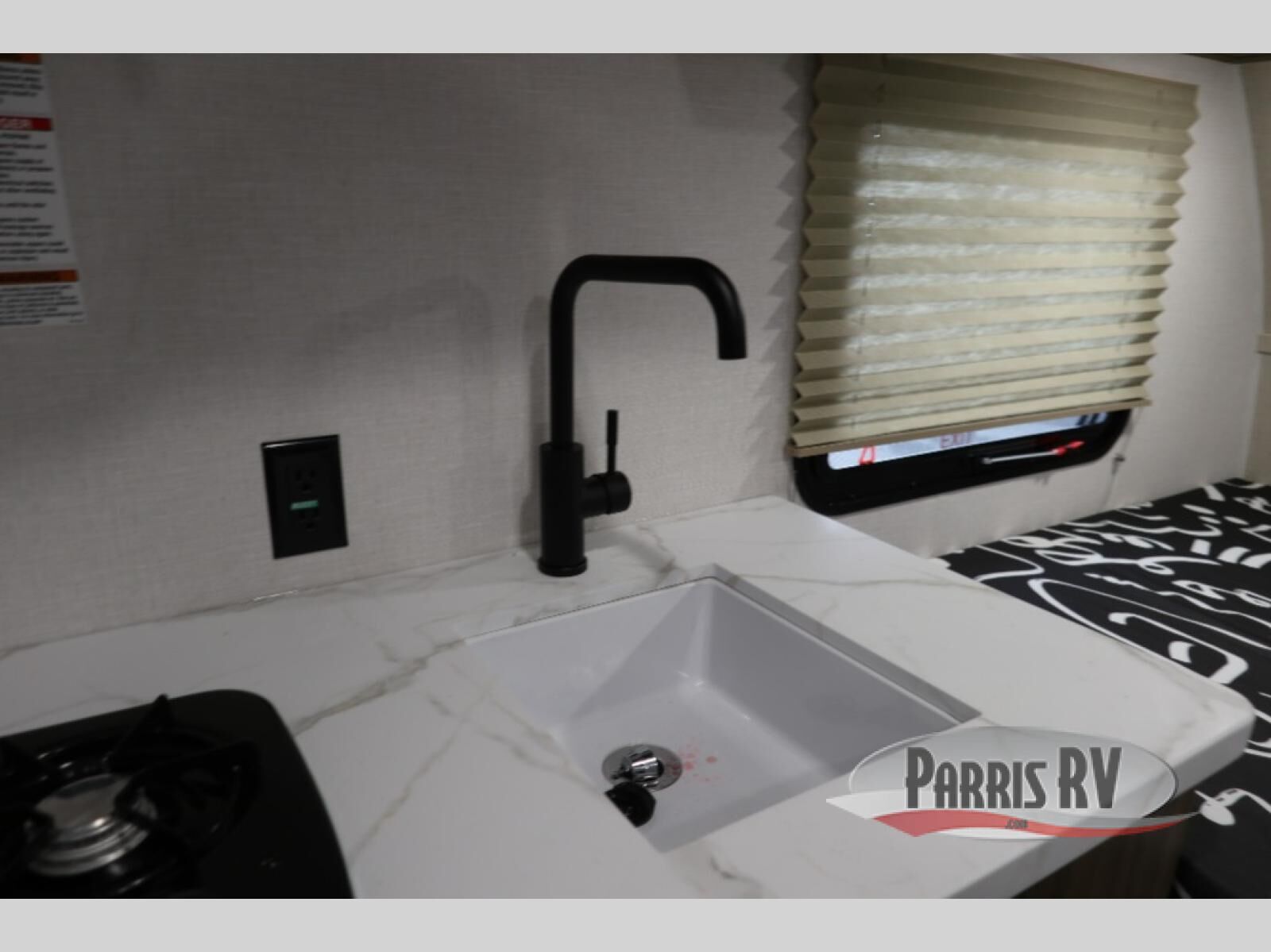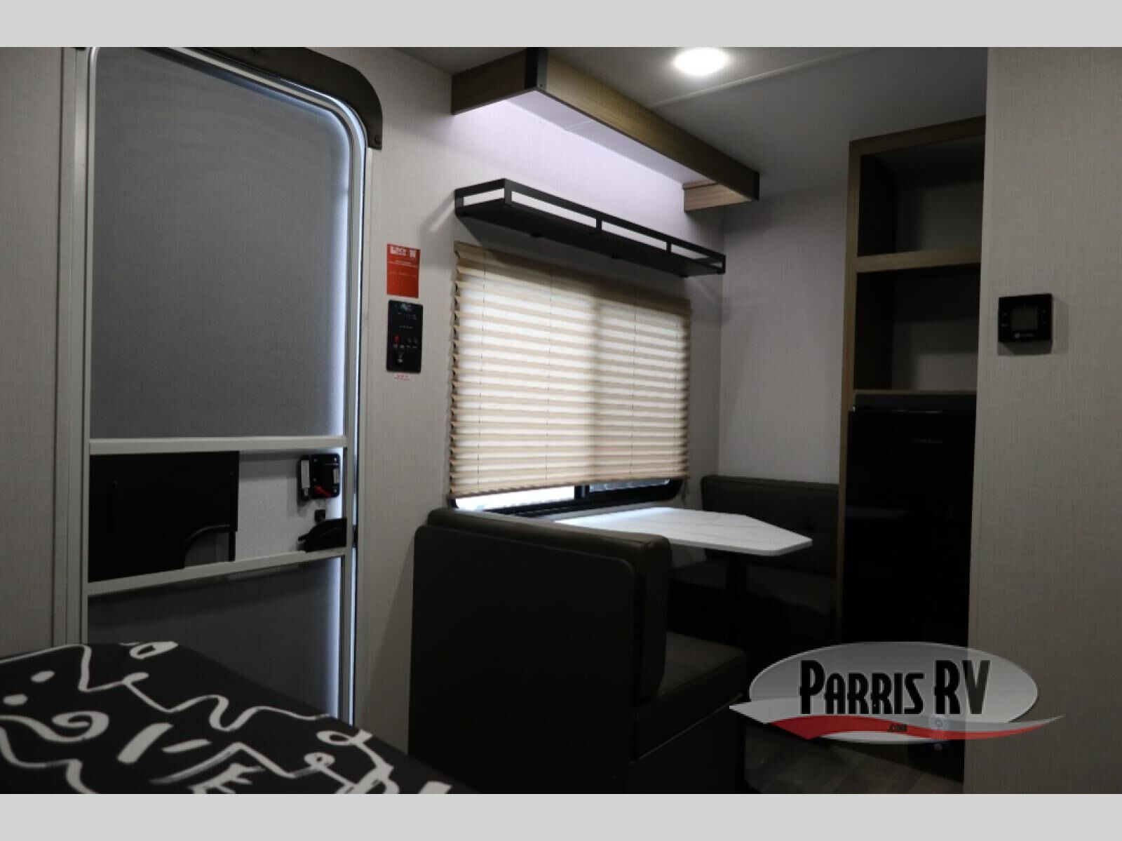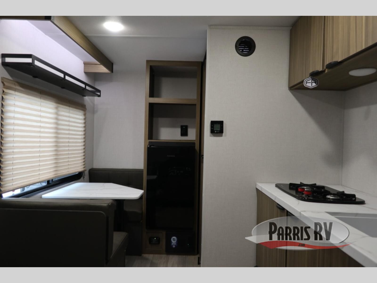 This lightweight travel trailer has everything you need to enjoy camping trips! There is a front east to west custom king bed with storage at the foot of the bed and overhead for your valuables. A private bath includes a toilet and walk-in shower so you can easily get ready each day, and you can prepare your meals on the two-burner cooktop when you get hungry. The booth dinette will provide dining space, along with sleeping space for one to two little ones. Don't let this trailer get away!